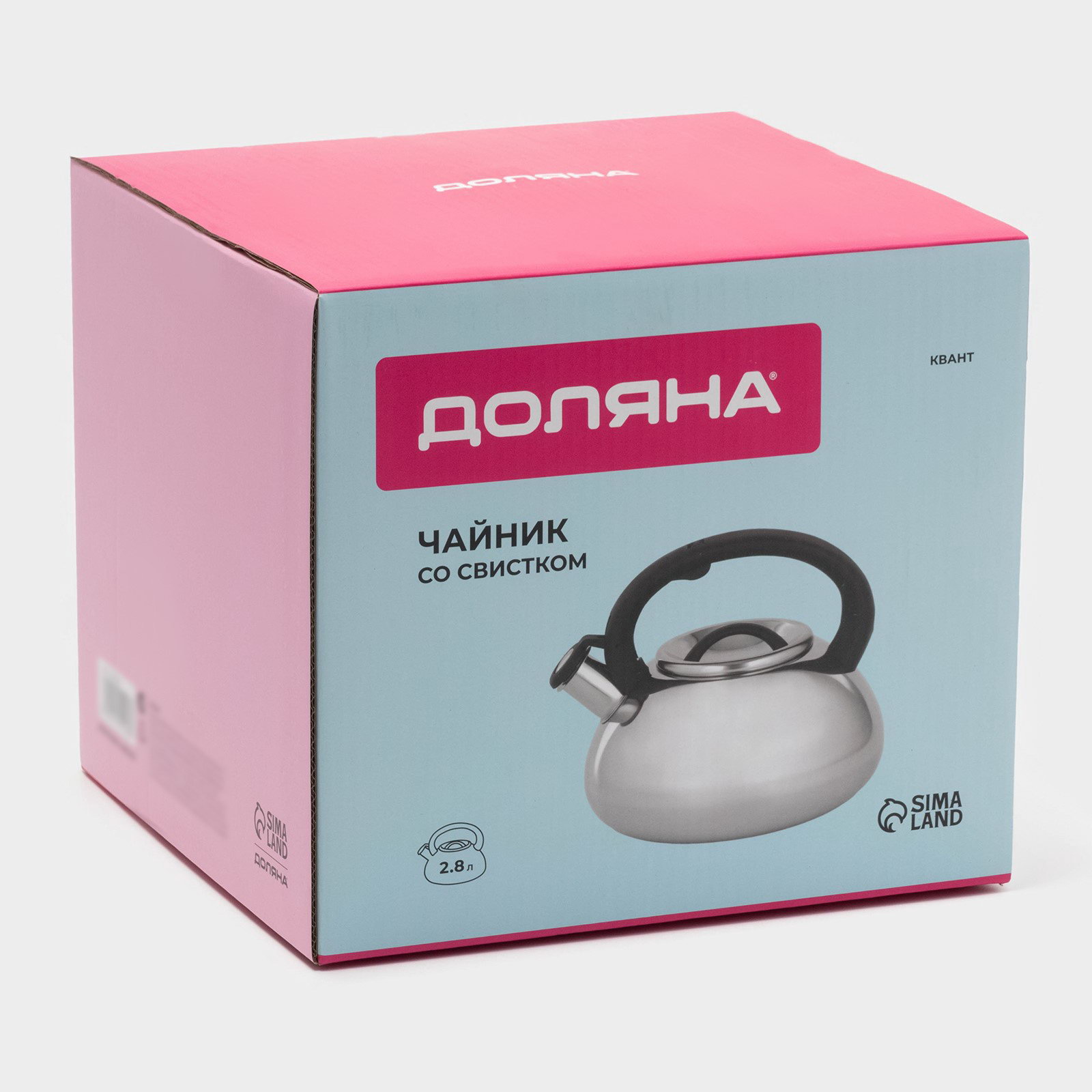 Чайник "Квант", 2.8 л, со свистком, фиксированная ручка, нержавеющая сталь, хромированный, 21x25x17.5 см., Доляна, Китай