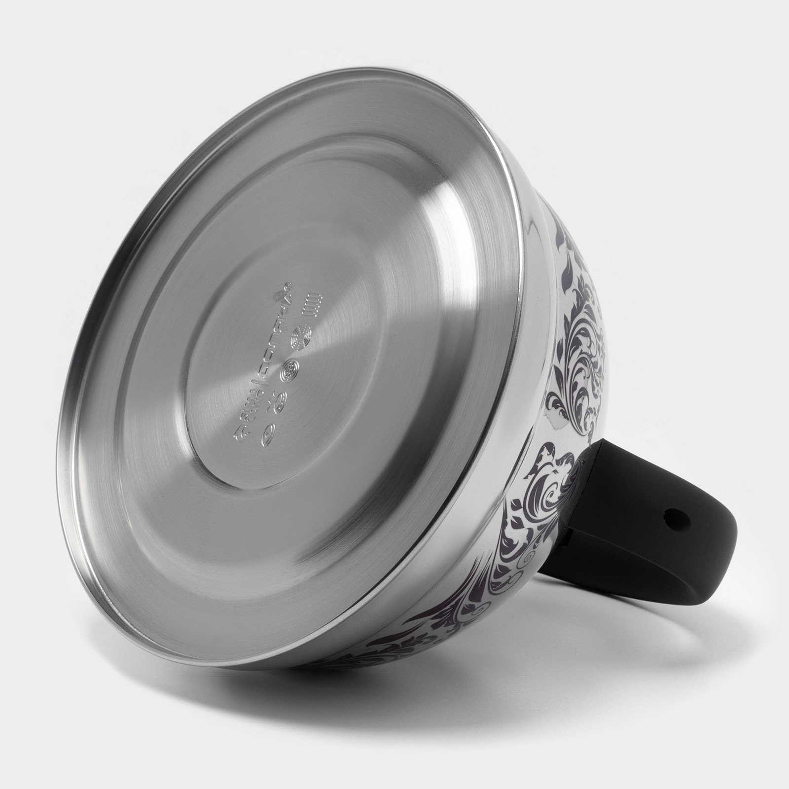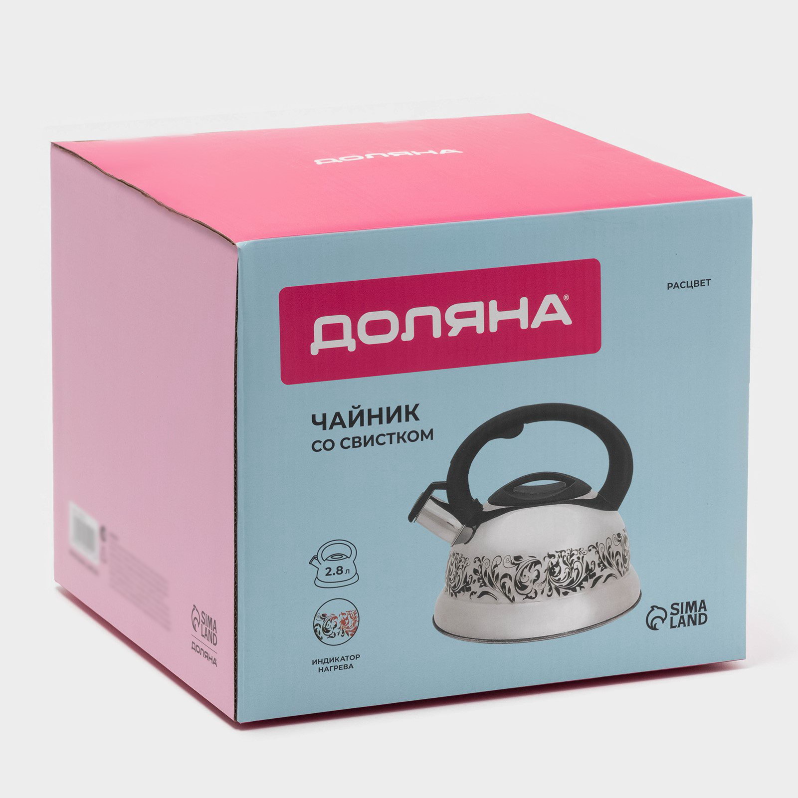 Чайник "Расцвет", 2.8 л, со свистком, фиксированная ручка, с индикатором нагрева, нержавеющая сталь, серебристый, 22x25.5x21 см., Доляна, Китай
