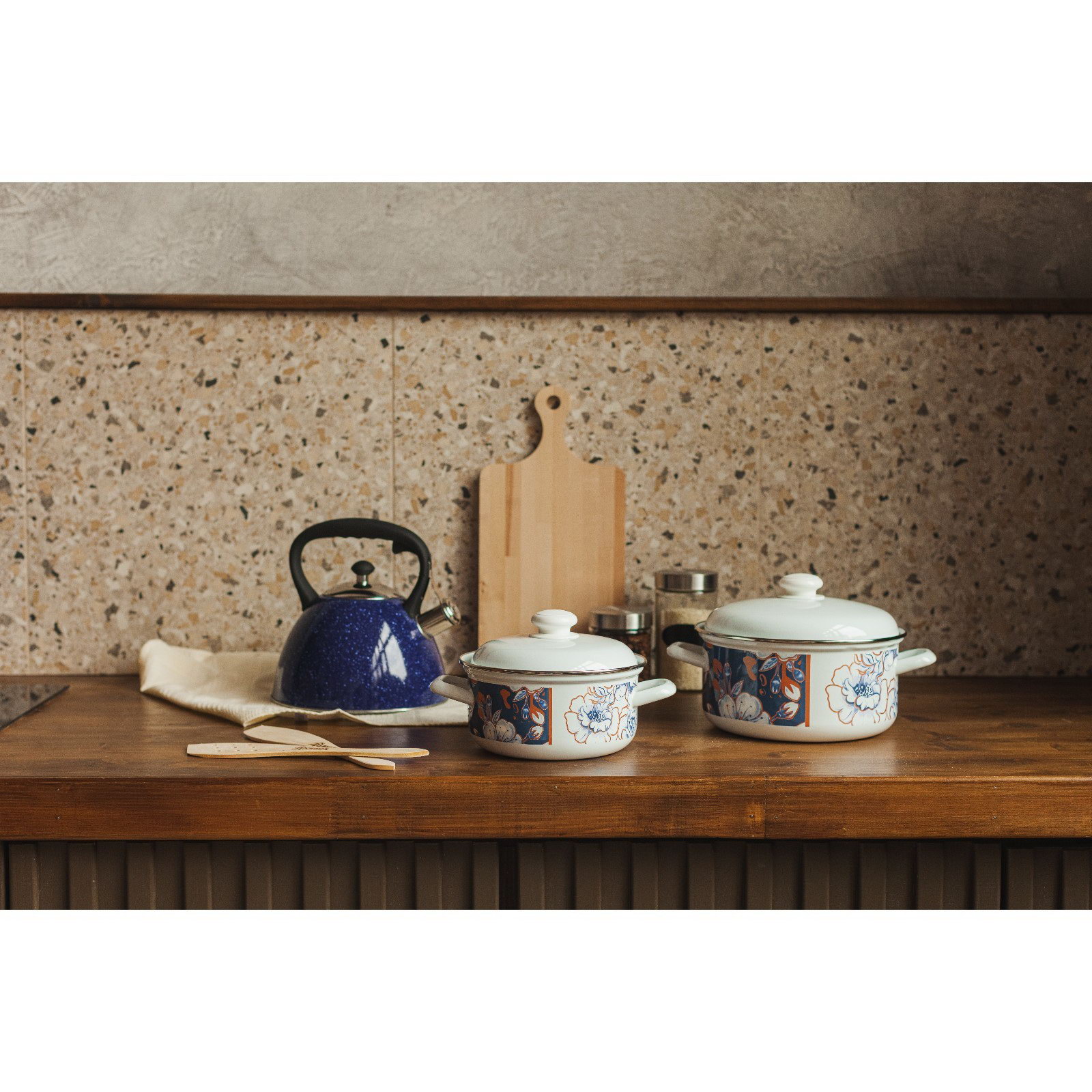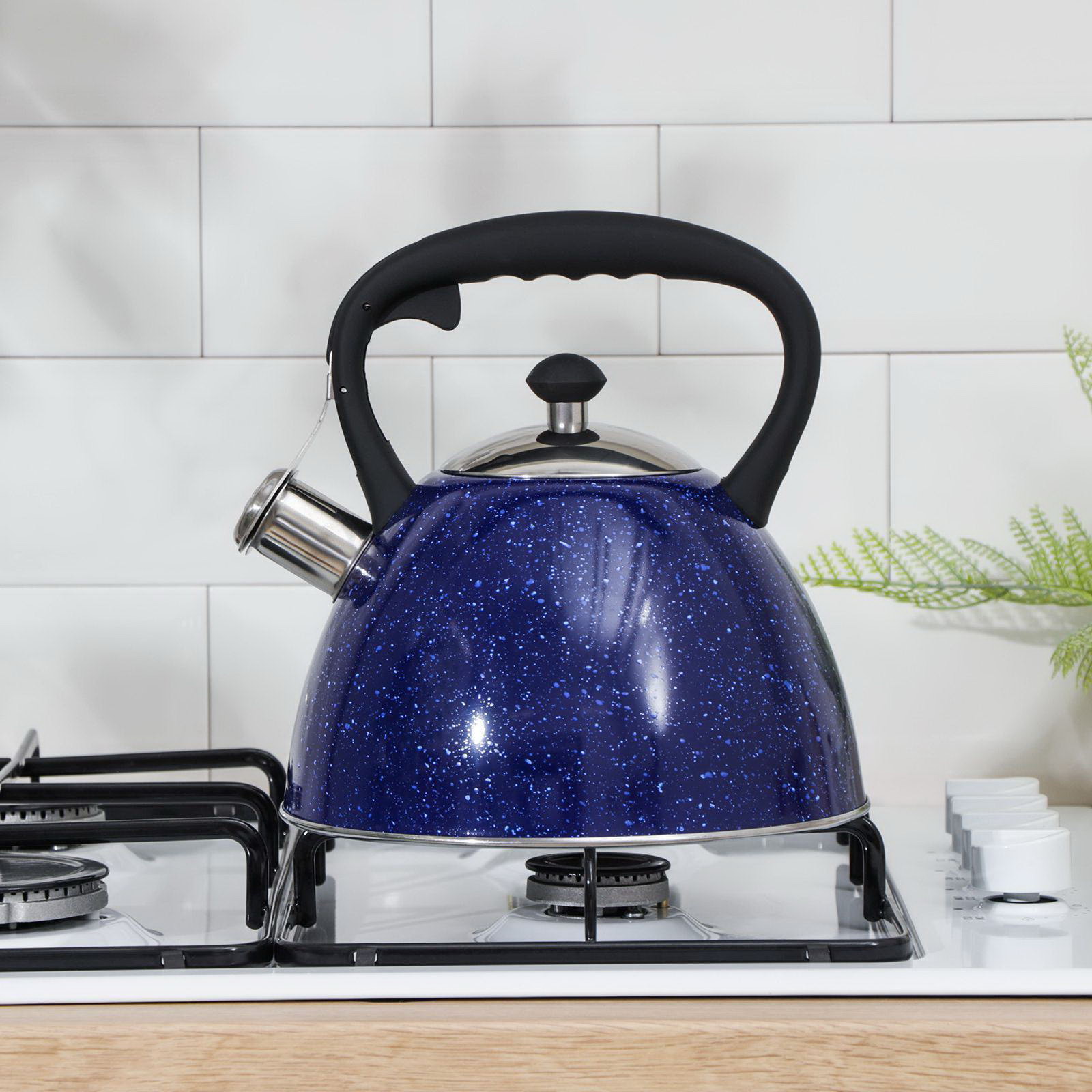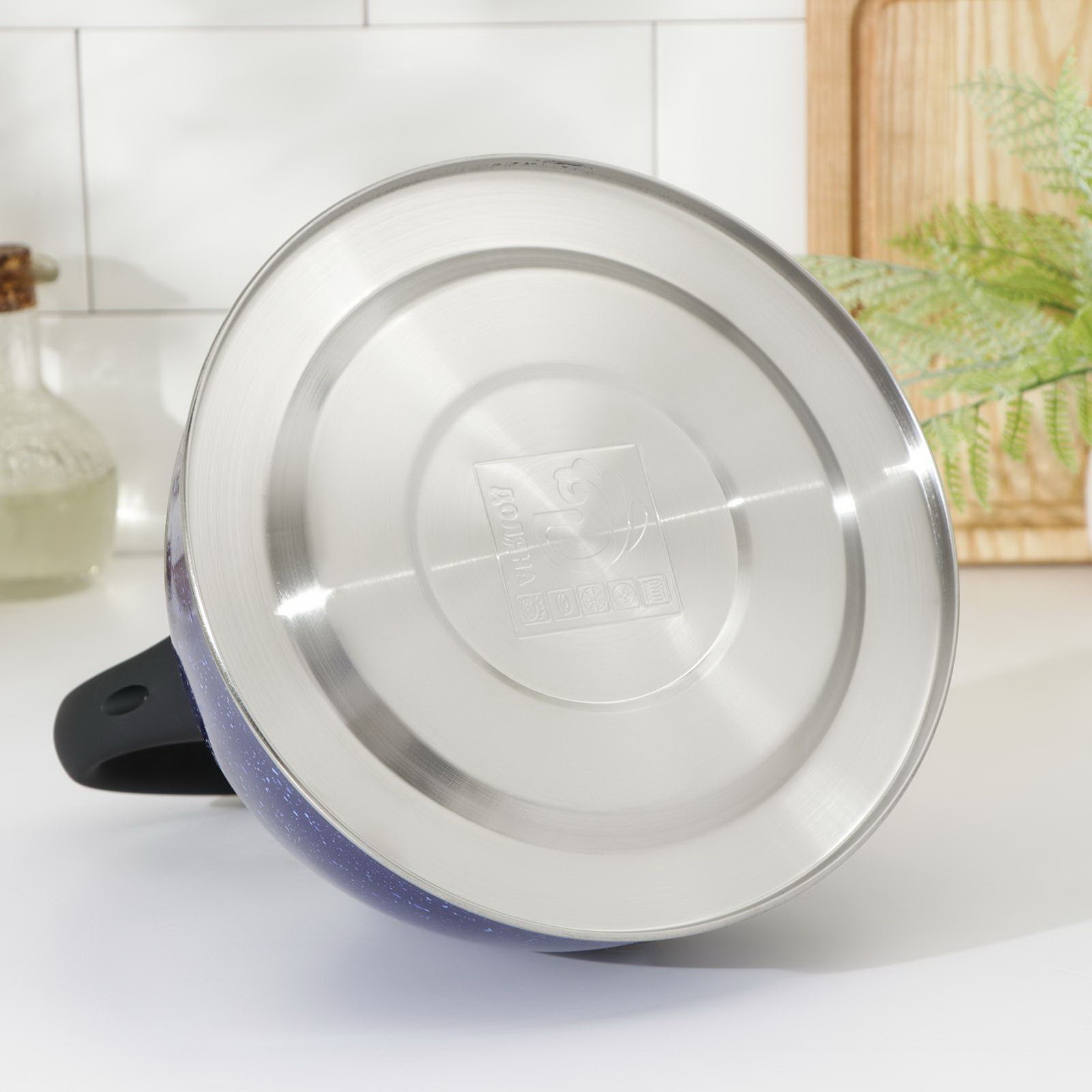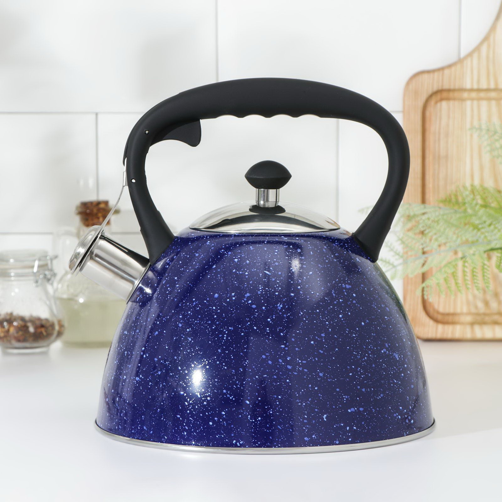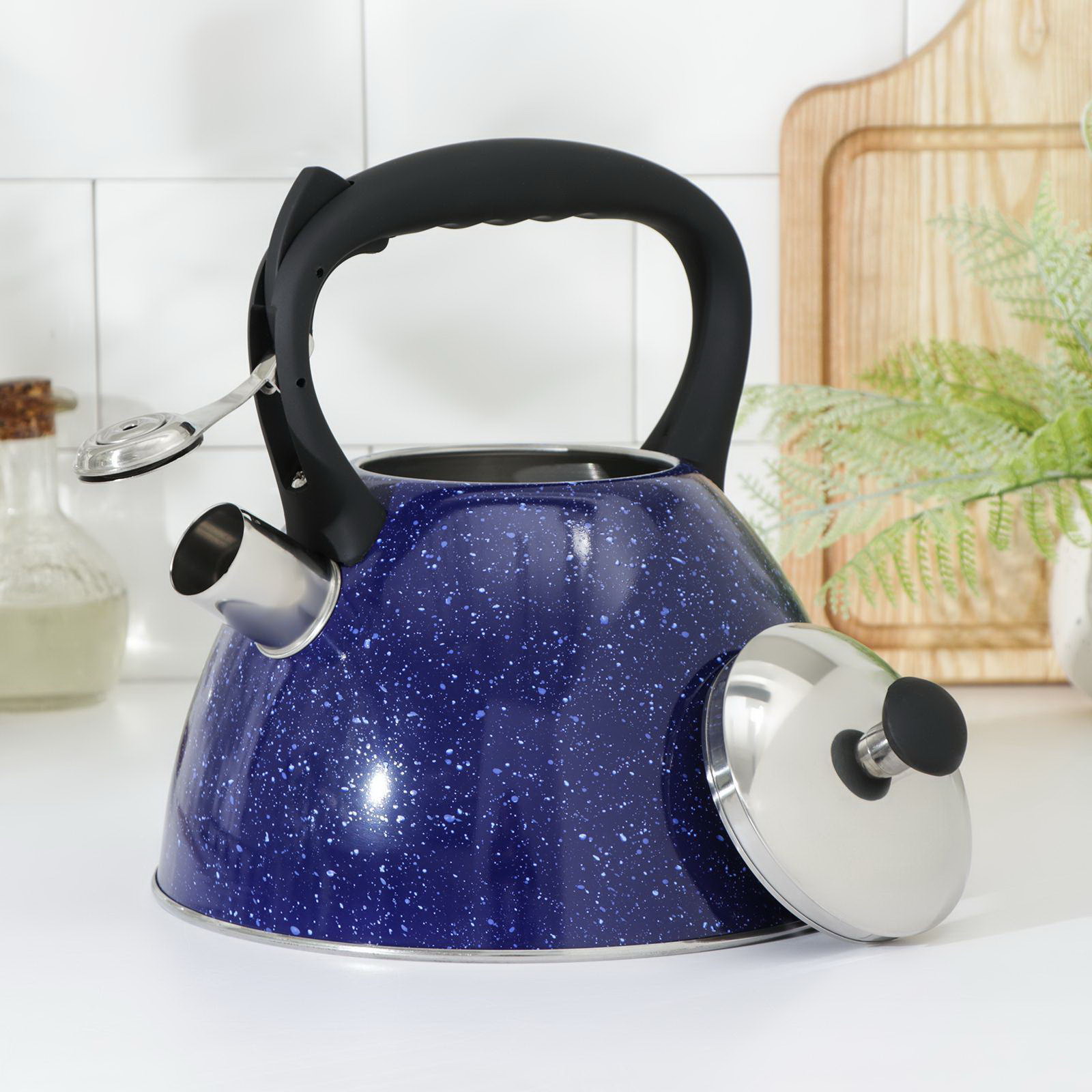 Чайник со свистком из нержавеющей стали "Космос", 3 л, цвет синий, 3000 мл., Доляна, Китай