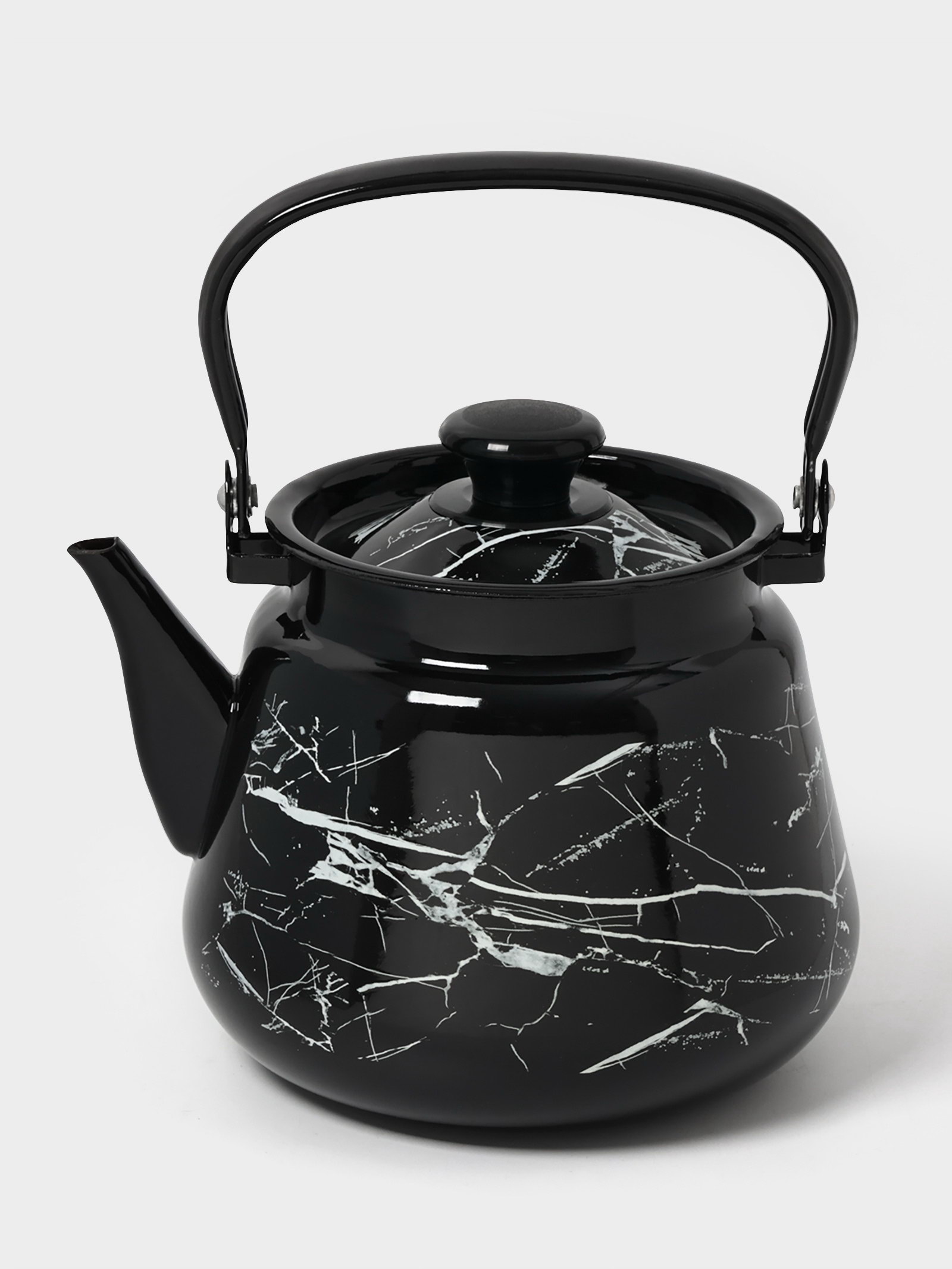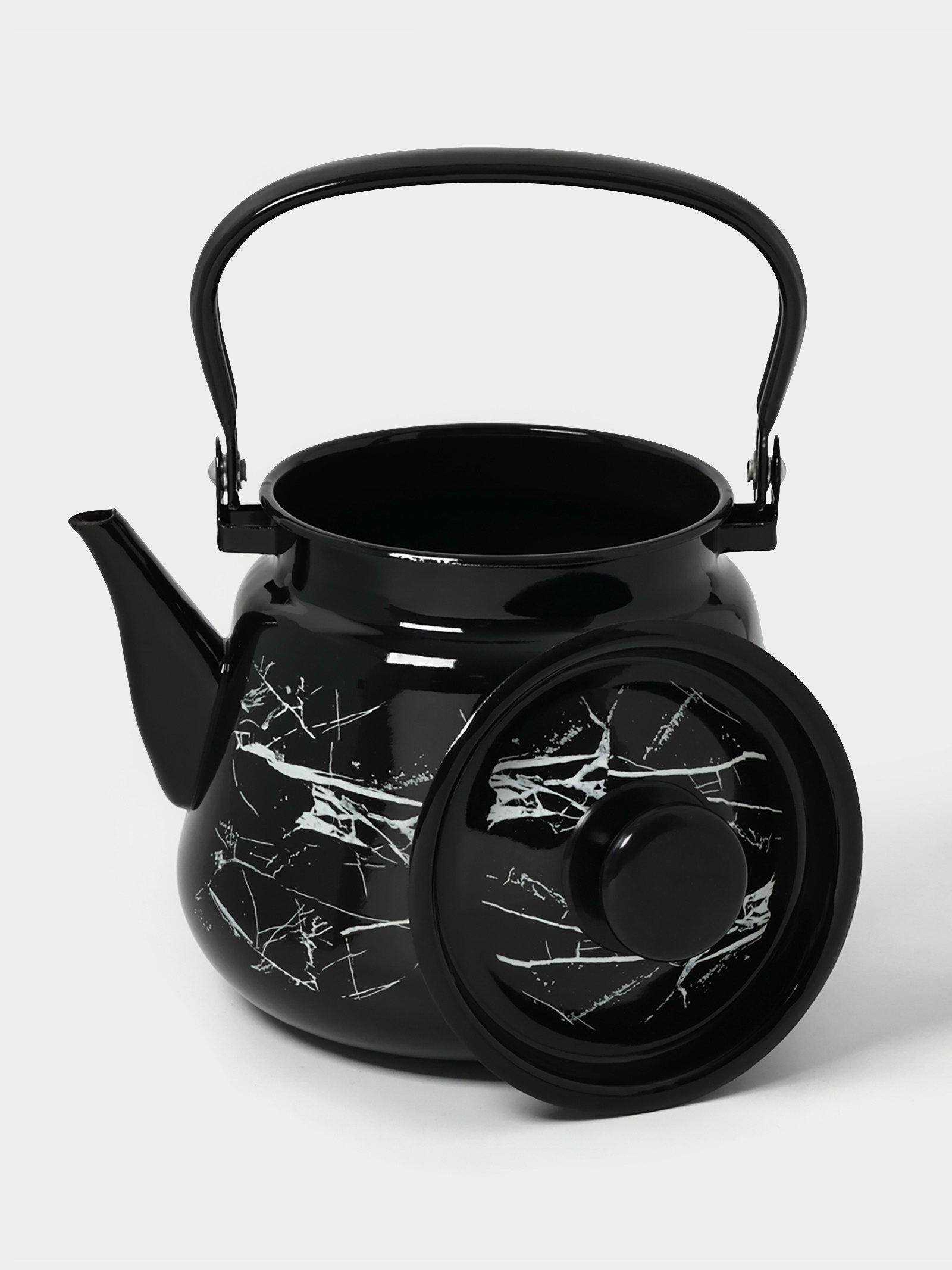 Чайник эмалированный "Чёрный мрамор", 3.5 л, металлическая ручка, 3500 мл., Россия