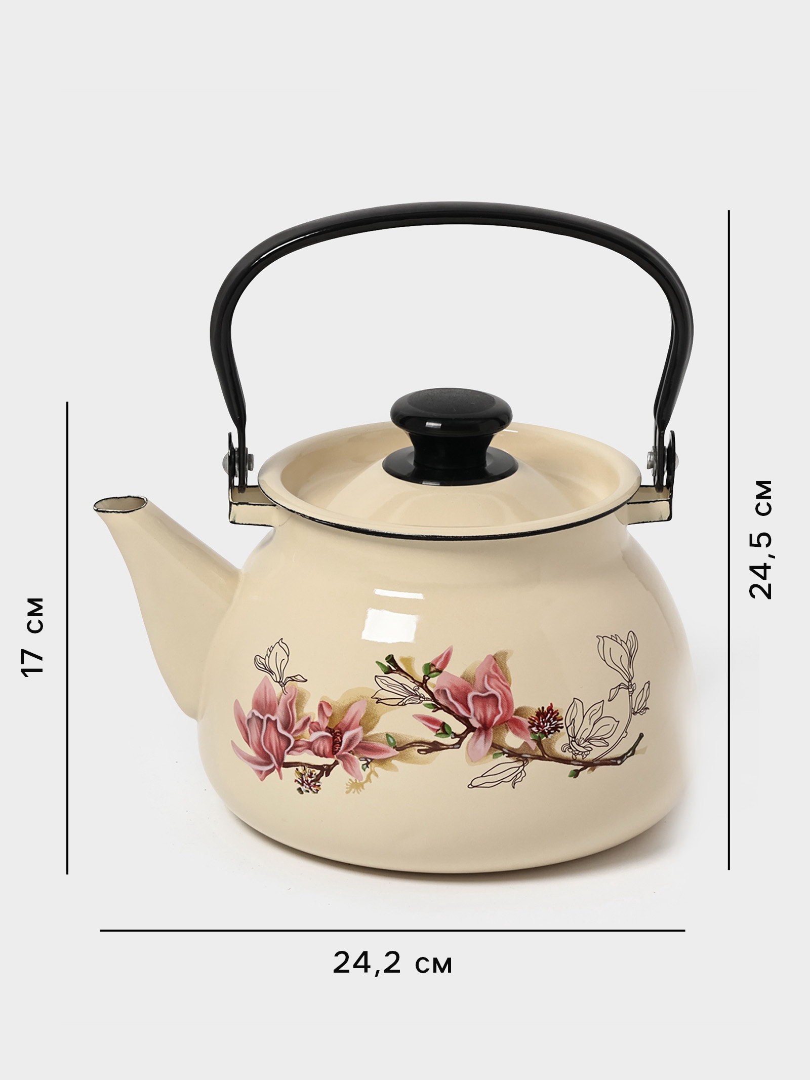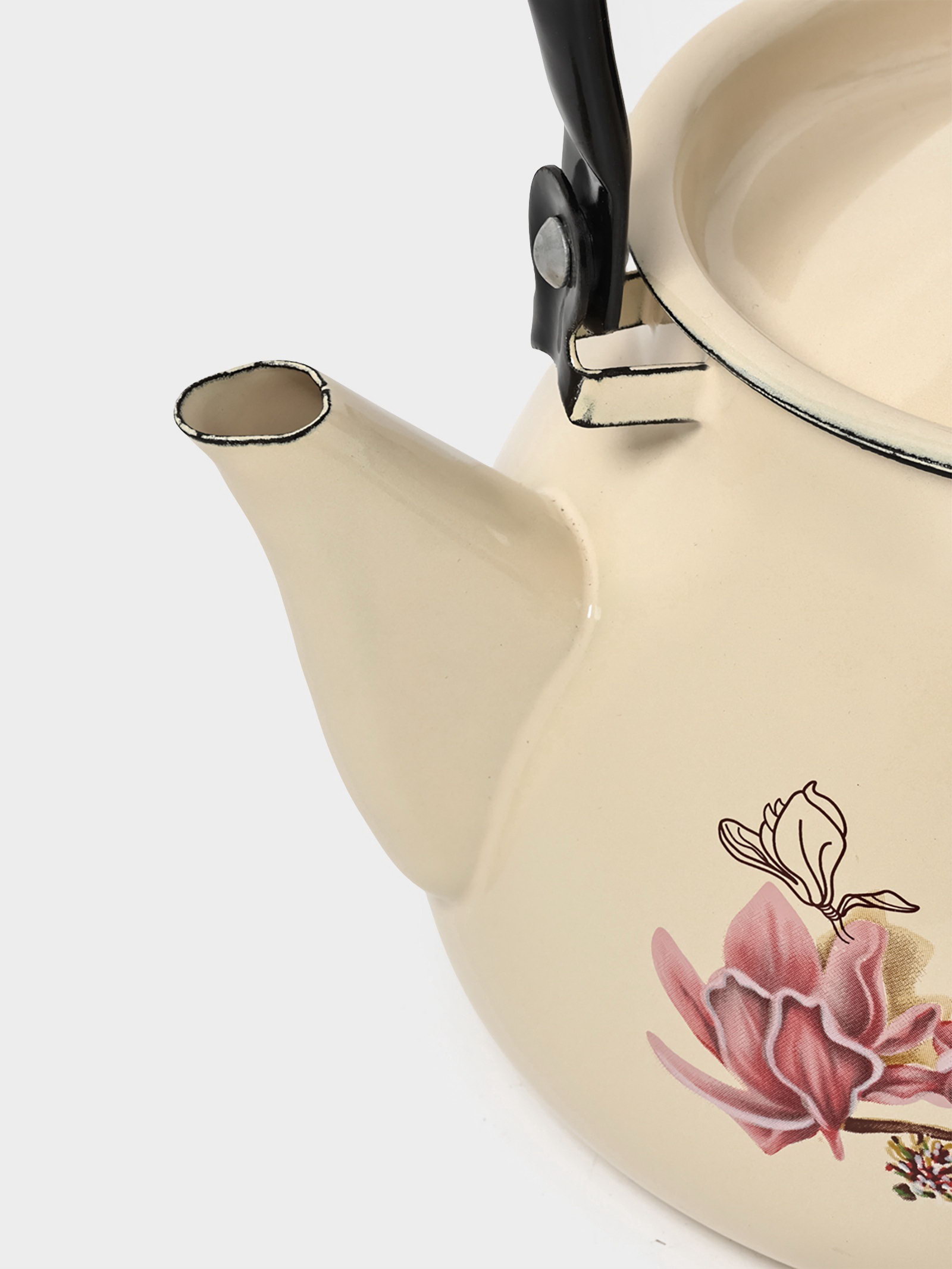 Чайник эмалированный "Магнолия", 3 л, металлическая ручка, слоновой кости, 3000 мл., Россия