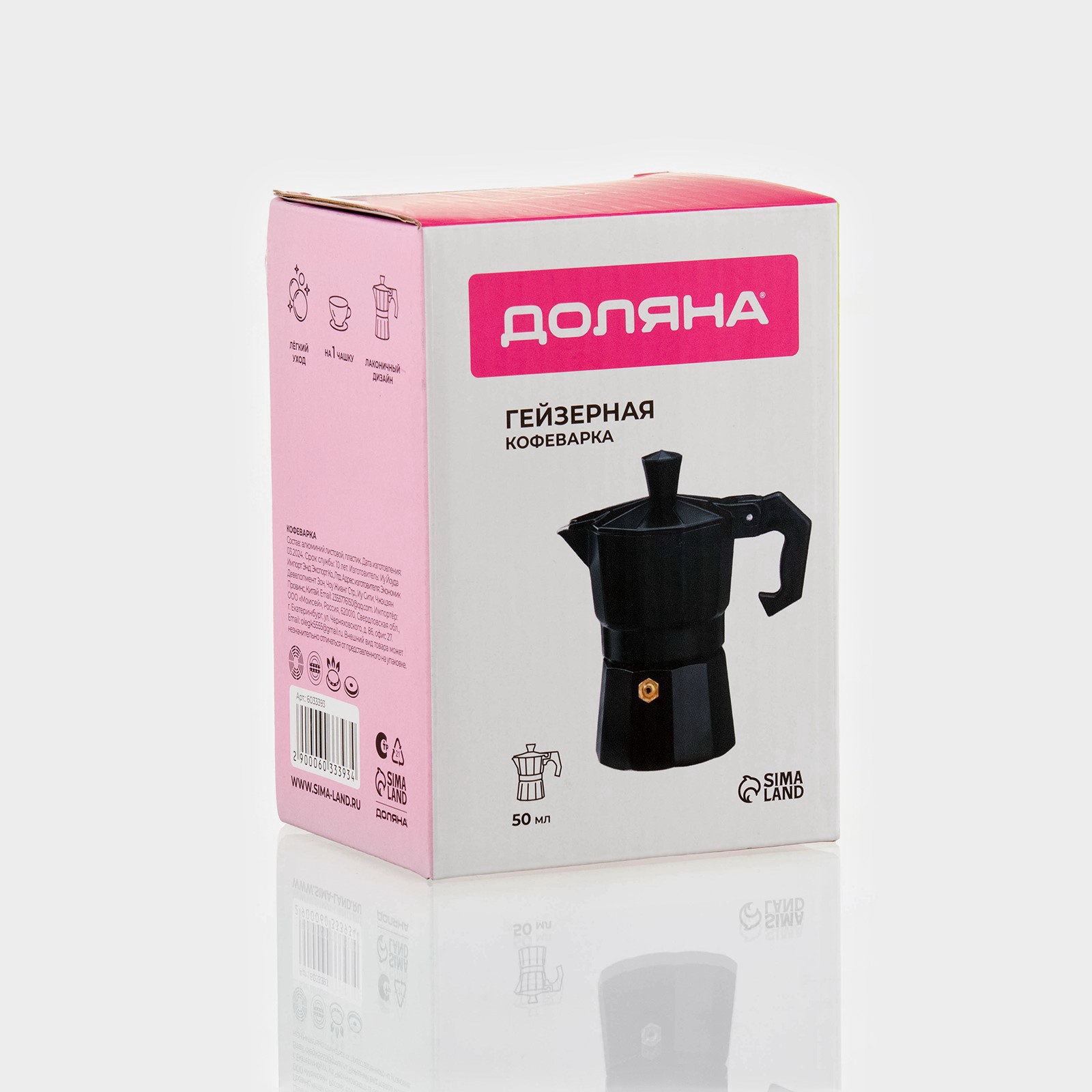 Кофеварка гейзерная Alum black, на 1 чашку, 50 мл, алюминий, чёрная, 6.5x11.5x12.5 см., Доляна, Китай