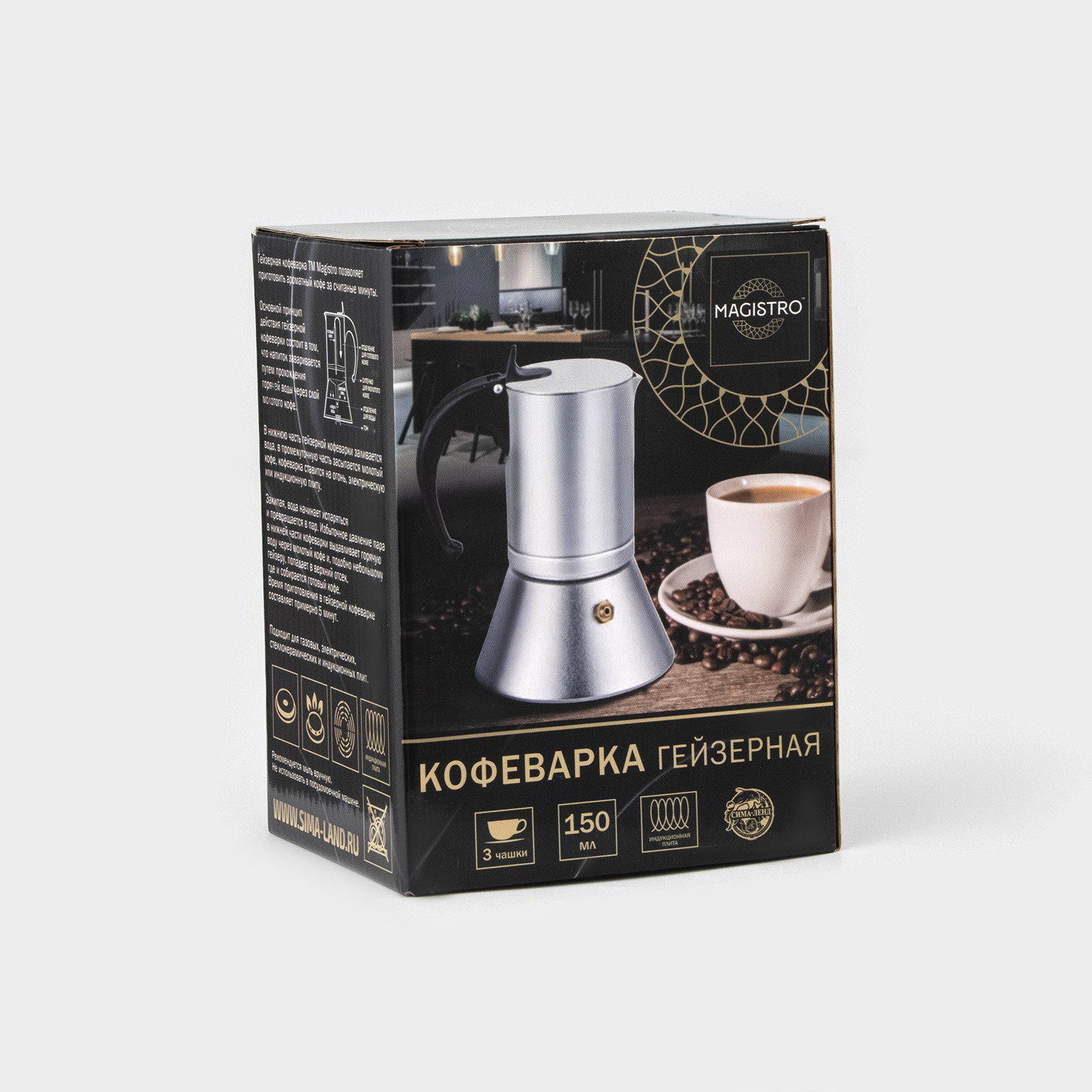 Кофеварка гейзерная Salem, на 3 чашки, 150 мл, индукция, алюминий, серебристая, 17.5x10.5x13.5 см., Magistro, Китай