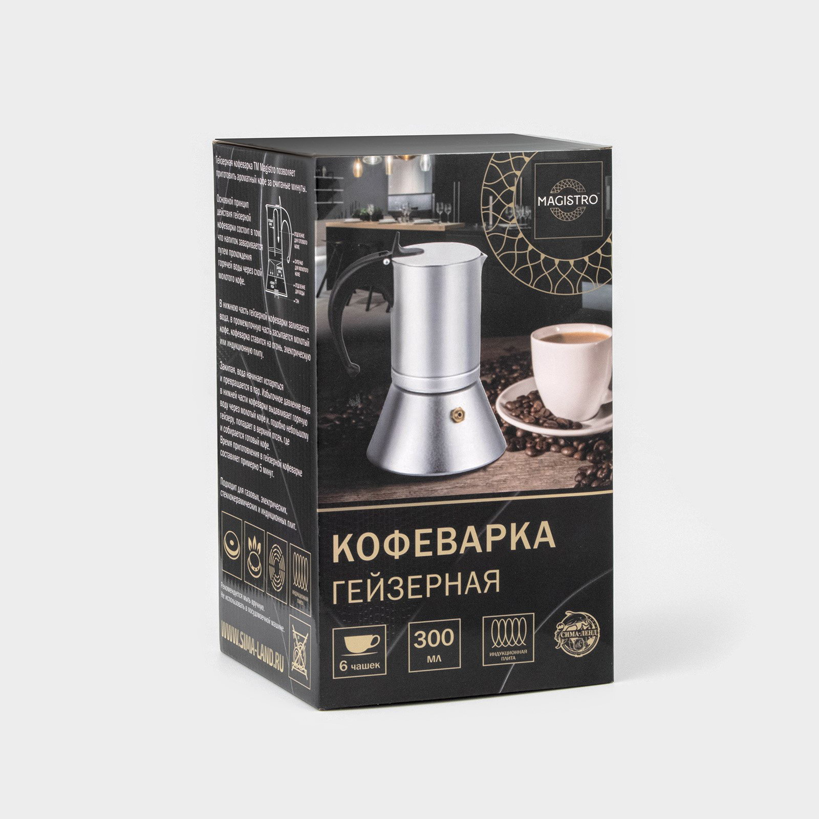 Кофеварка гейзерная Salem, на 6 чашек, 300 мл, индукция, алюминий, серебристая, 21.5x11x15 см., Magistro, Китай