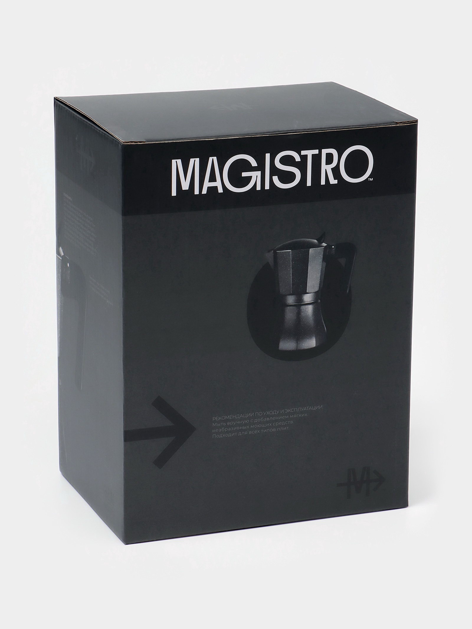 Кофеварка гейзерная "Мрамор", 300 мл, на 6 чашек, нержавеющая сталь, чёрная, 9.5x16x19 см., Magistro, Китай