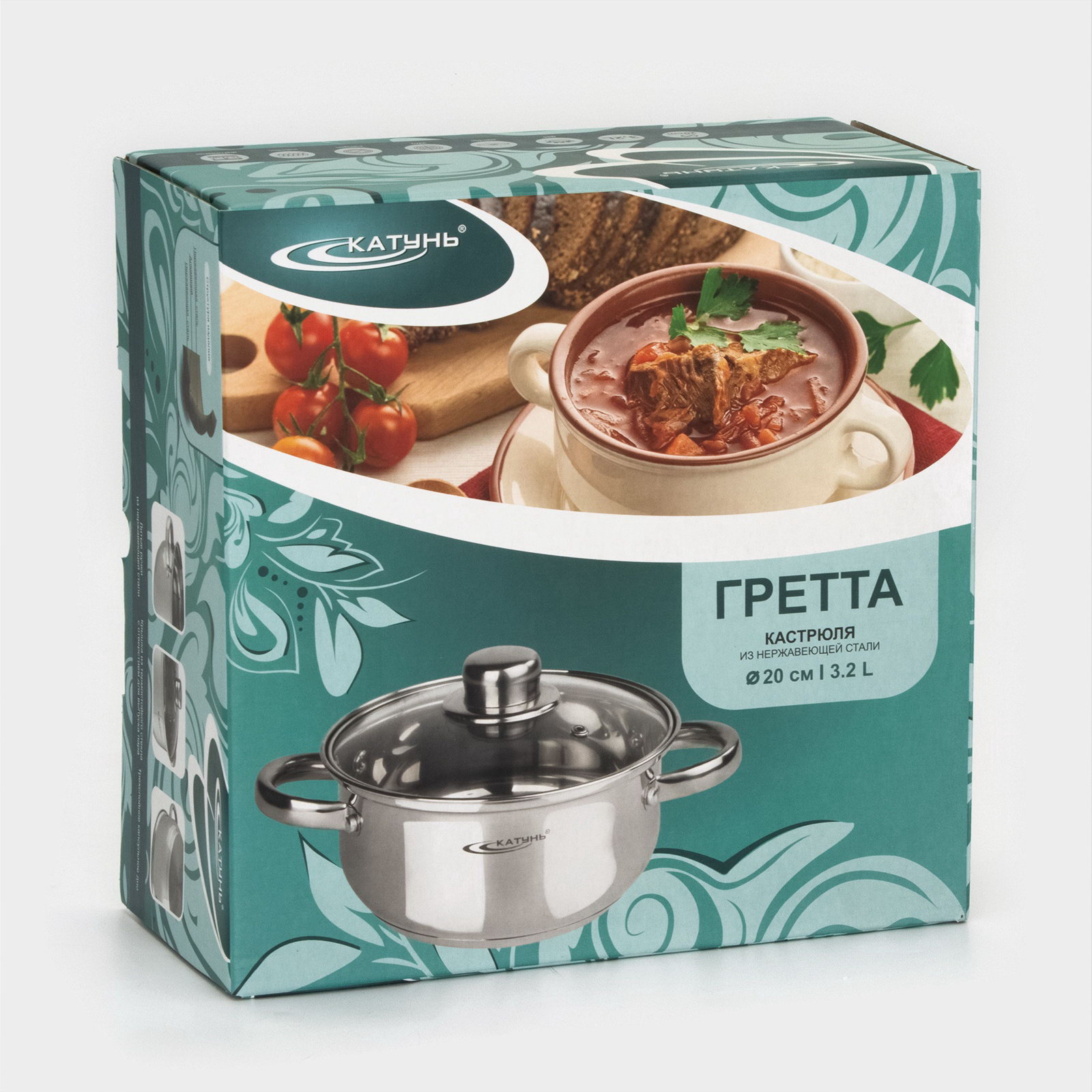 Кастрюля "Гретта", 3.2 л, d=20 см, капсульное дно, индукция, нержавеющая сталь, 20х20х11 см., Катунь, Россия