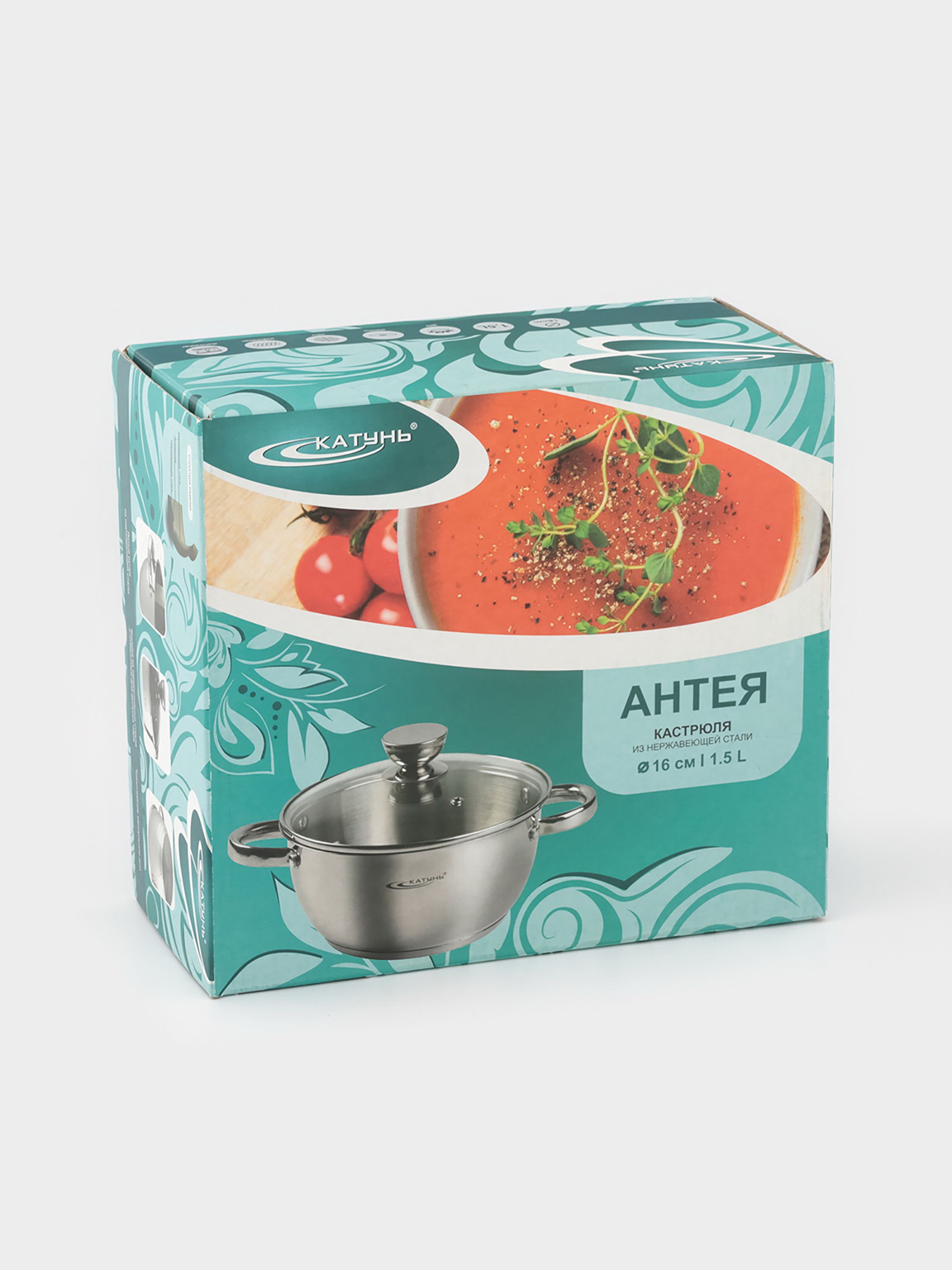 Кастрюля "Антея", 1.5 л, d=16 см, капсульное дно, индукция, нержавеющая сталь, 16х16х10 см., Катунь, Россия