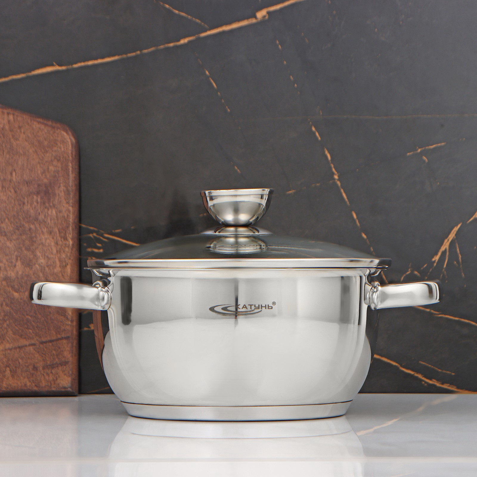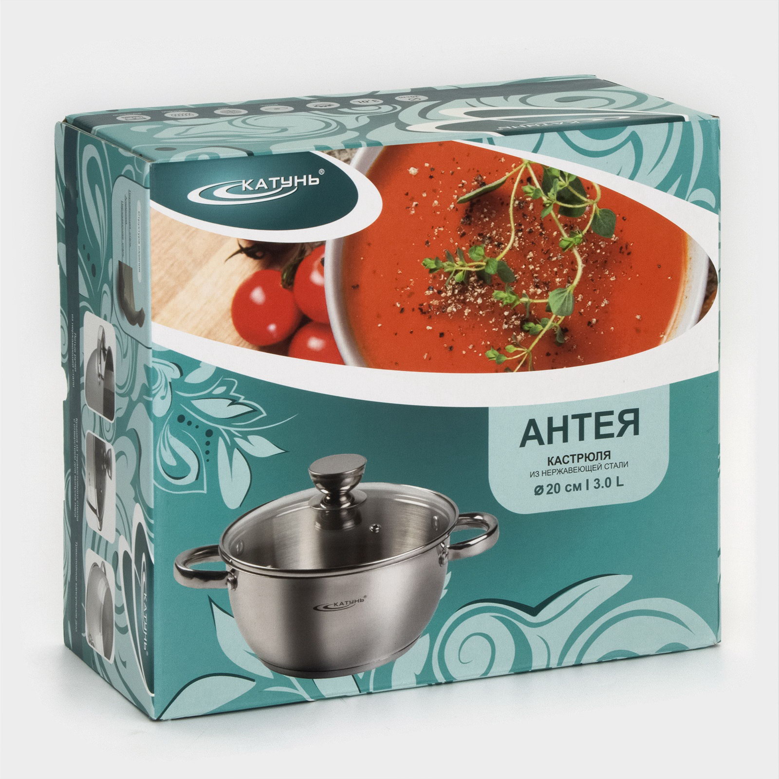 Кастрюля "Антея", 3 л, d=20 см, капсульное дно, индукция, нержавеющая сталь, 20х20х12.4 см., Катунь, Россия