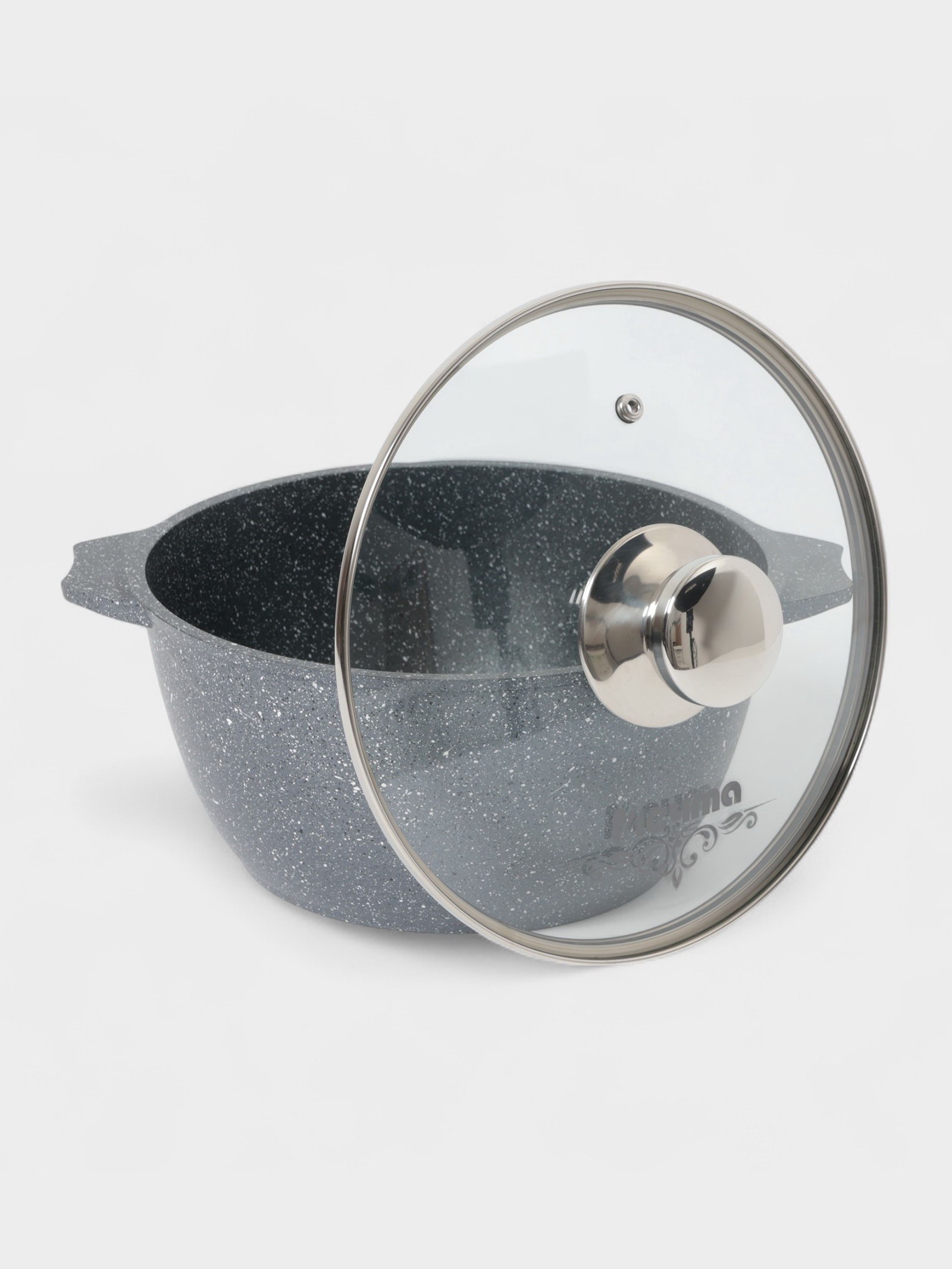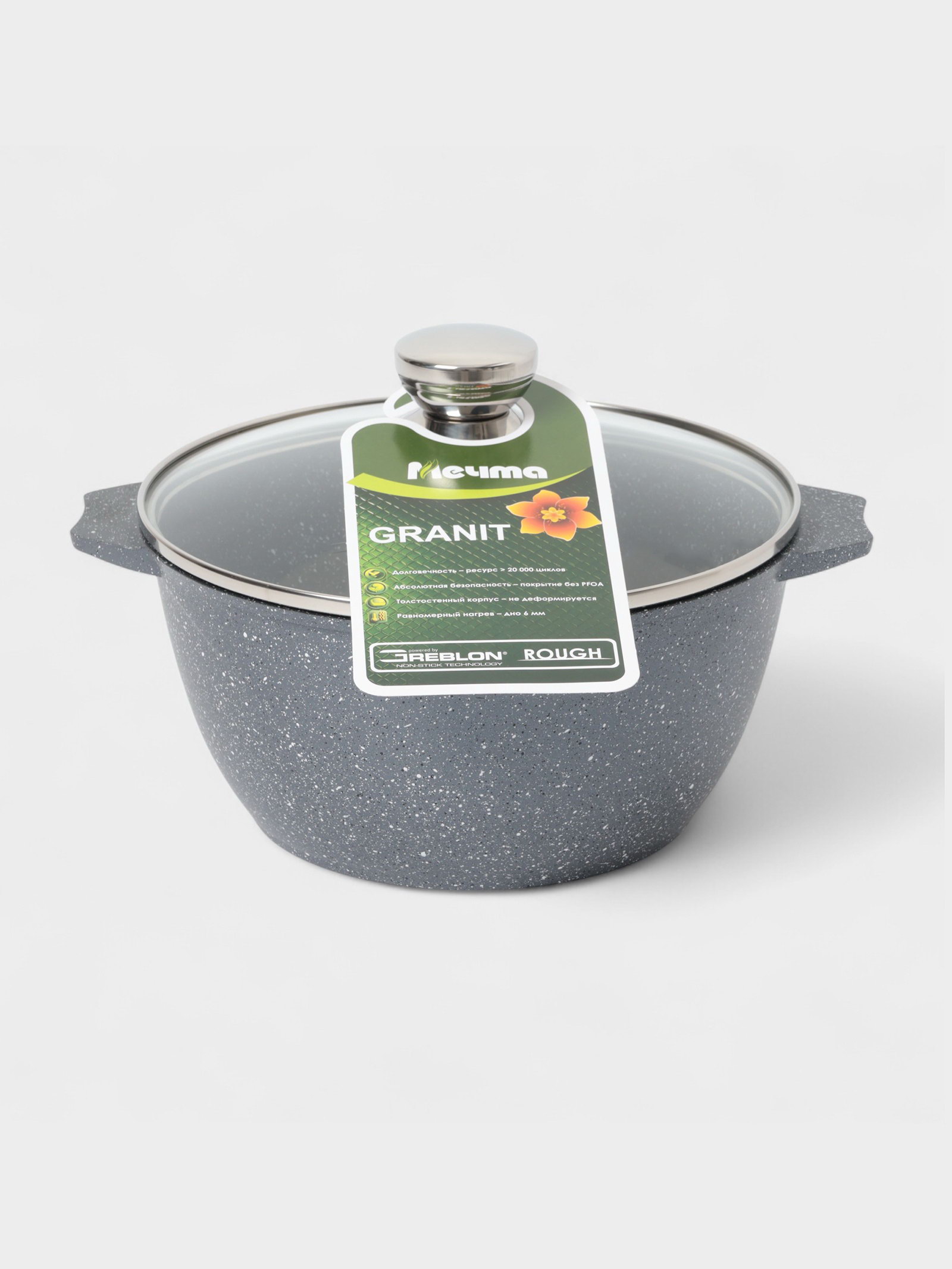 Кастрюля "Гранит", 3 л, антипригарное покрытие, литой алюминий, серая, 22х22х42 см., Мечта, Россия