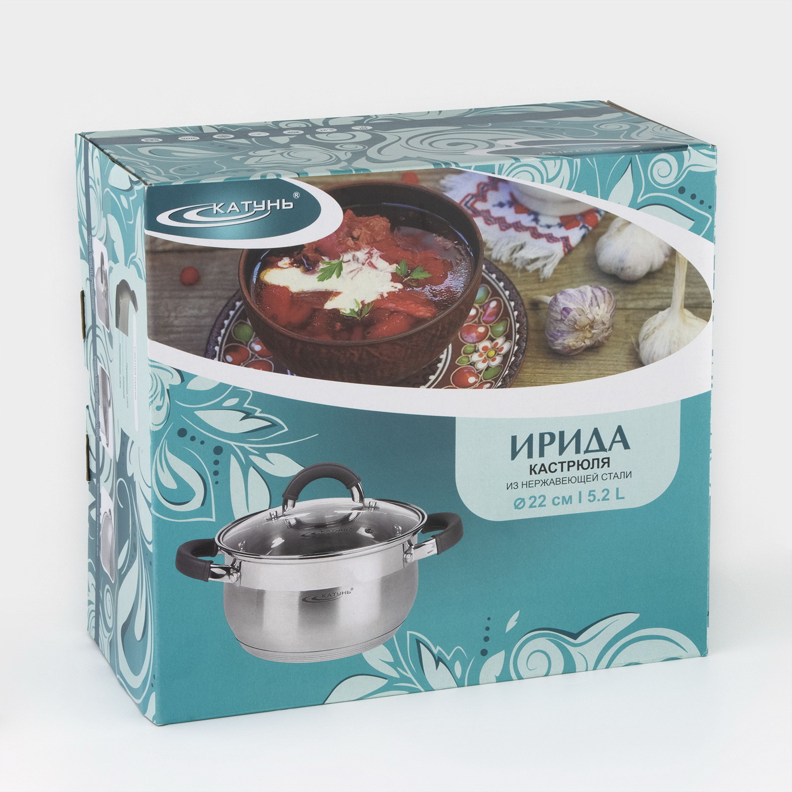 Кастрюля "Ирида", 5.2 л, d=22 см, капсульное дно, индукция, нержавеющая сталь, 22х22х24 см., Катунь, Россия