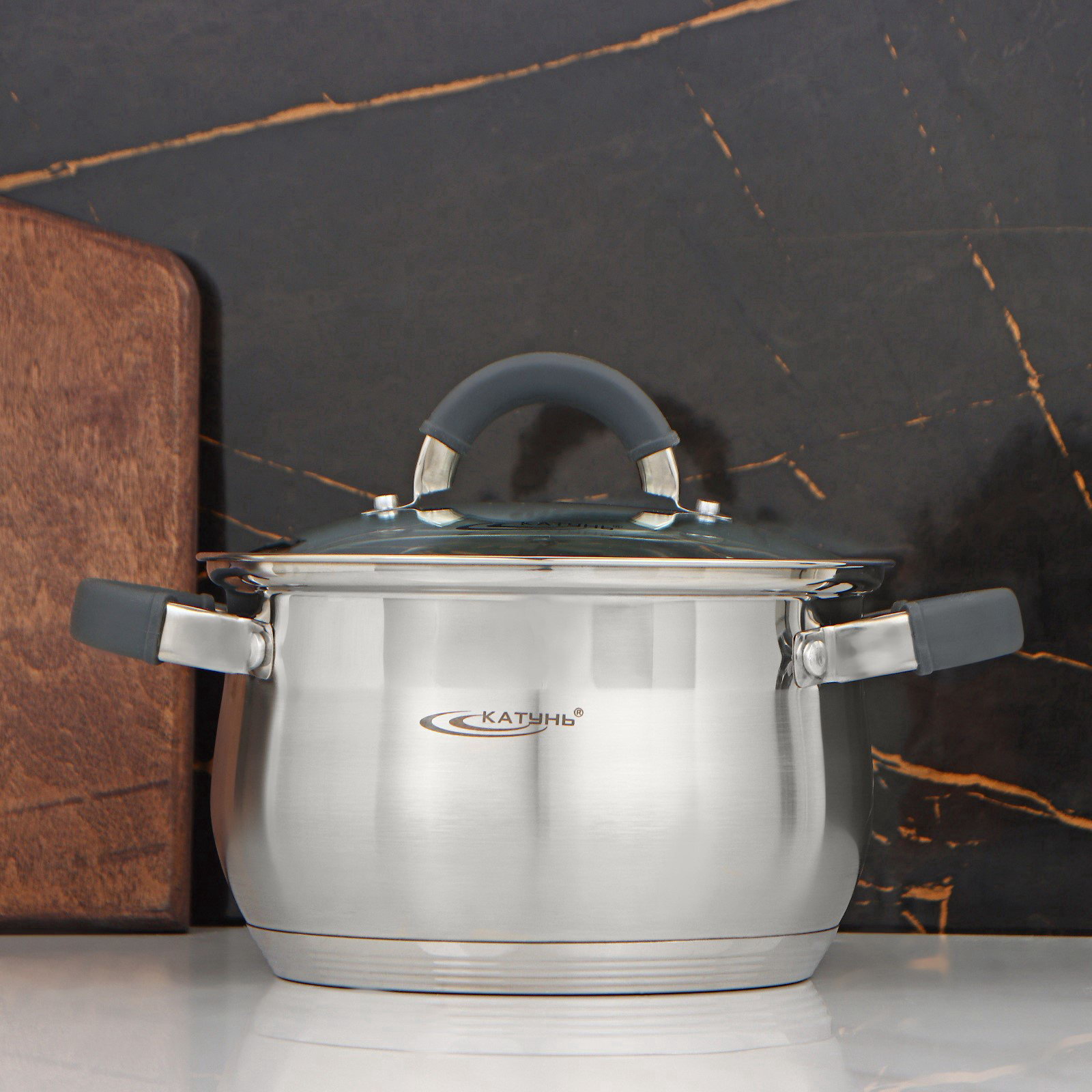 Кастрюля "Ирида", 2.9 л, d=18 см, капсульное дно, индукция, нержавеющая сталь, 18х18х24 см., Катунь, Россия
