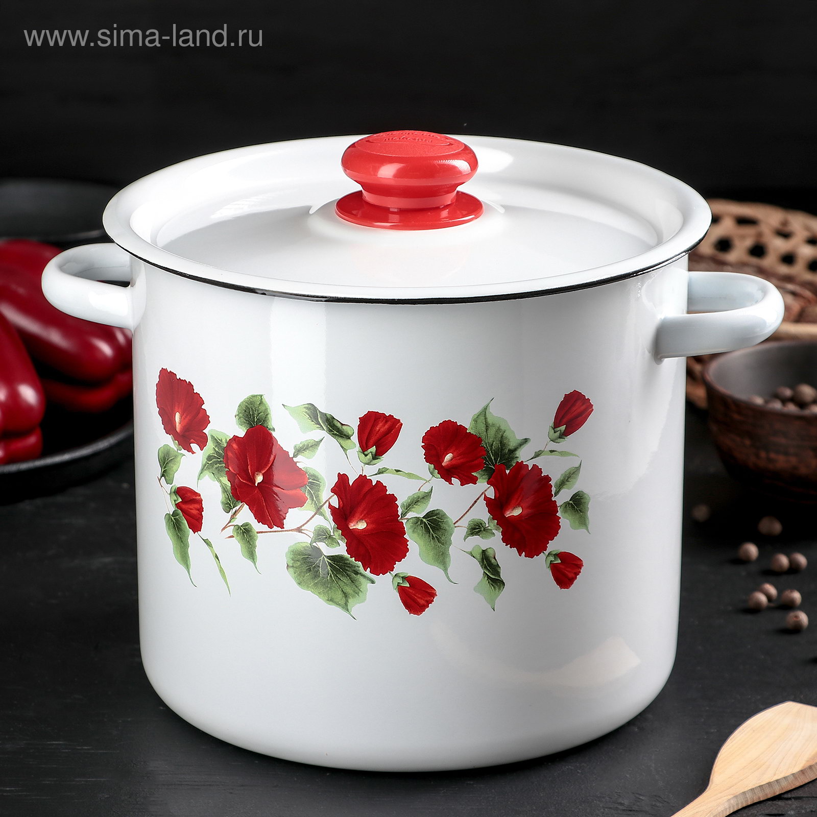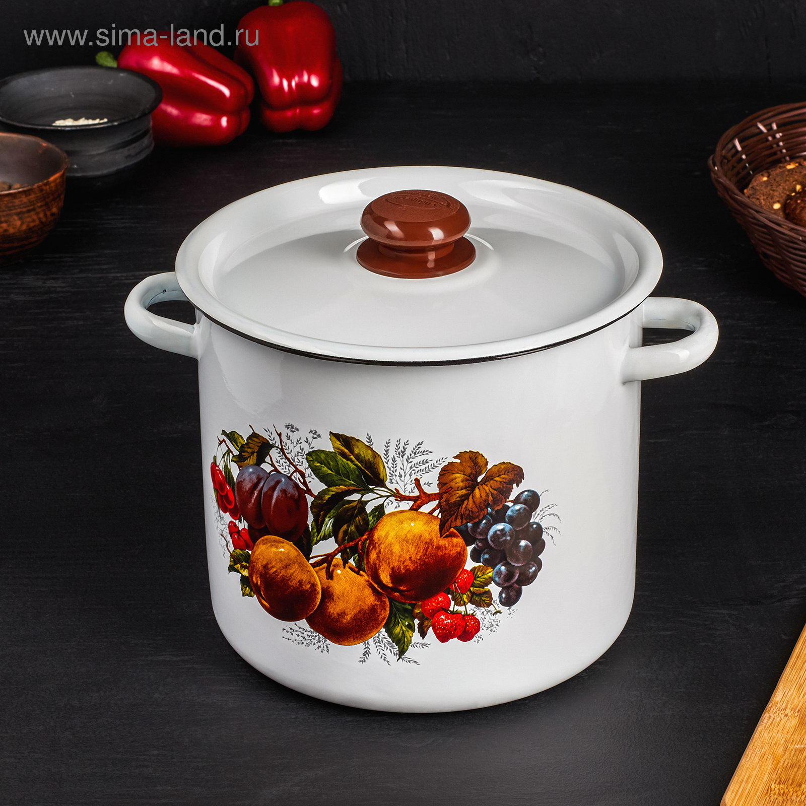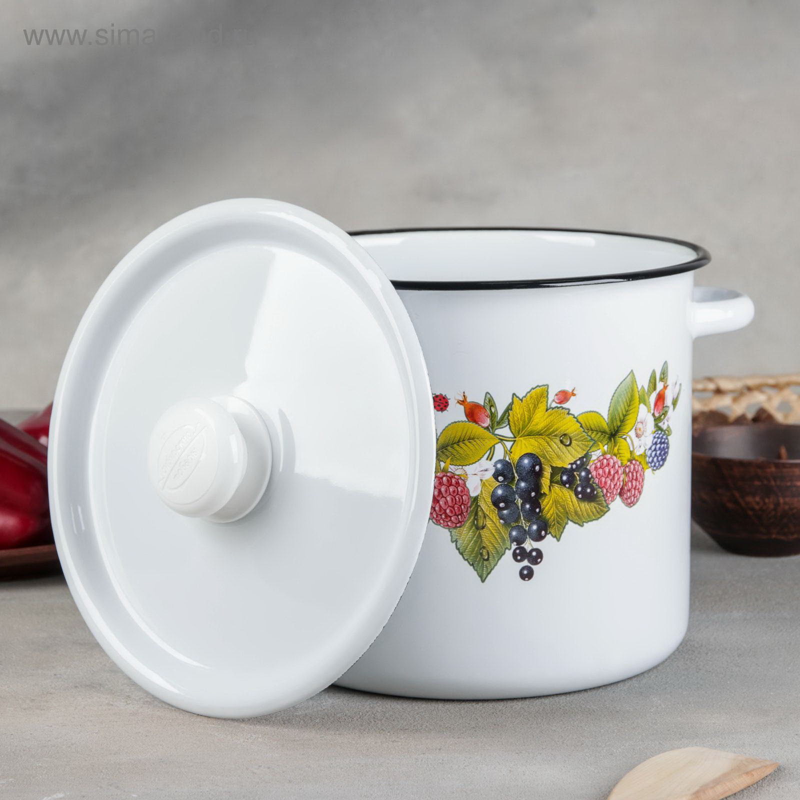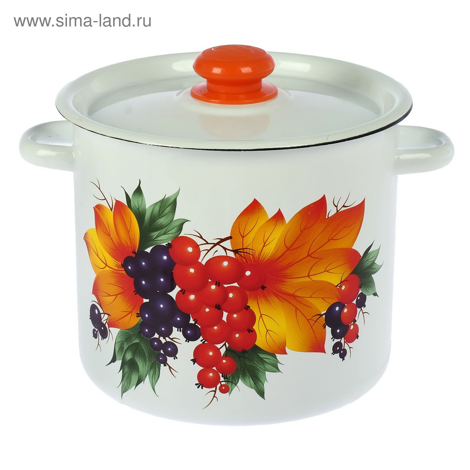 Кастрюля эмалированная, 5.5 л, пластмассовая ручка, рисунок МИКС, цвет белый, 22 см., Сибирские товары, Россия