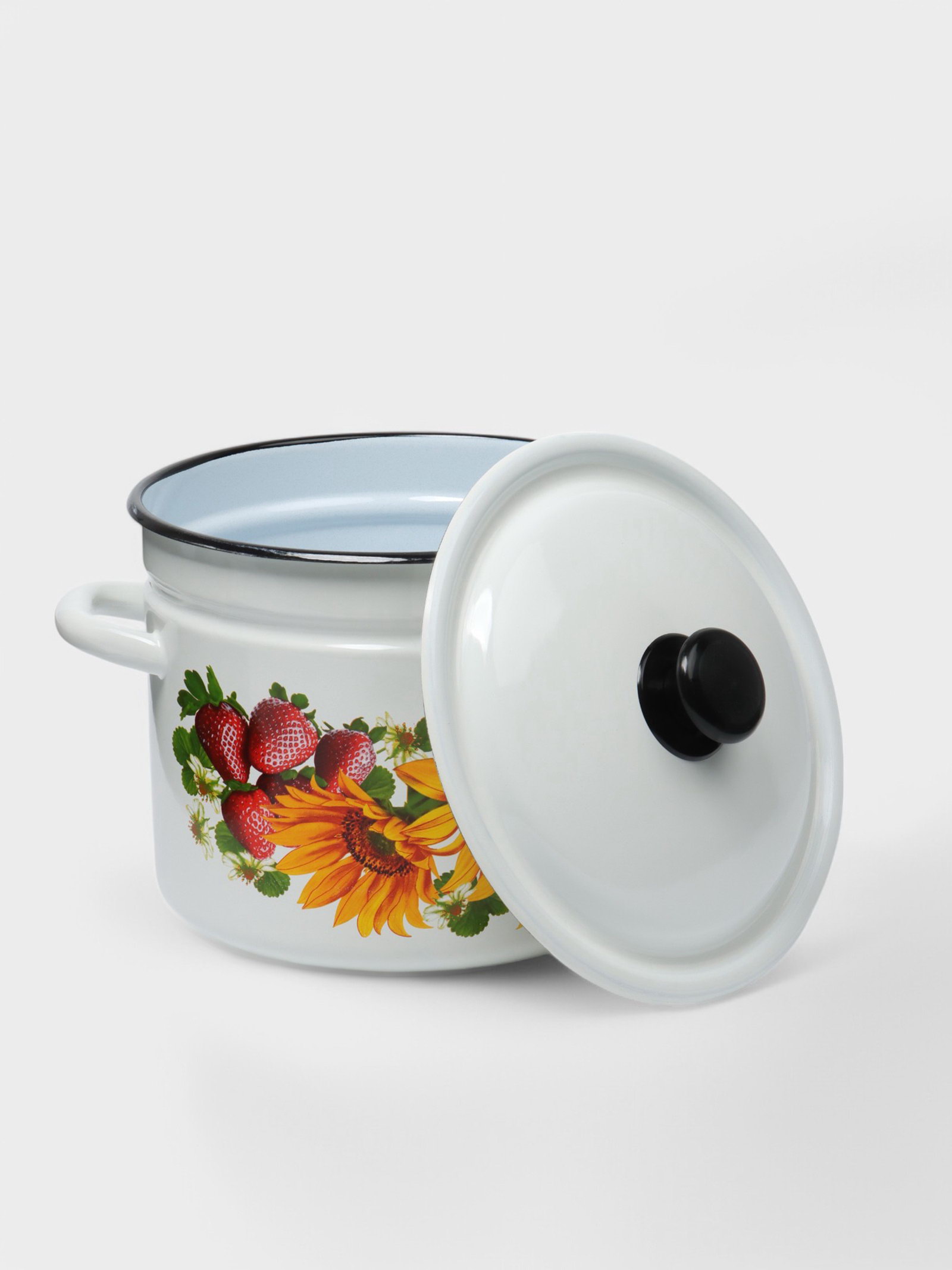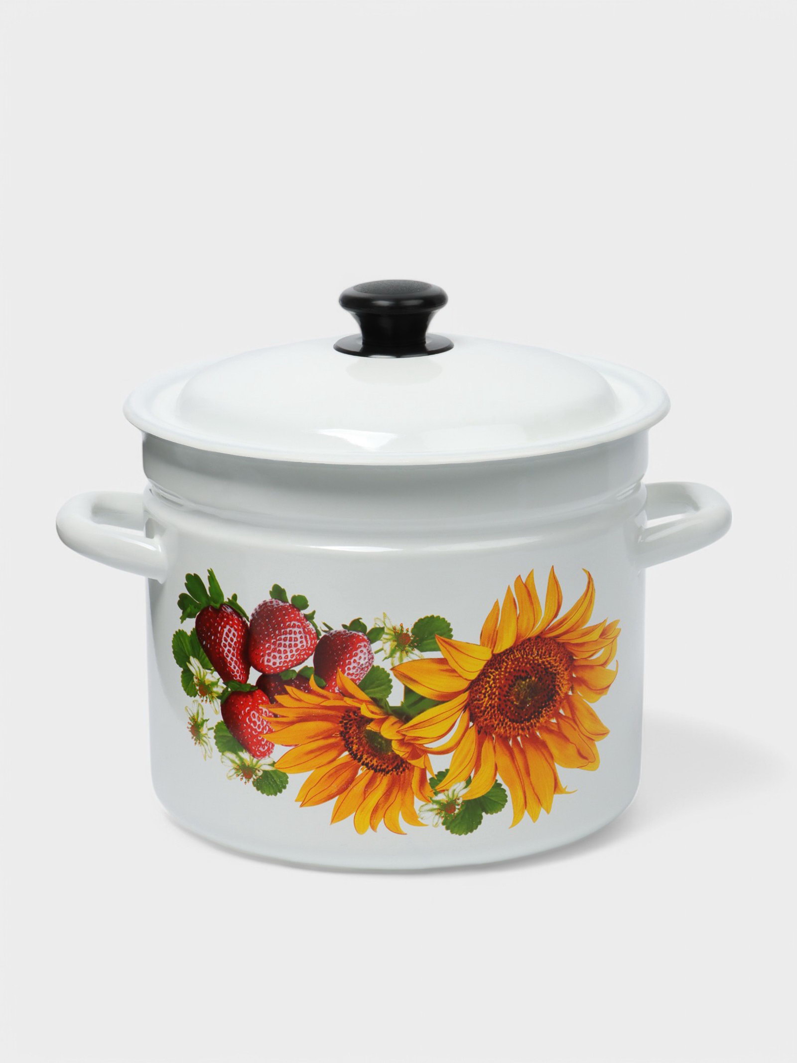 Кастрюля эмалированная, 7 л, d=24 см, цилиндрическая, деколь МИКС, белая, 24 см., Керченская эмаль, Россия