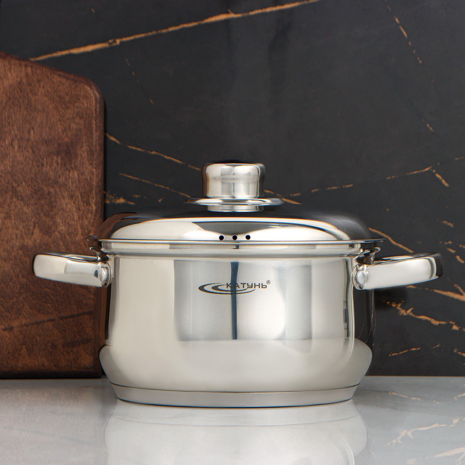 Кастрюля "Гретта", 2.5 л, d=18 см, капсульное дно, индукция, нержавеющая сталь, 18х18х11 см., Катунь, Россия