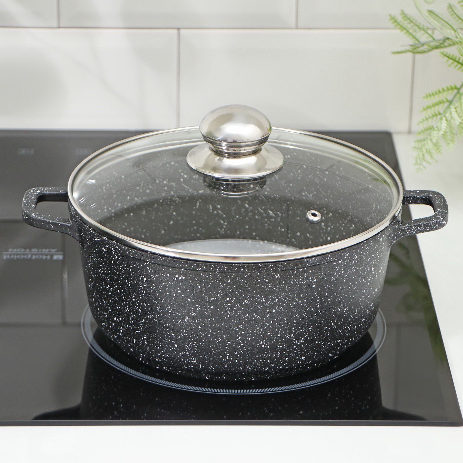 Кастрюля "Элит", 3.3 л, d=22 см, h=10 см, литые ручки, антипригарное покрытие, литой алюминий, чёрная, 22 см., Доляна, Россия