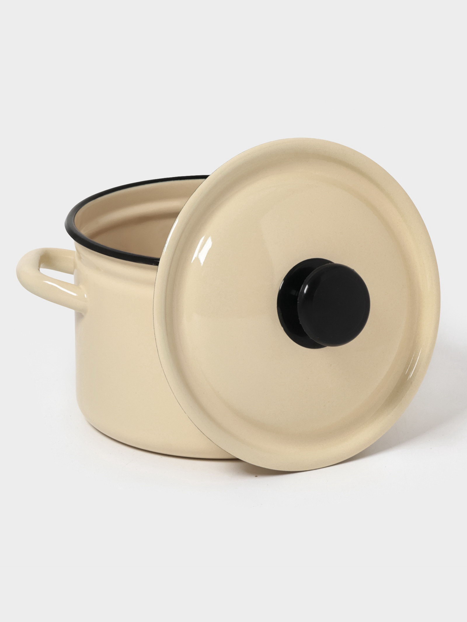 Кастрюля эмалированная, 3 л, d=19 см, с крышкой, цилиндрическая, цвет слоновой кости, 19 см., Россия