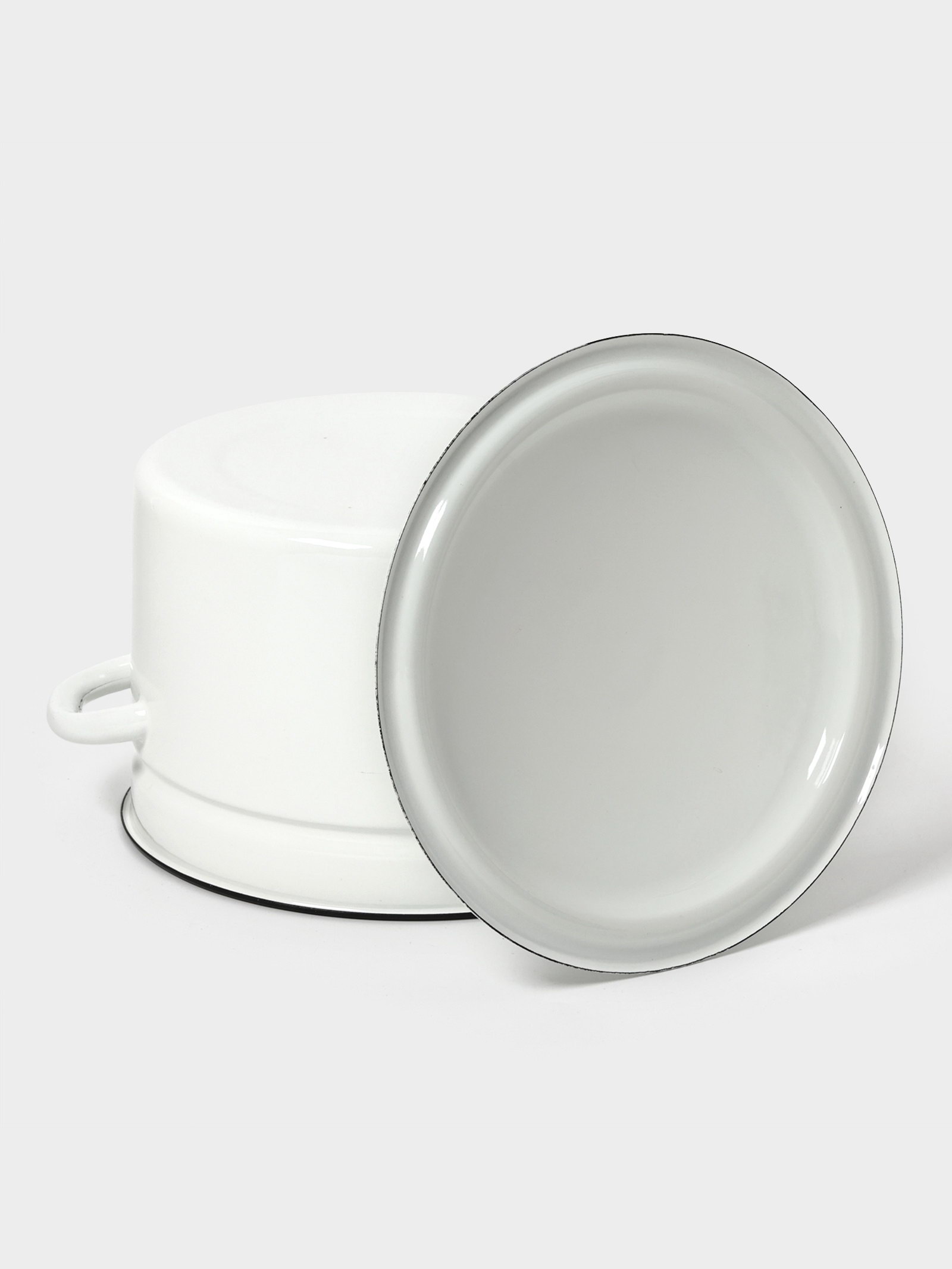 Кастрюля эмалированная, 8 л, d=26.4 см, с крышкой, цилиндрическая, без декора, белая, 26.4 см., Россия