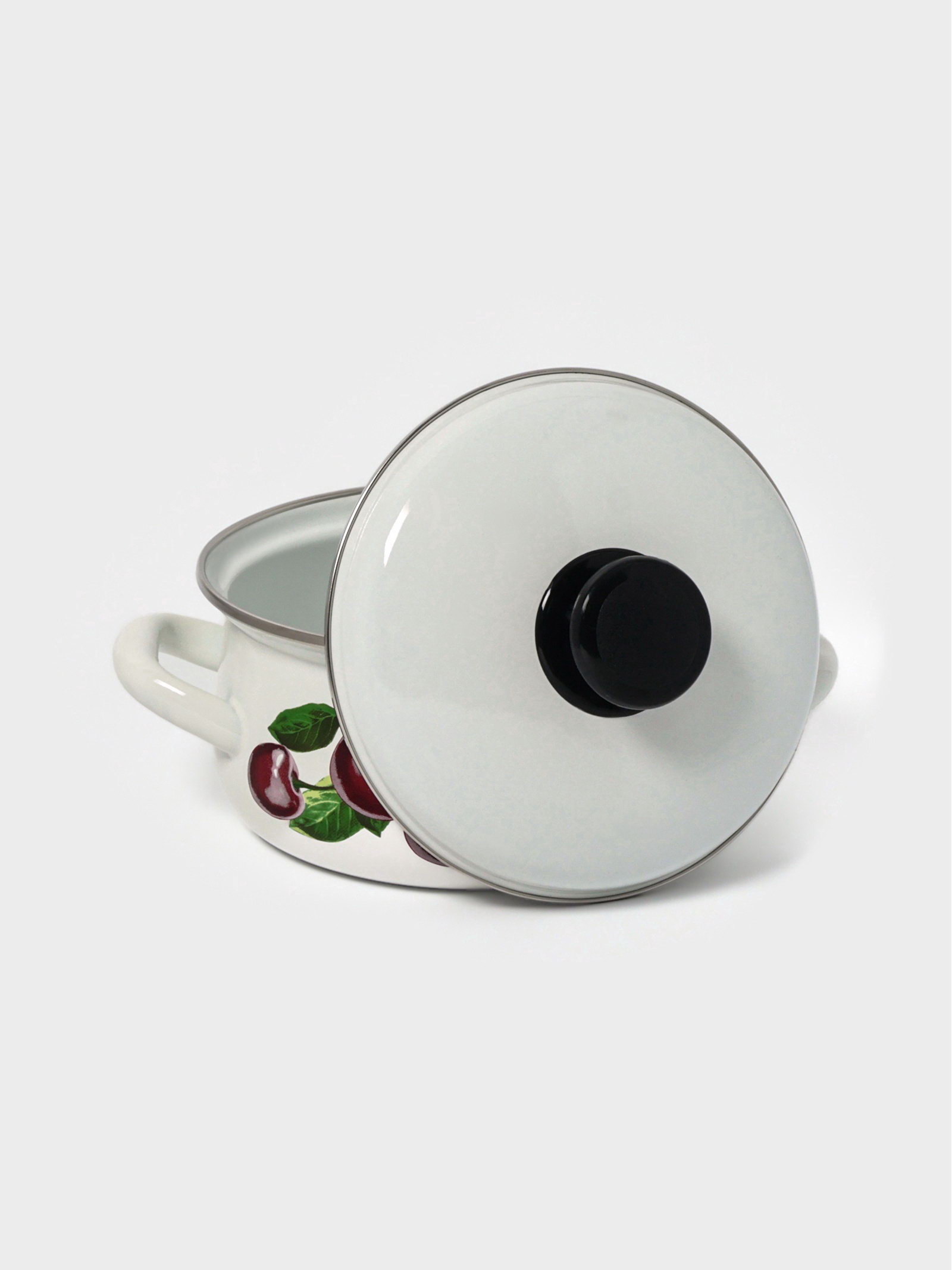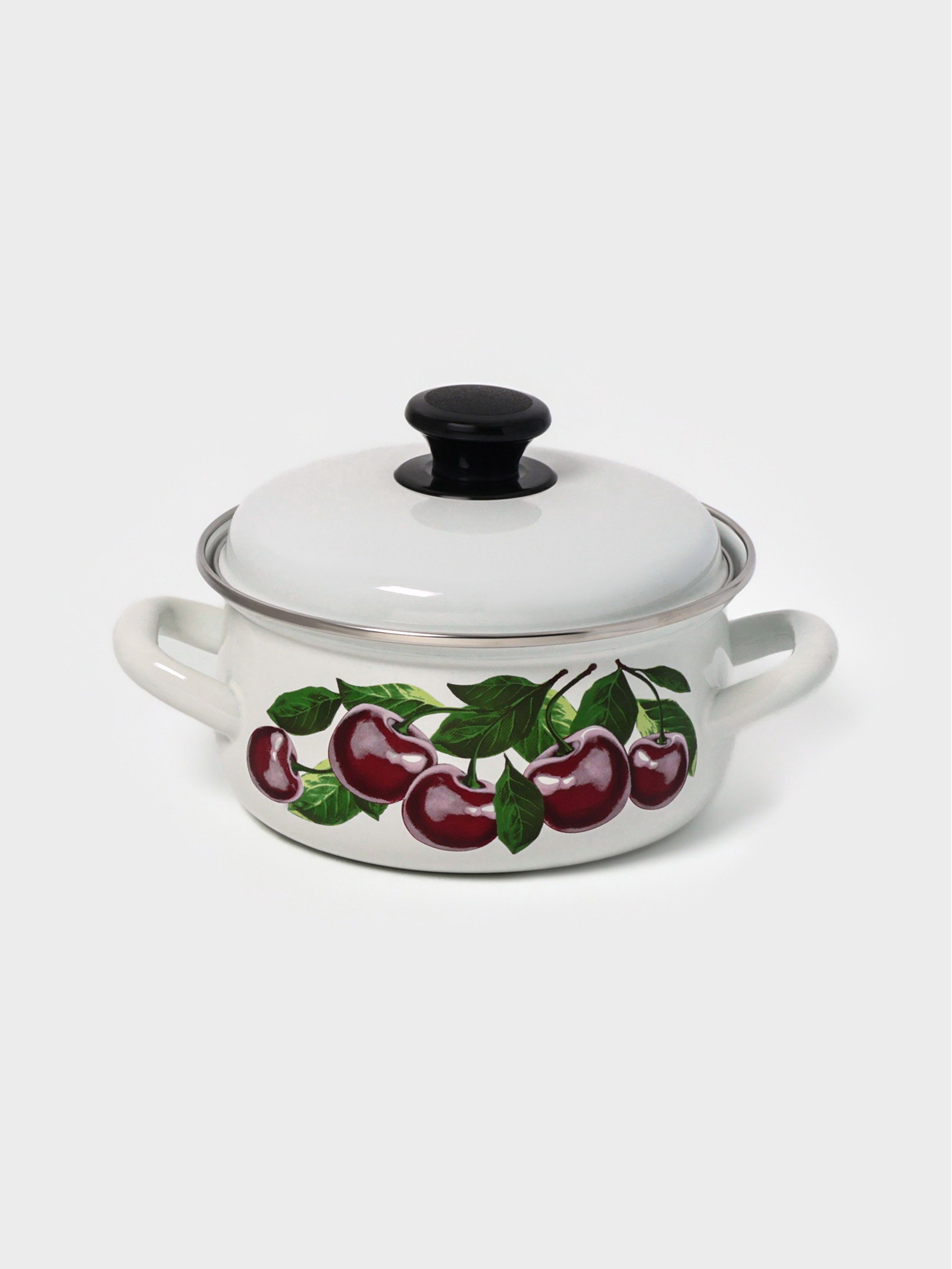 Кастрюля эмалированная "Вишнёвый сад", 1.5 л, d=18.2 см, белая, 18.2 см., Россия