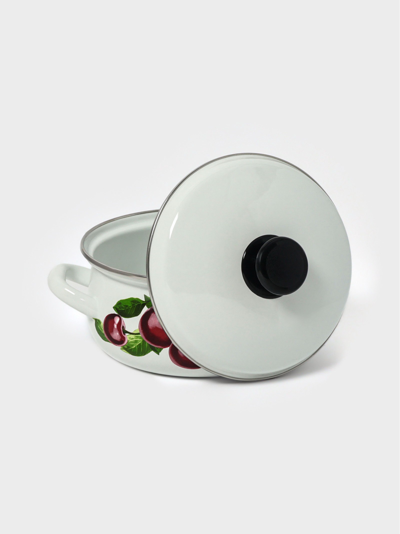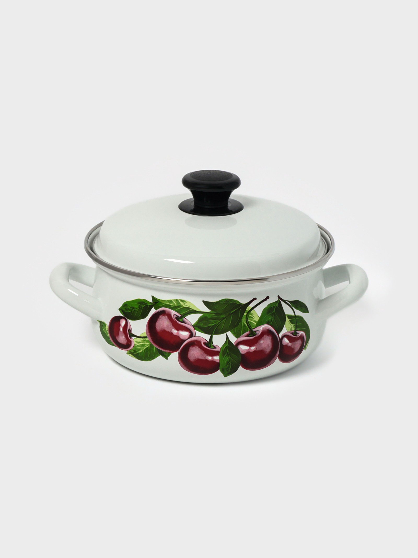 Кастрюля эмалированная "Вишнёвый сад", 2 л, d=20.4 см, белая, 20.4 см., Россия