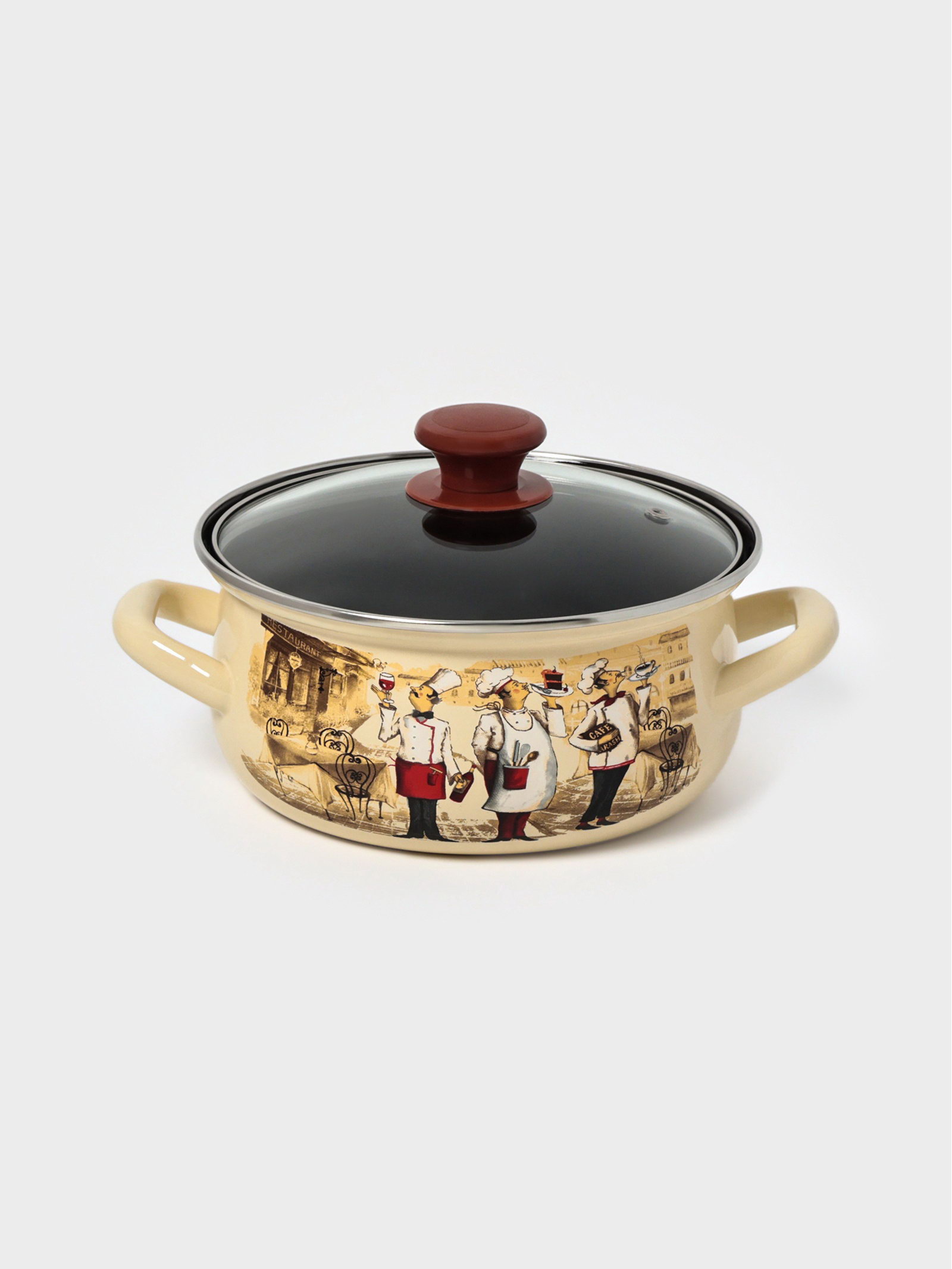 Кастрюля эмалированная "Сомелье", 2 л, d=20.5 см, цвет слоновой кости, 20.5 см., Россия
