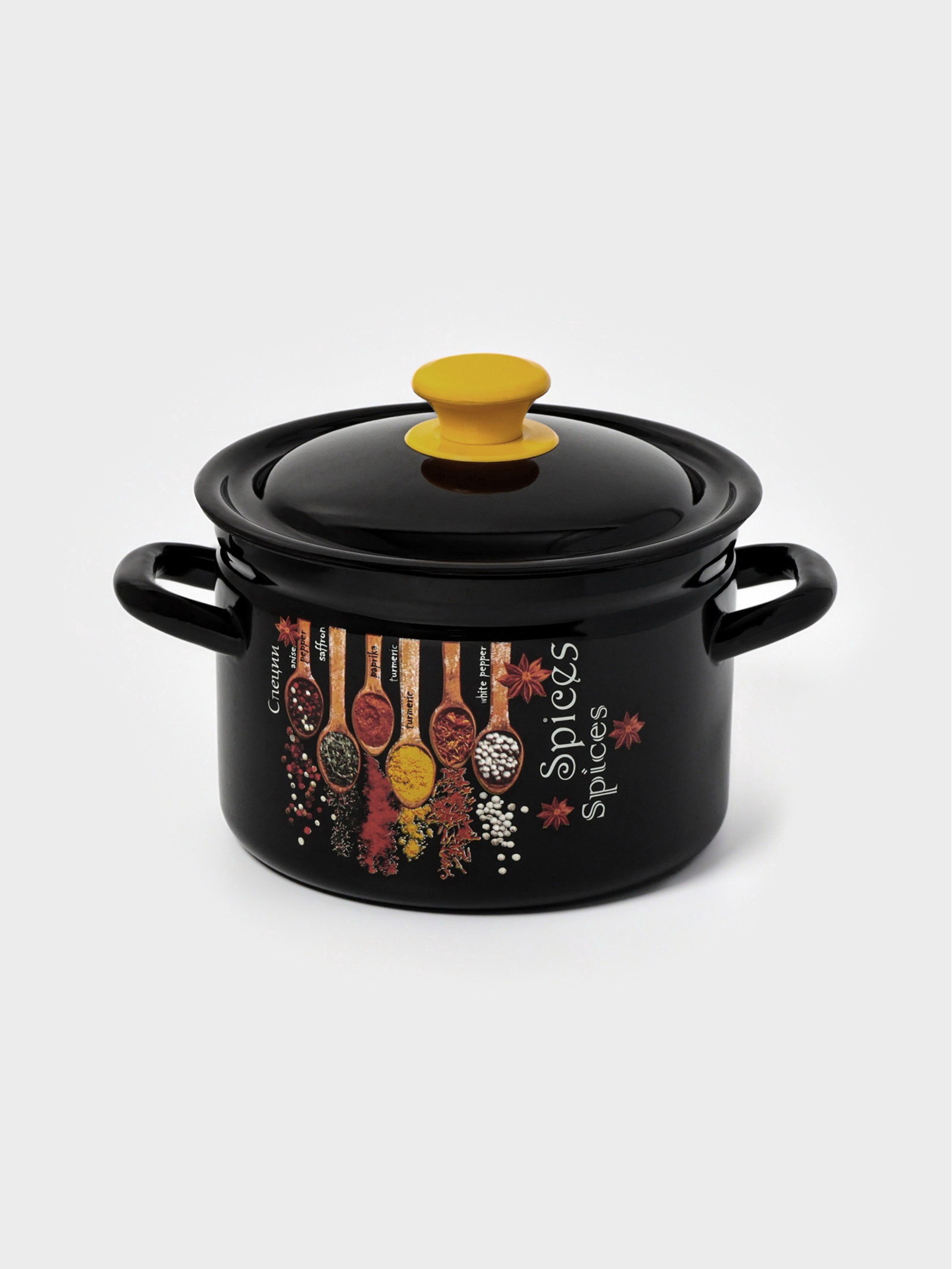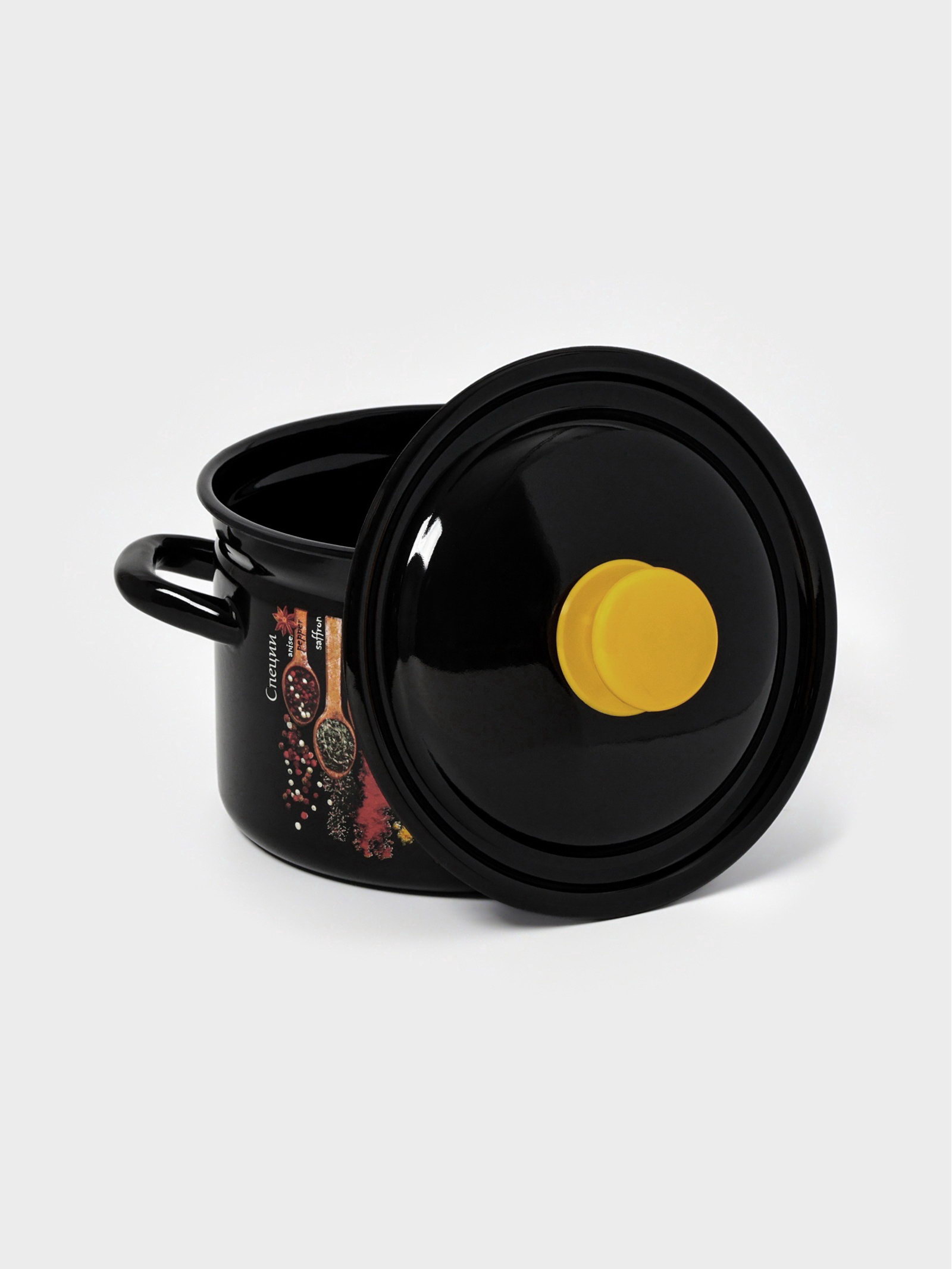 Кастрюля эмалированная "Карри", 3 л, d=19.2 см, с крышкой, чёрная, 19.2 см., Россия