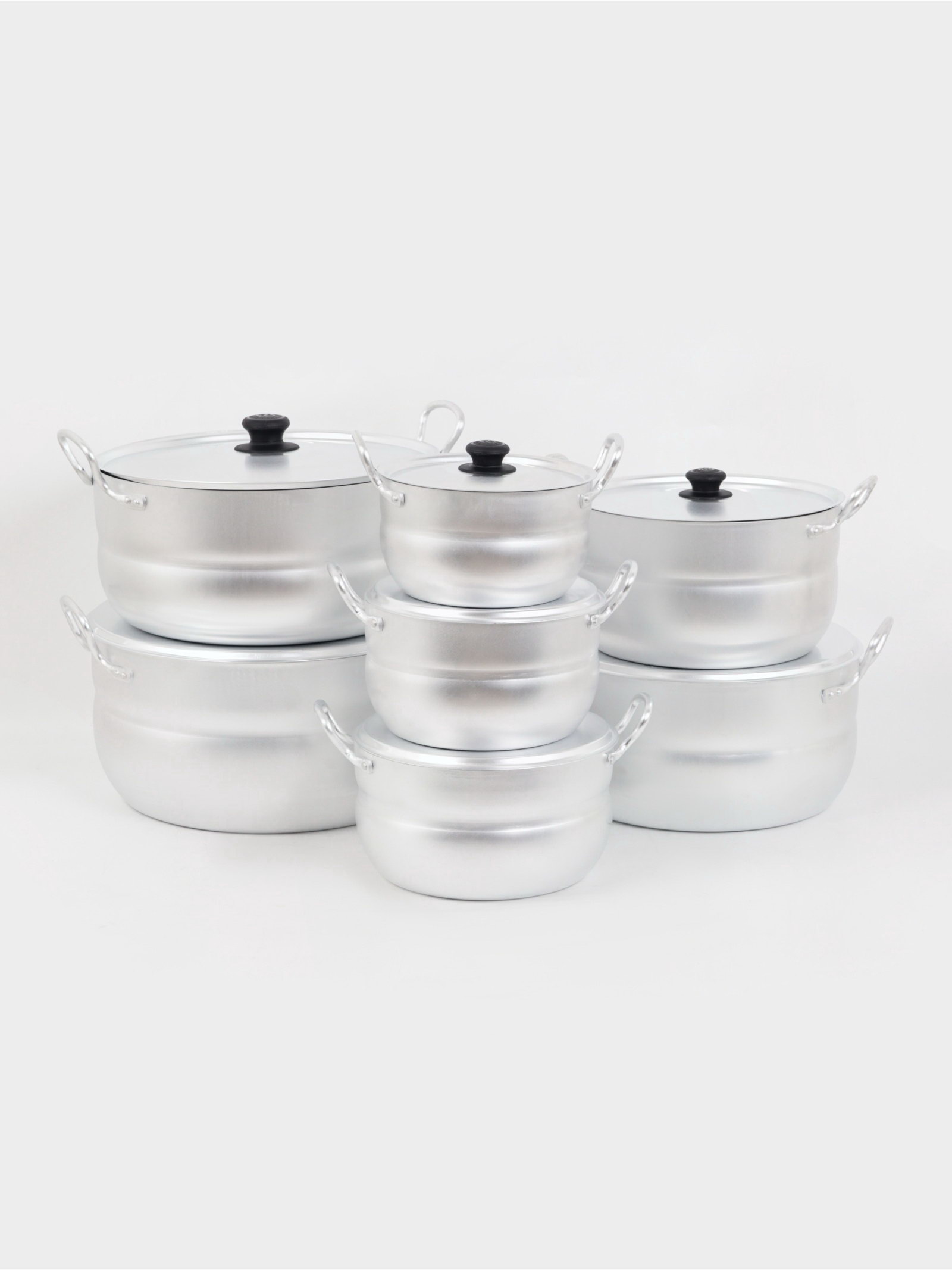 Набор кастрюль "Матрёшка", 7 предметов: 1.7 л, 2.5 л, 3 л, 4.5 л, 6 л, 8 л, 10 л, металлические ручки и крышки, листовой алюминий 1.5-1.75 мм, серебристая, Белая калитва, Россия