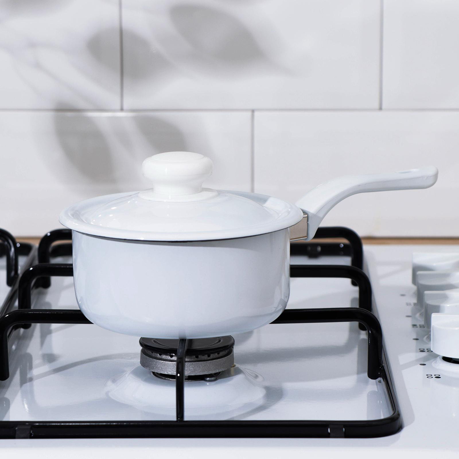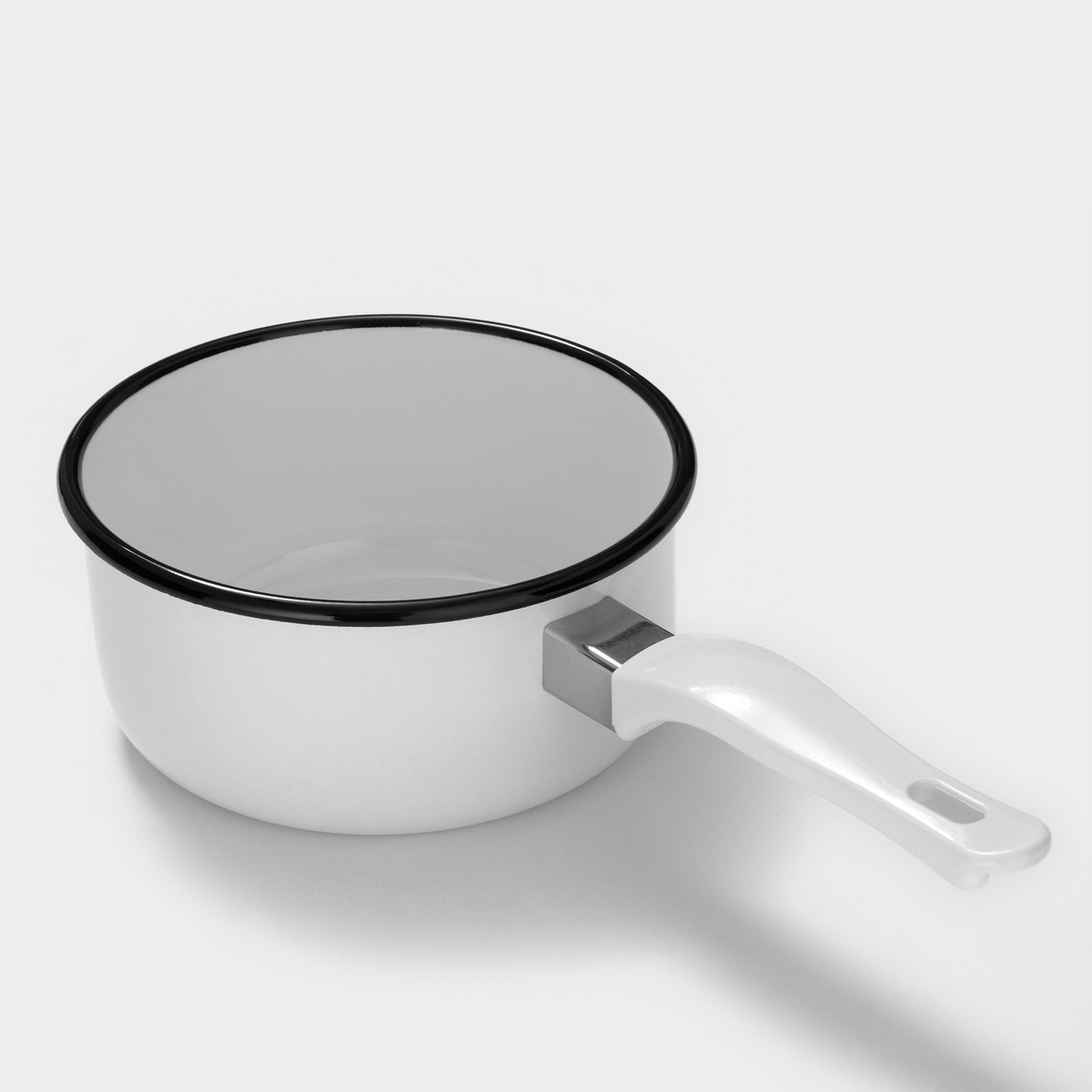 Ковш эмалированный, 600 мл, с крышкой, без деколи, белый, 13 см., Лысьвенские эмали, Россия
