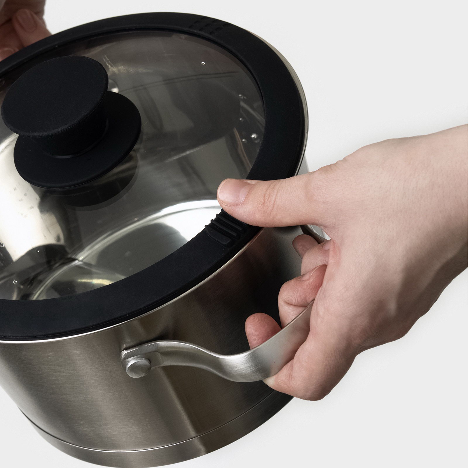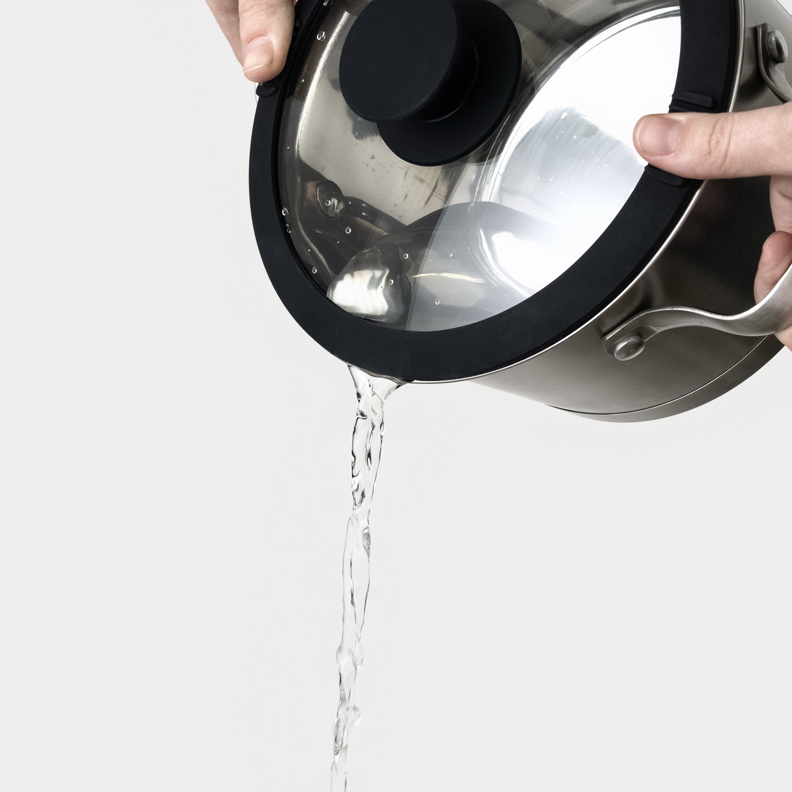 Крышка d=18 см, со сливом, с силиконовым ободком и ручкой, жаропрочное стекло, 18х18х5.5 см., Magistro, Китай