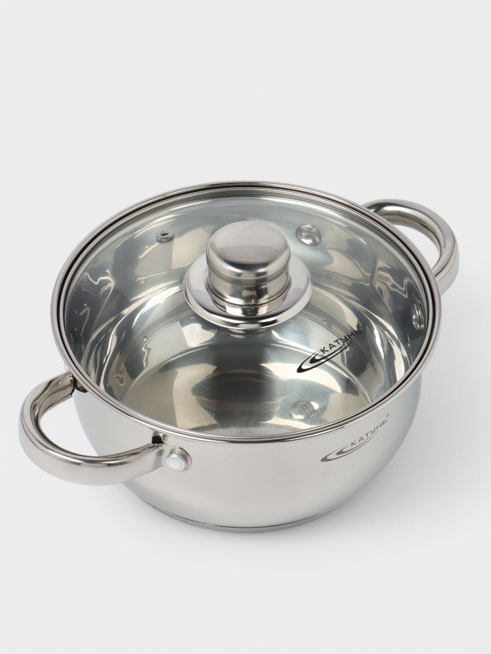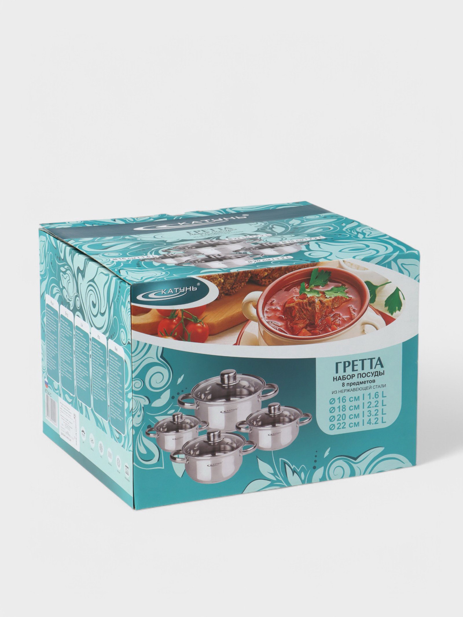 Набор кастрюль"Гретта", 4 предмета: 1.6 л, 2.2 л, 3.2 л, 4.2 л, капсульное дно, индукция, нержавеющая сталь, 27x22x32 см., Катунь, Россия