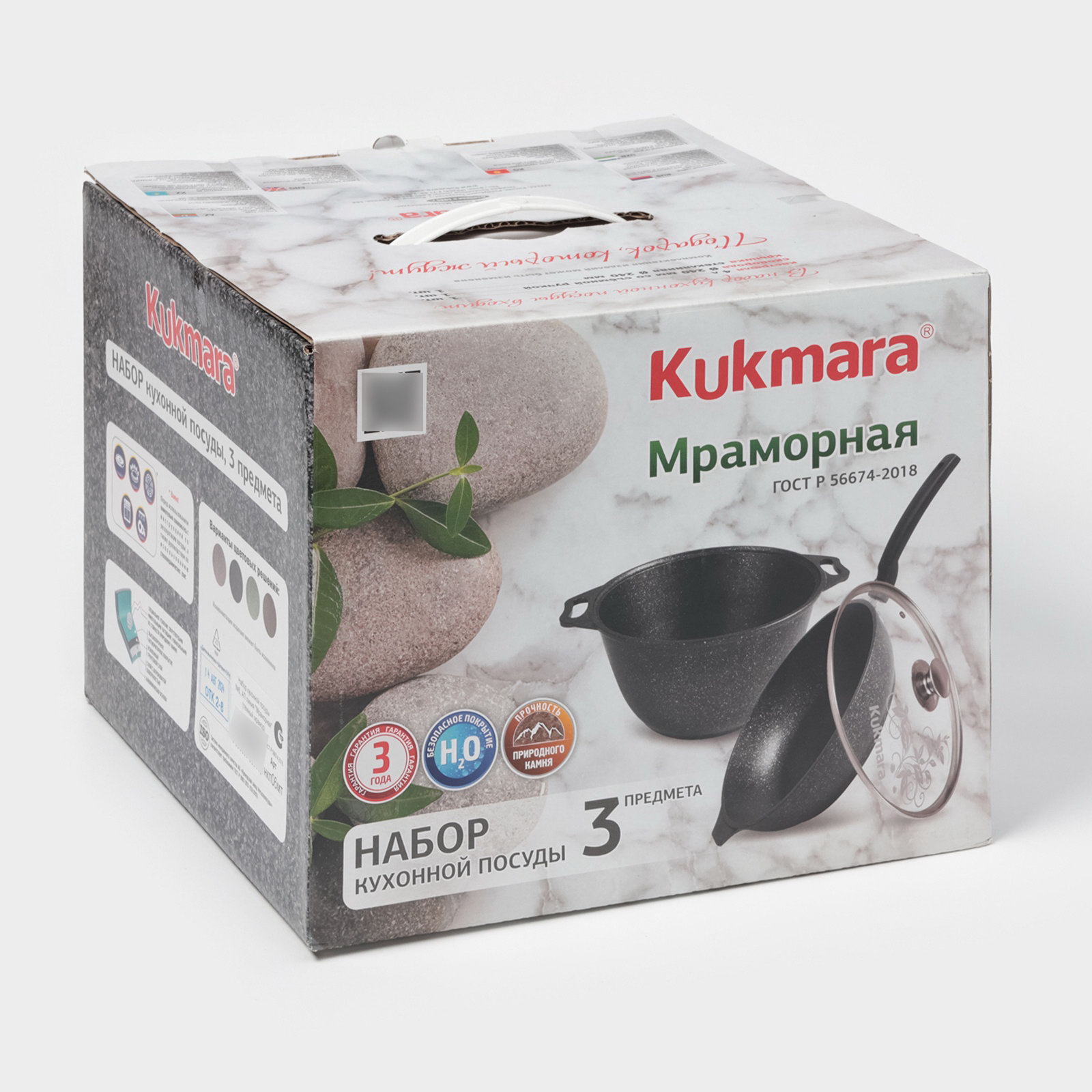 Набор посуды "Мраморная №6", 2 предмета, съёмная ручка, антипригарное покрытие, чёрный, 4000 мл., KUKMARA, Россия