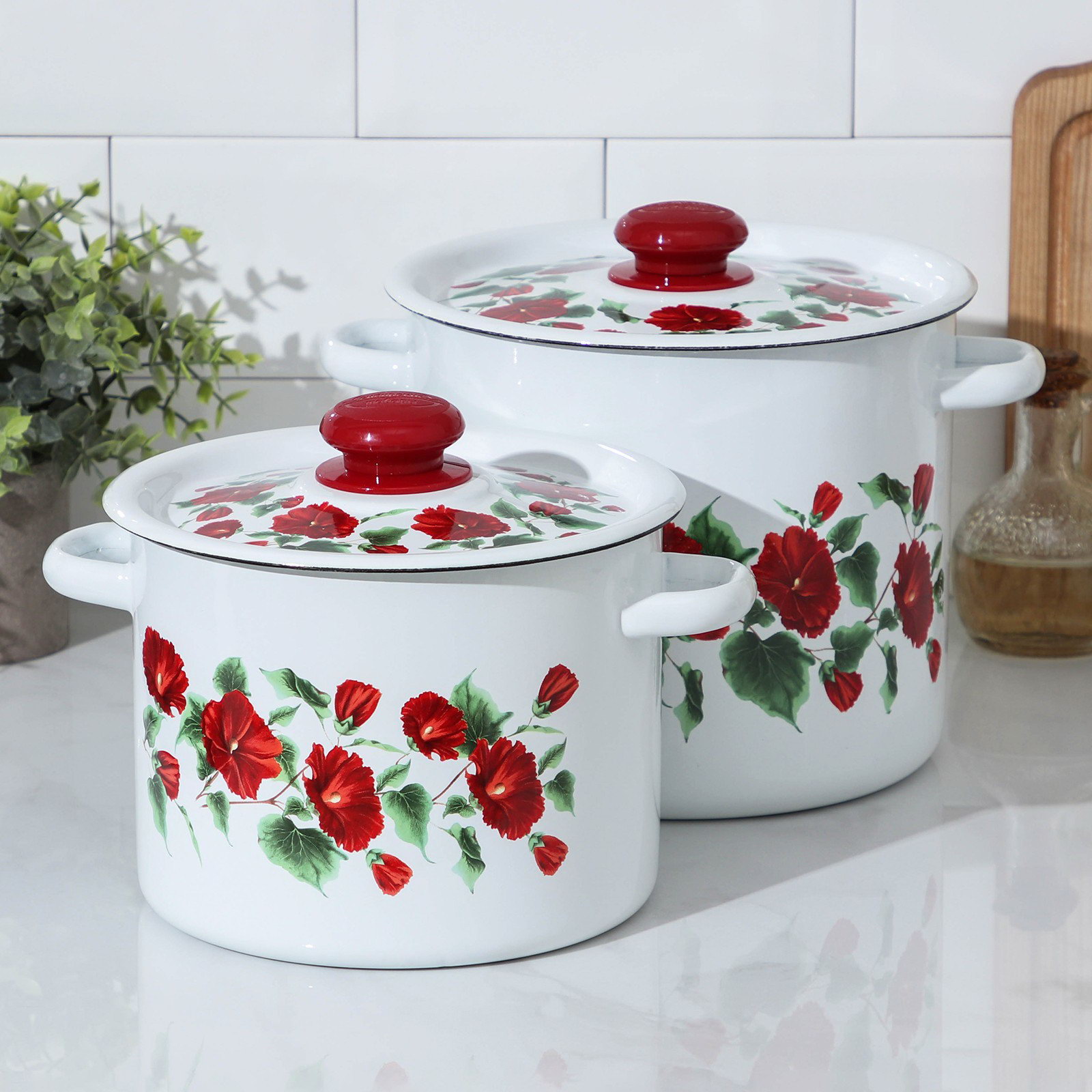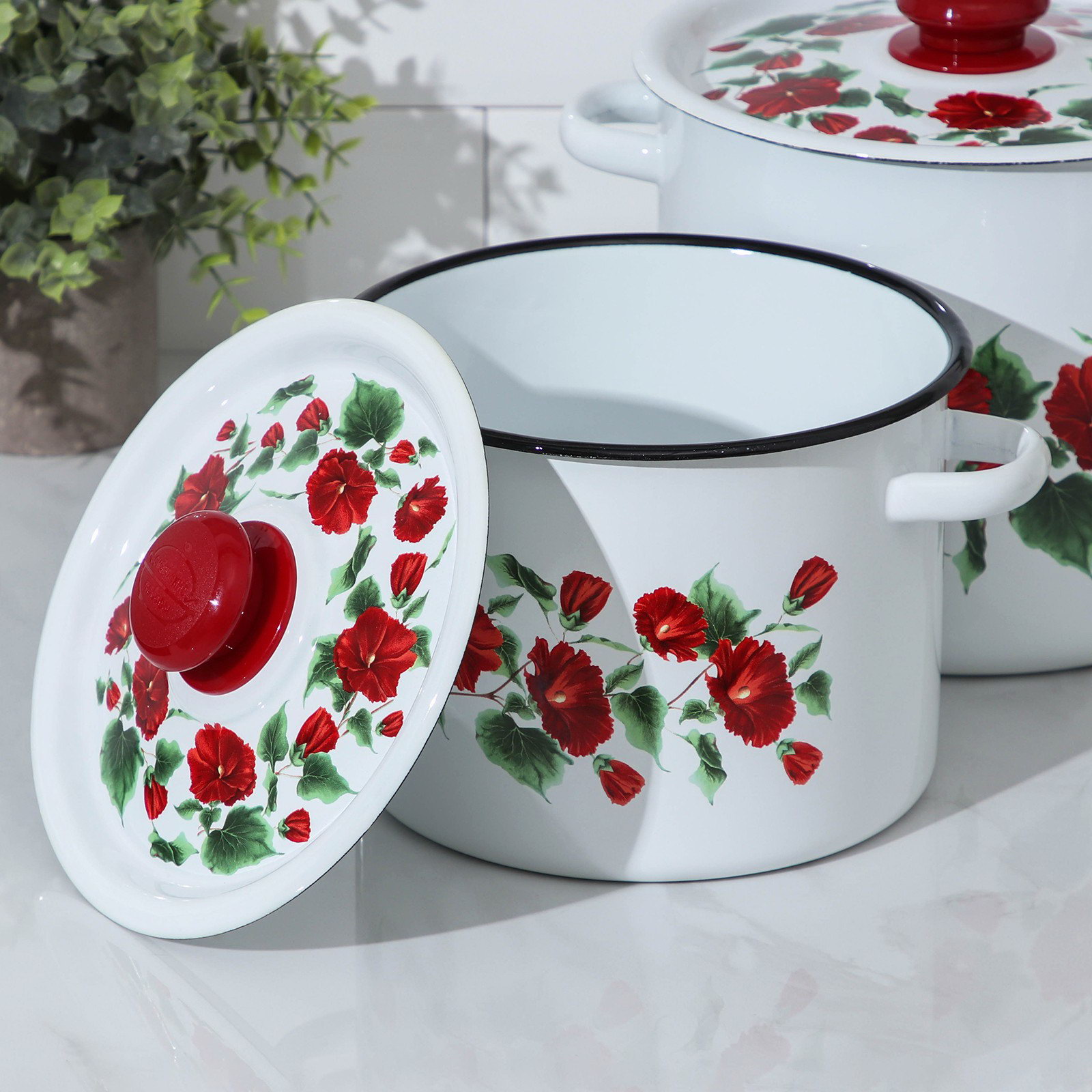 Набор эмалированных кастрюль "Рамо", 2 предмета: 3.5 л, 5.5 л, Сибирские товары, Россия