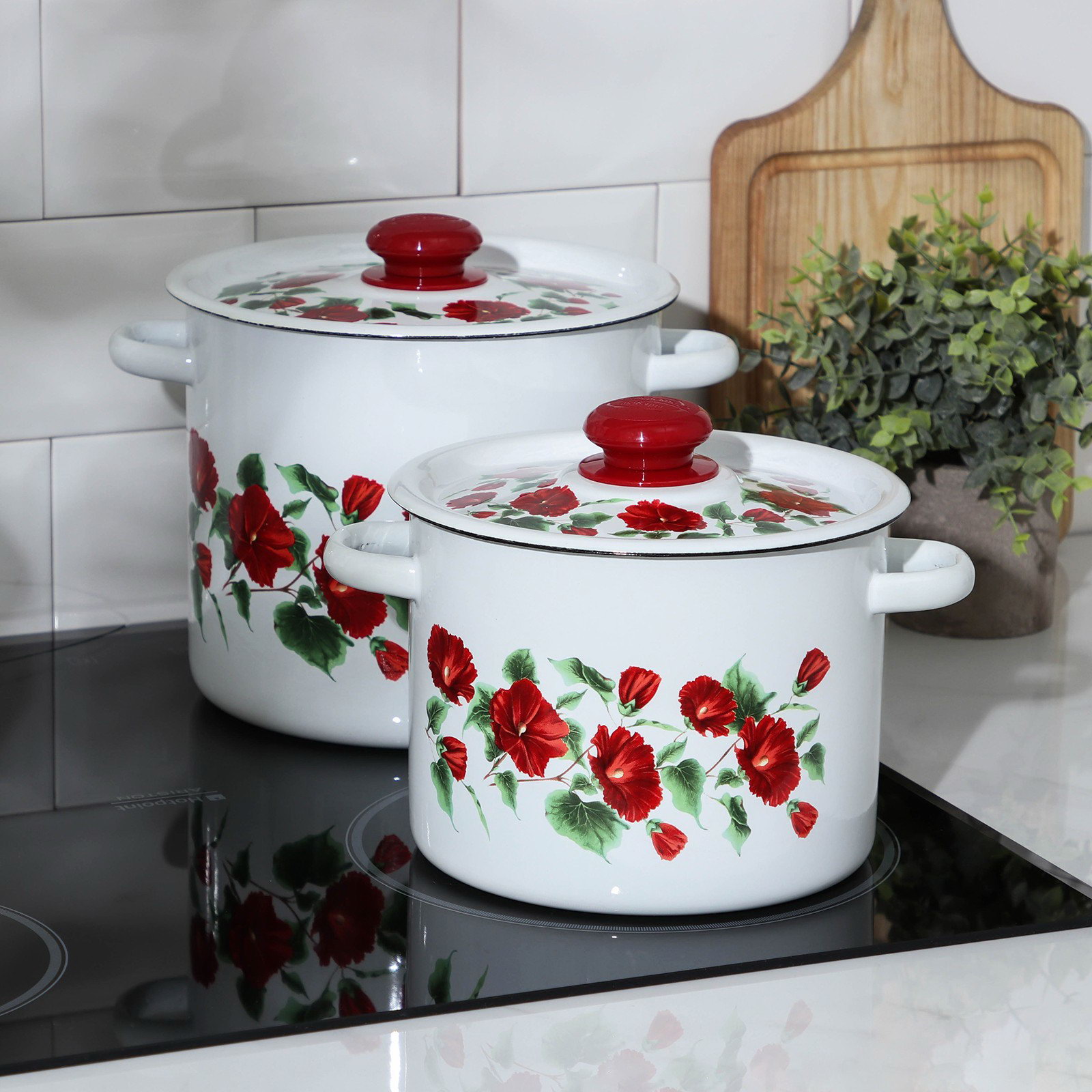 Объём, л: 3.5, 5.5 Цвет: Белый, Красный Тип плиты: Для газовой плиты, Для галогенной плиты, Для индукционной плиты, Для стеклокерамической плиты, Для электрической плиты Размер упаковки: 25 x 25 x 40 см. Рисунок: Да В наборе, шт.: 2 Съёмная ручка: Нет Крышка: Да Набор: Да Материал крышки: Эмалированная сталь Тип покрытия: Эмалированное tnved: 7323940000 tnved: 7323940000 Капсульное дно: Нет Особенность: Индукционная плита Товар Каспи: Наборы посуды для готовки Состав набора: Кастрюля Можно мыть в посудомоечной машине: Да Кастрюли сделаны из качественной стали, покрытой эмалью с декоративным рисунком. Они отлично подходят для приготовления и хранения различных блюд. Особенности: