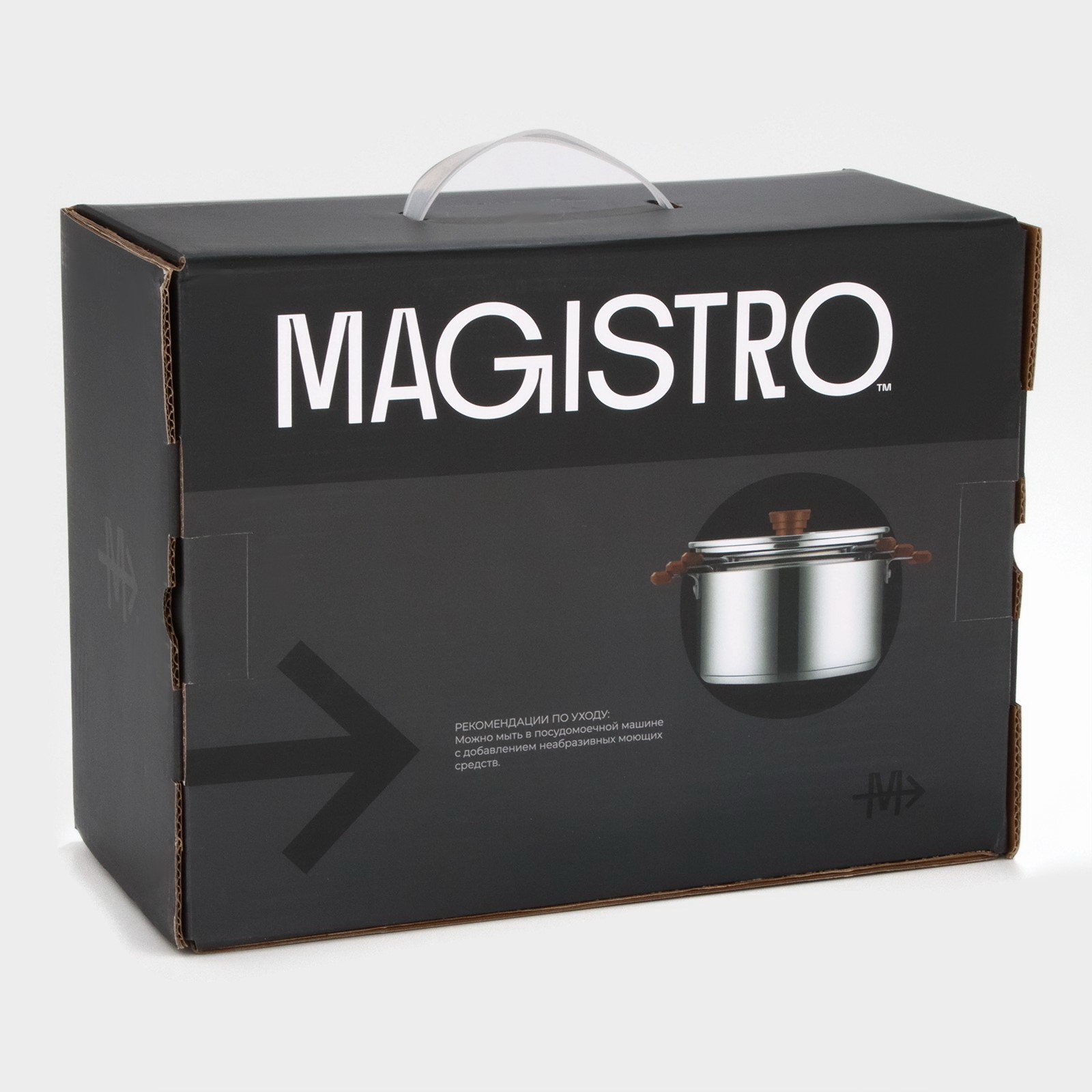 Набор кастрюль 3 шт.: d=16/20/24 см, толщина 0.6 мм, штабелируемые, индукция, 304 AISI марка стали, 37x35x27.5 см., Magistro, Китай