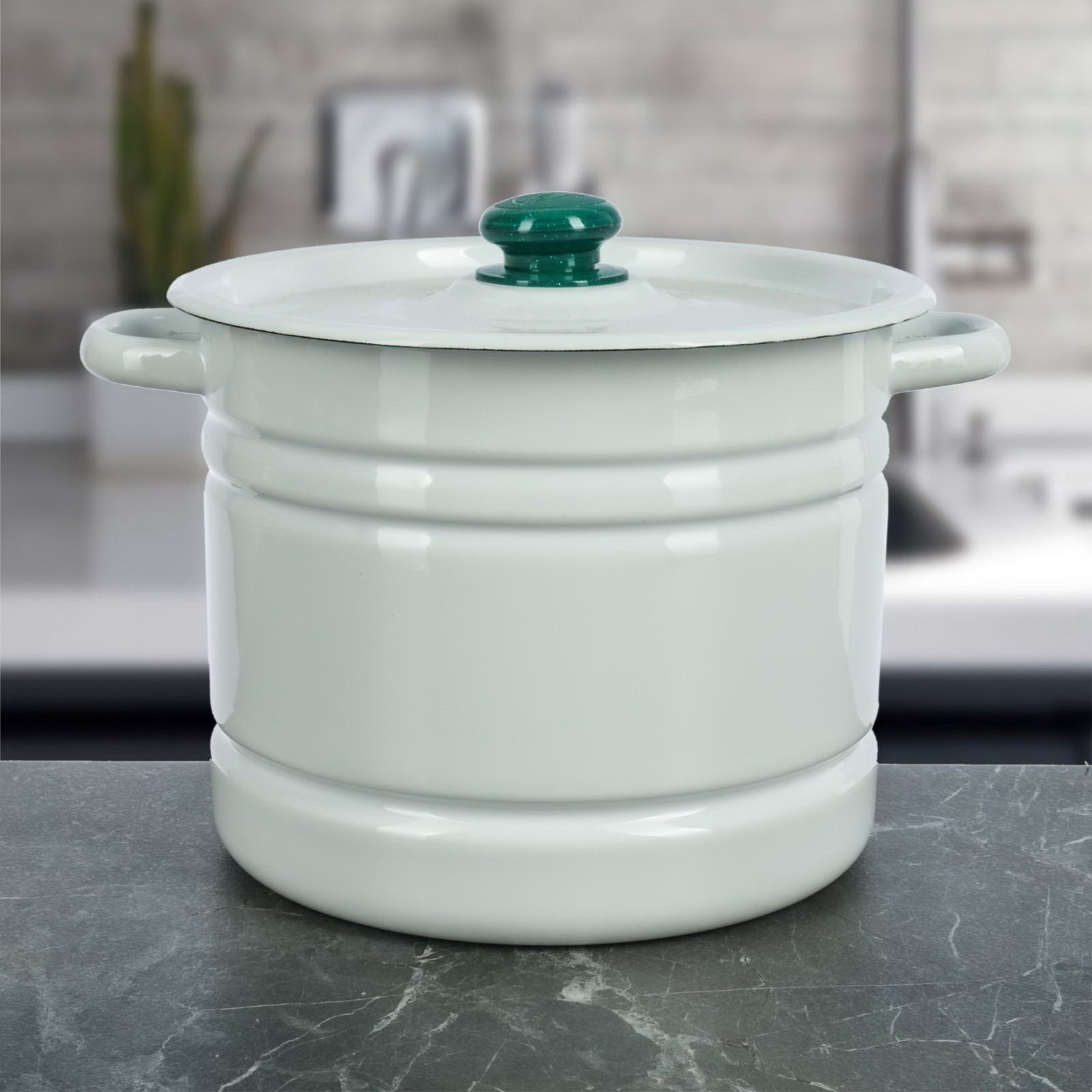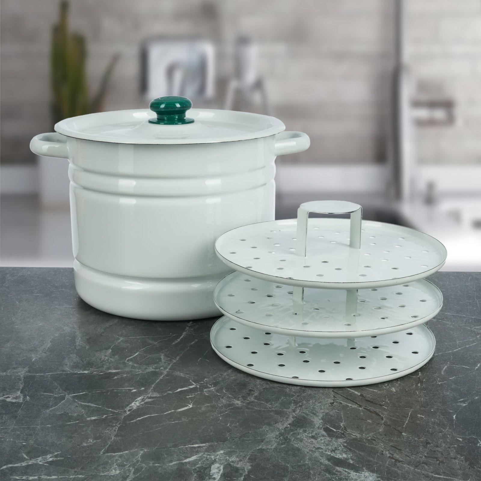 Мантоварка - позница, 9 л, 3 вставки, эмалированная, цилиндрическая, белая, 27x33x22 см., Сибирские товары, Россия