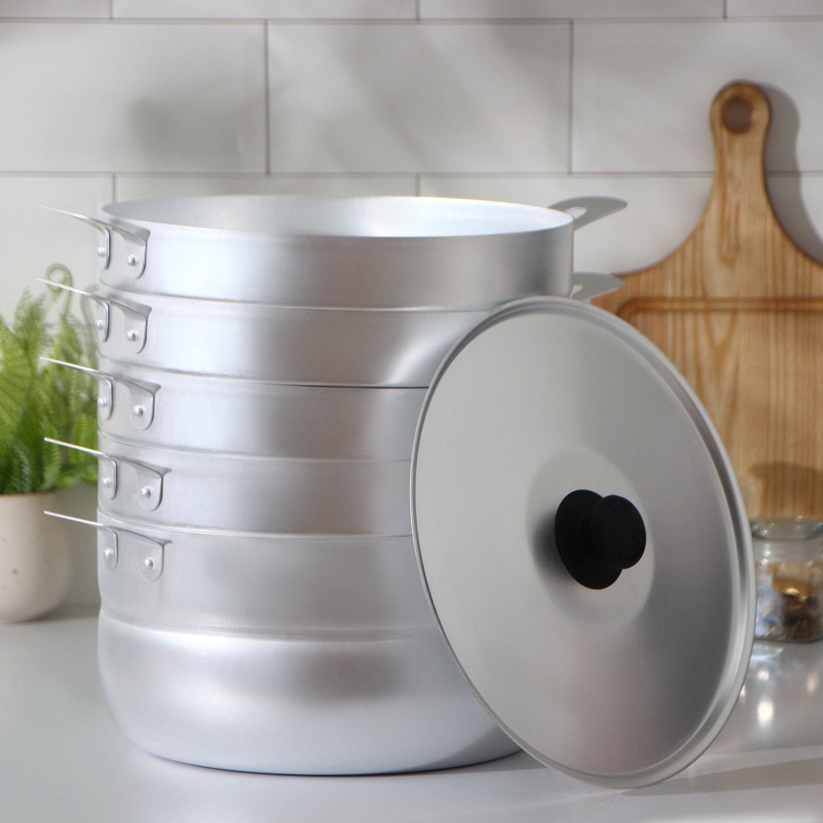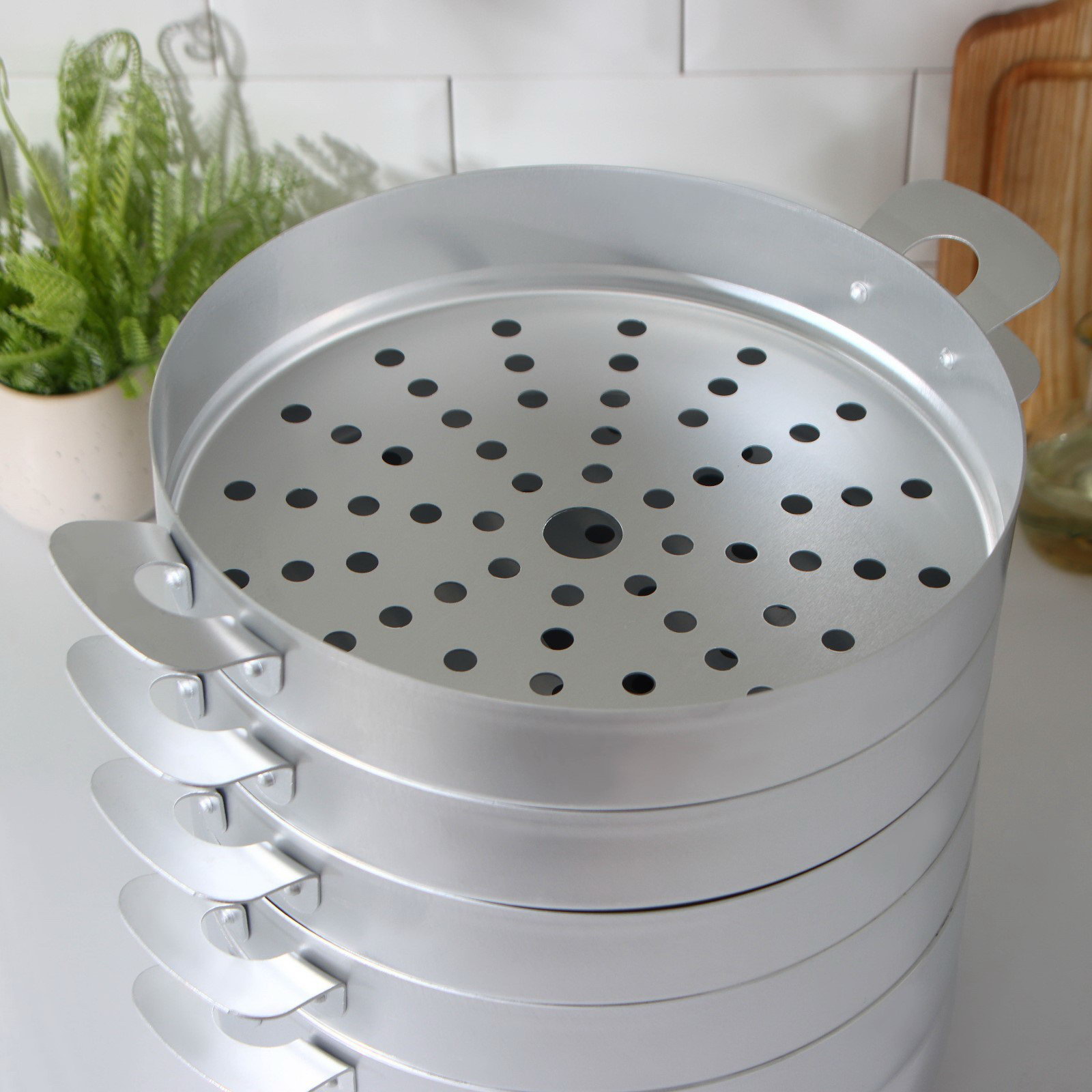 Манты-казан, 6 л, d=26 см, с 4 сетками, высота секции 5 см, с крышкой, штампованный алюминий, 6000 мл., Белая калитва, Россия