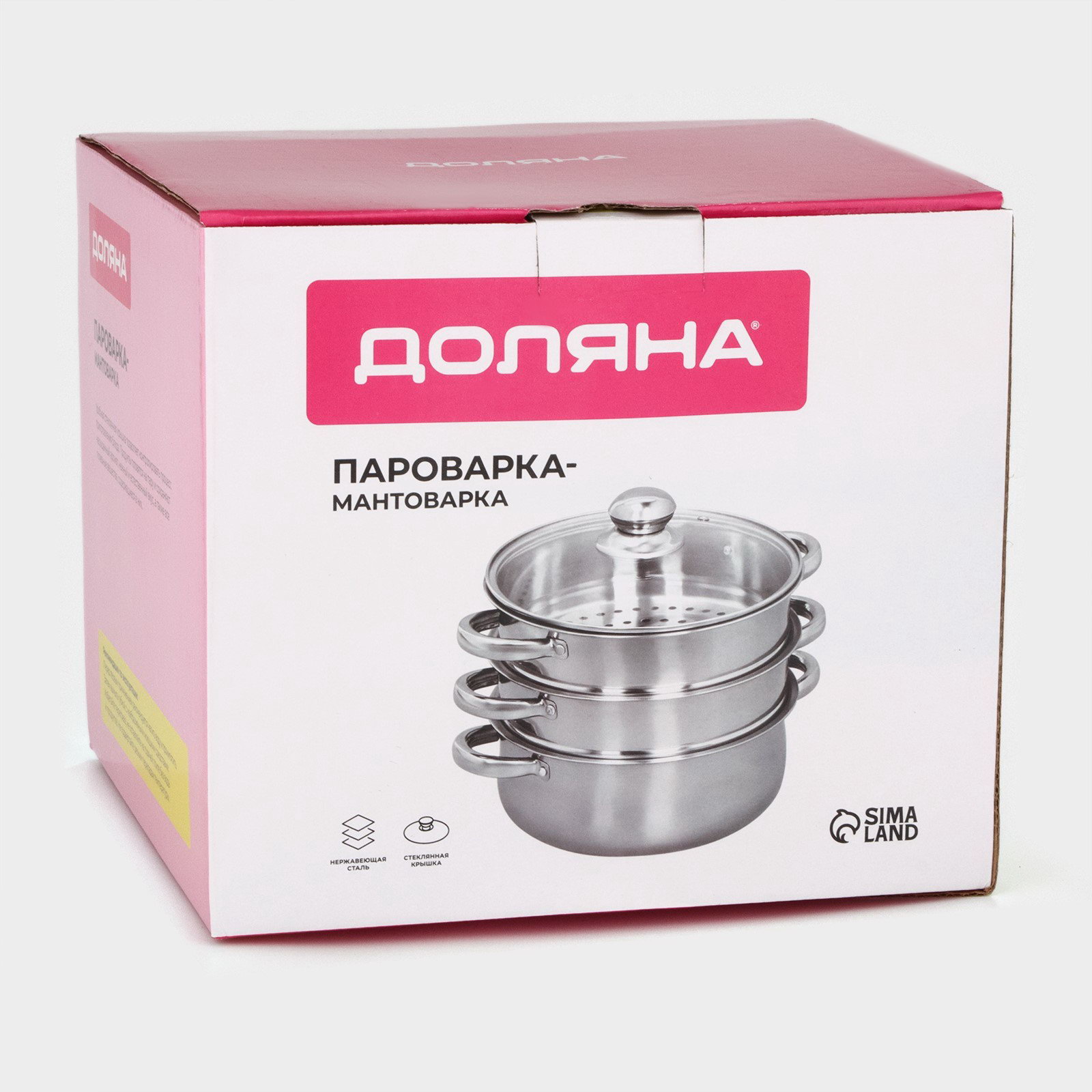 Мантоварка-пароварка "Классика", d=24 см, 3 уровня, общий объём 7.9 л, индукция, нержавеющая сталь, 24х24х26 см., Доляна, Китай
