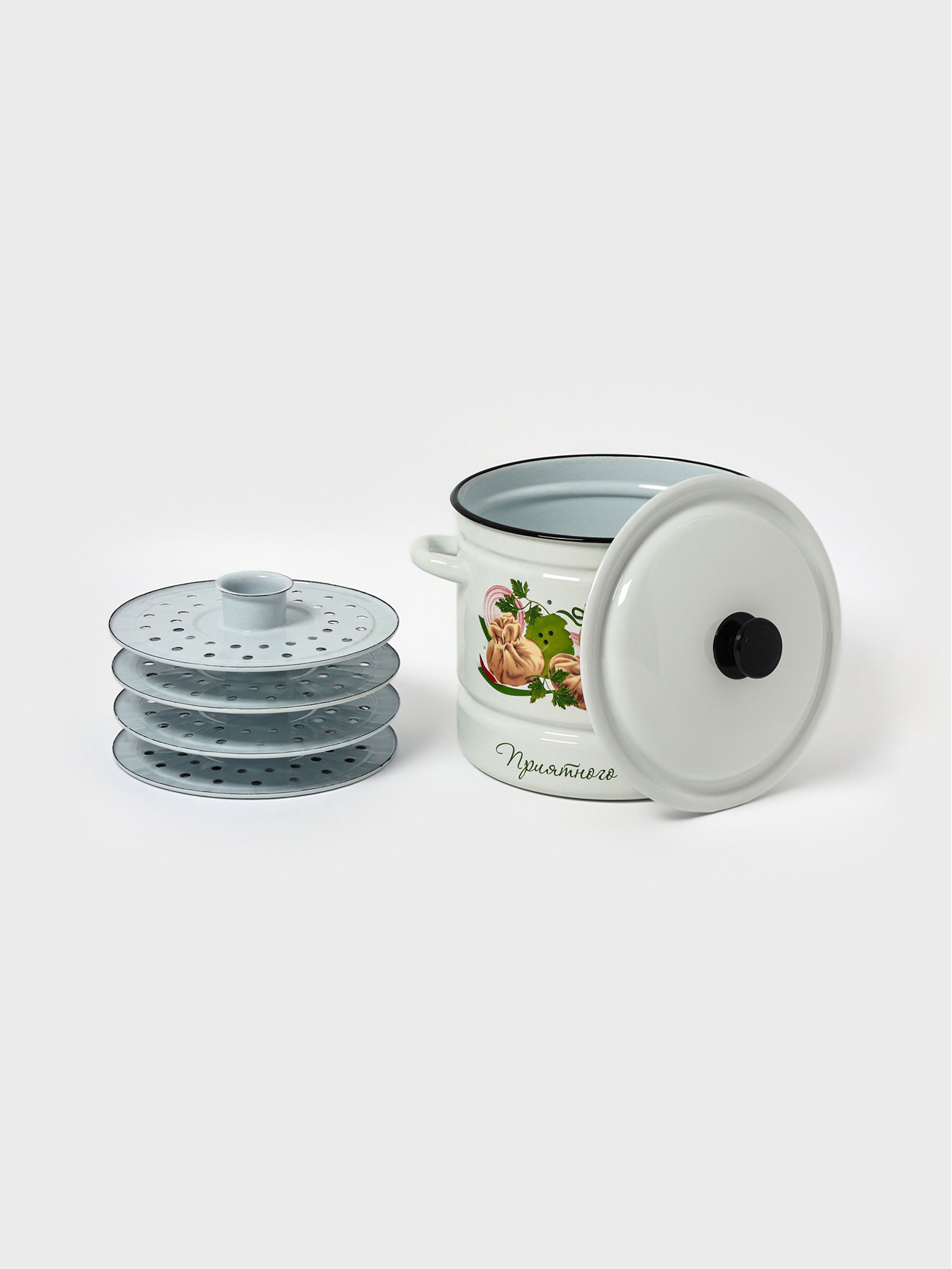 Кастрюля эмалированная паровая "Манты", 10 л, белая, 26.7 см., Россия