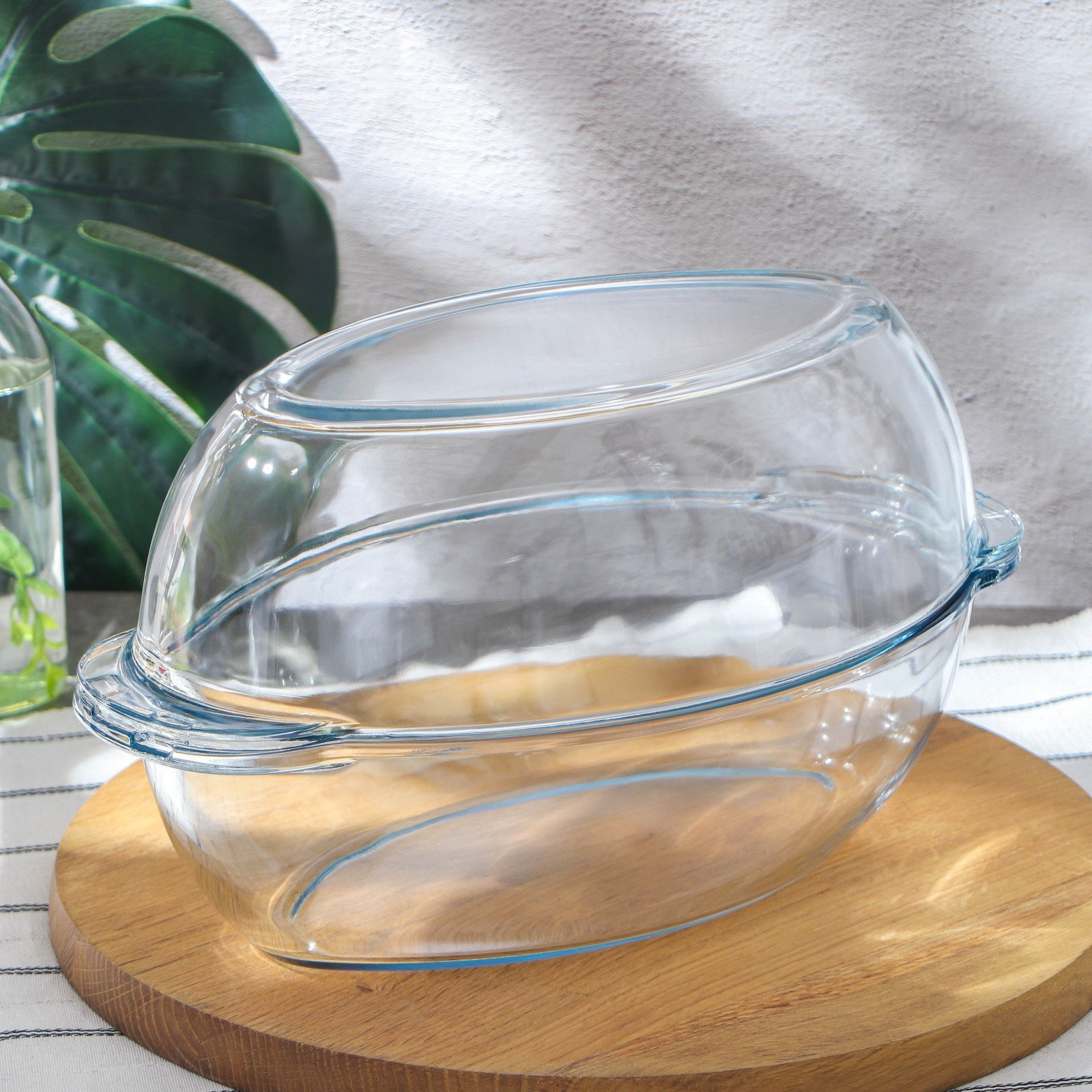 Утятница Borcam, 2.85 л, с крышкой-формой для запекания, жаропрочное стекло, прозрачная, 2850 мл., Pasabahce, Турция
