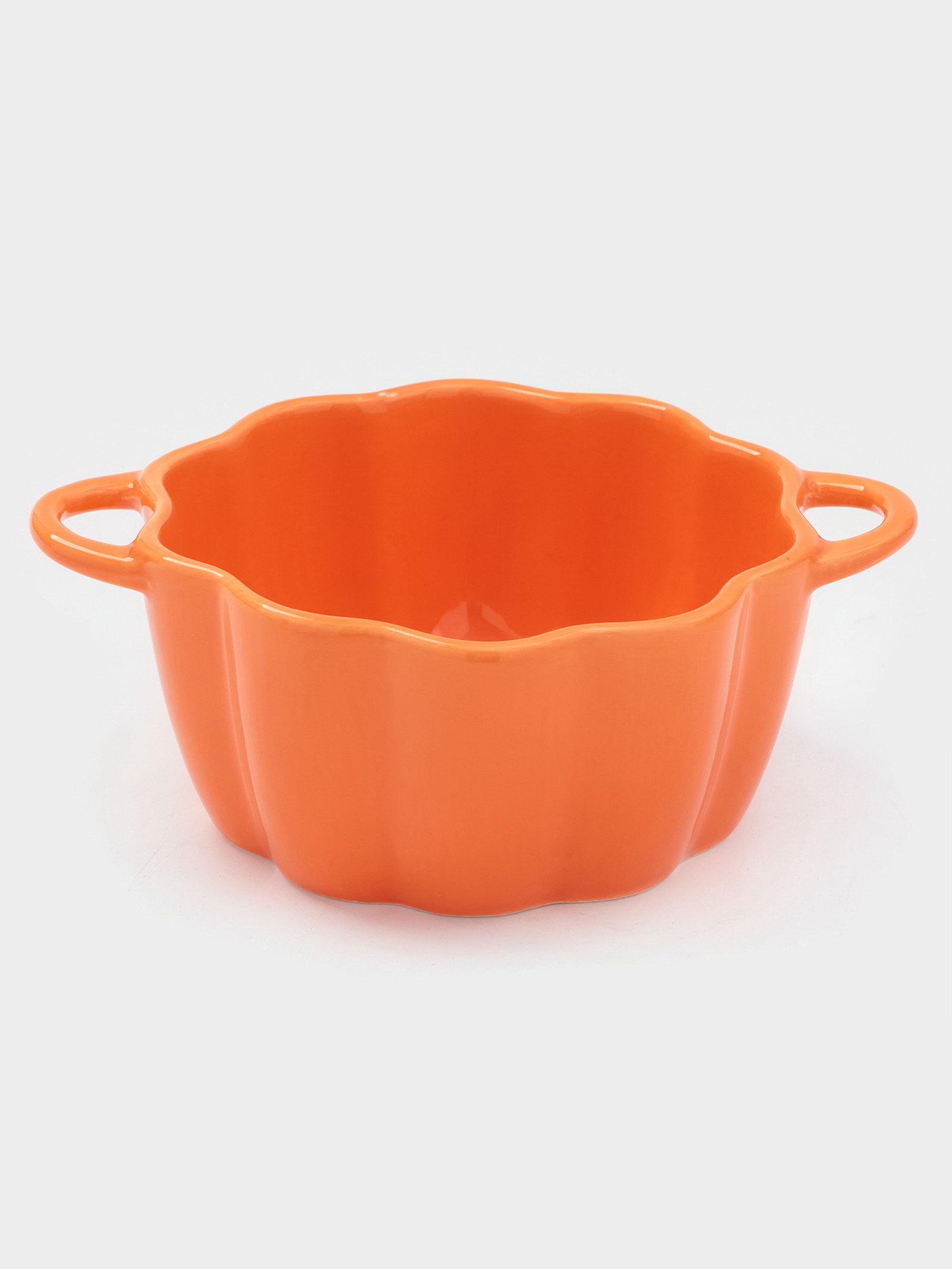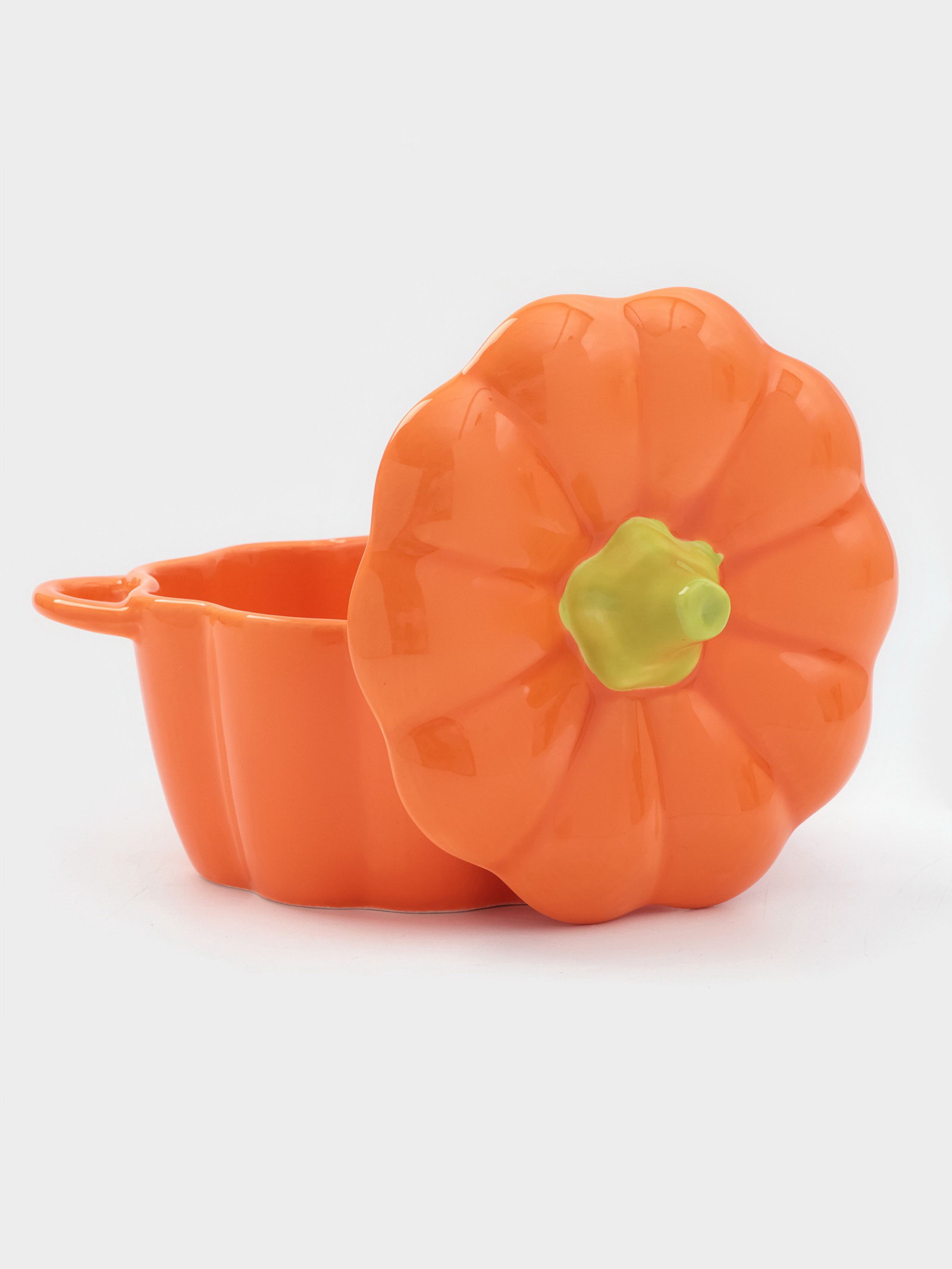 Горшочек для запекания "Тыква", 500 мл, 18.5x14x11 см, посуда для Хэллоуина, жаропрочная керамика, цвет оранжевый, 14х14х20 см., Китай