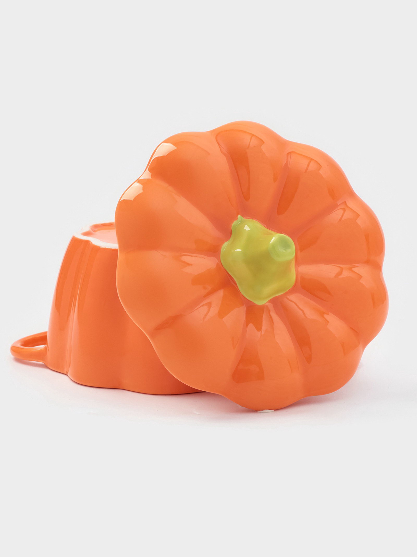 Горшочек для запекания "Тыква", 500 мл, 18.5x14x11 см, посуда для Хэллоуина, жаропрочная керамика, цвет оранжевый, 14х14х20 см., Китай