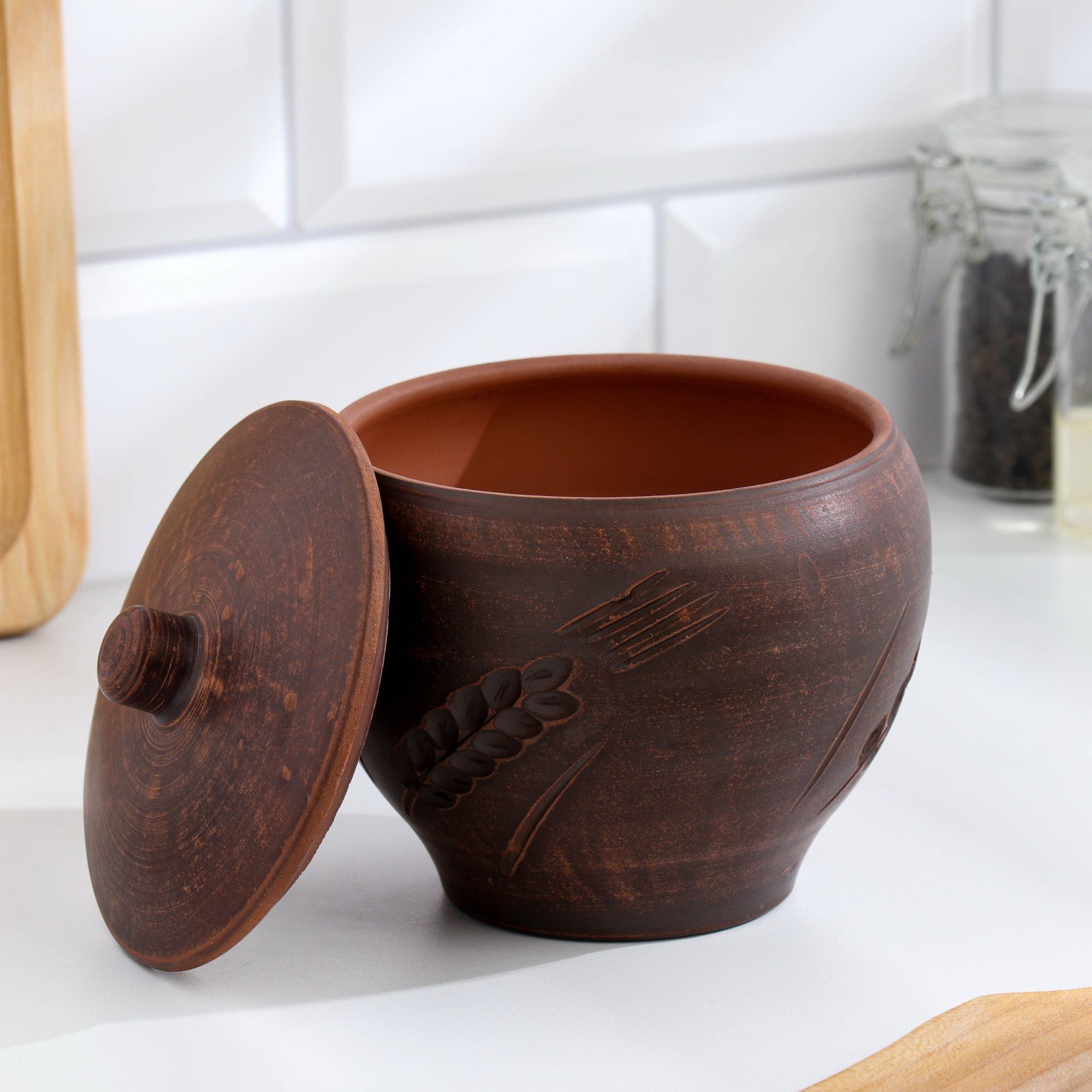 Горшок для жаркого "Колос", 550 мл, 10x12 см, красная глина, 12 см., Россия