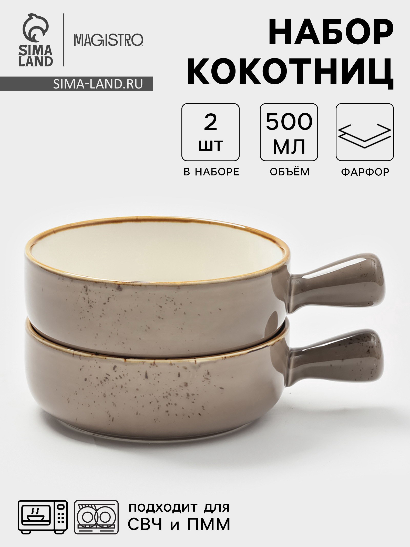 Кокотницы "Церера", набор 2 шт., 500 мл, d=15.2 см, фарфор, коричневые, 15.2х15.2х5.5 см., Magistro, Китай