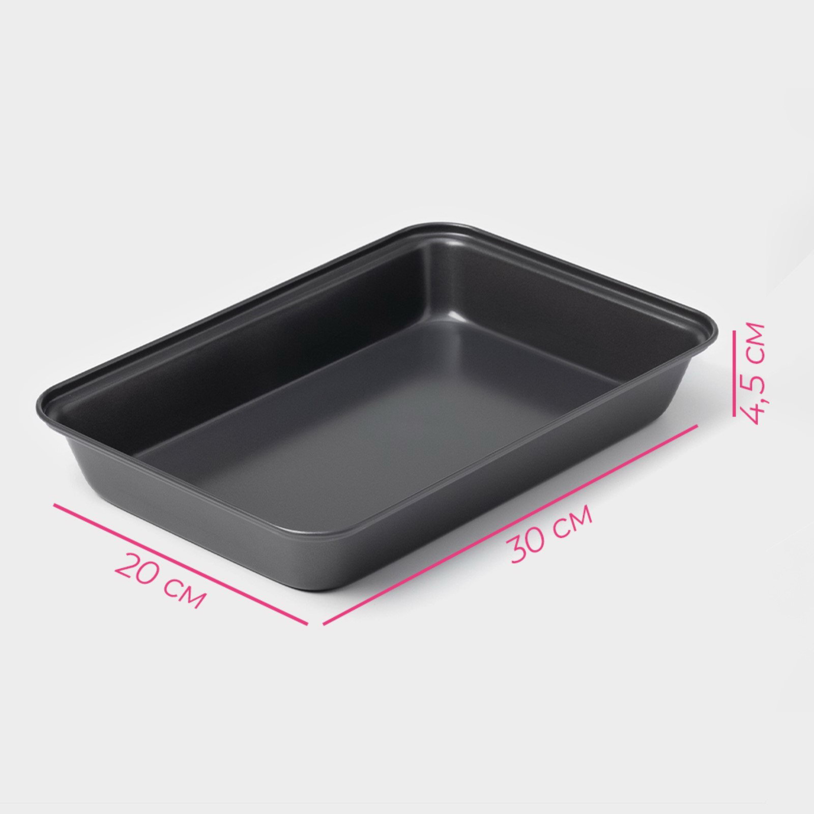 Противень "Прямоугольник. Жаклин", 30x20x4.5 см, антипригарное покрытие, цвет чёрный, 20x30x4.5 см., Доляна, Китай