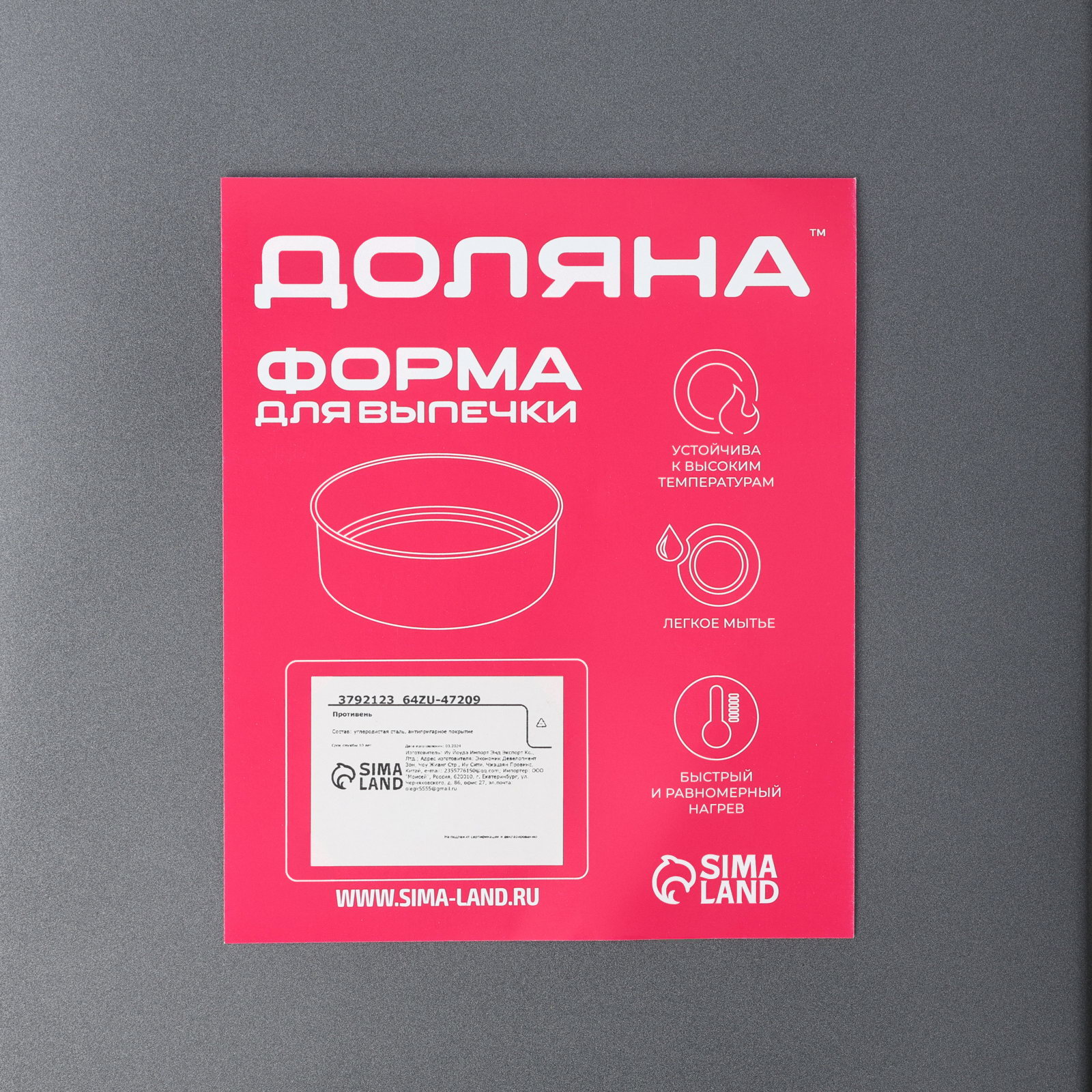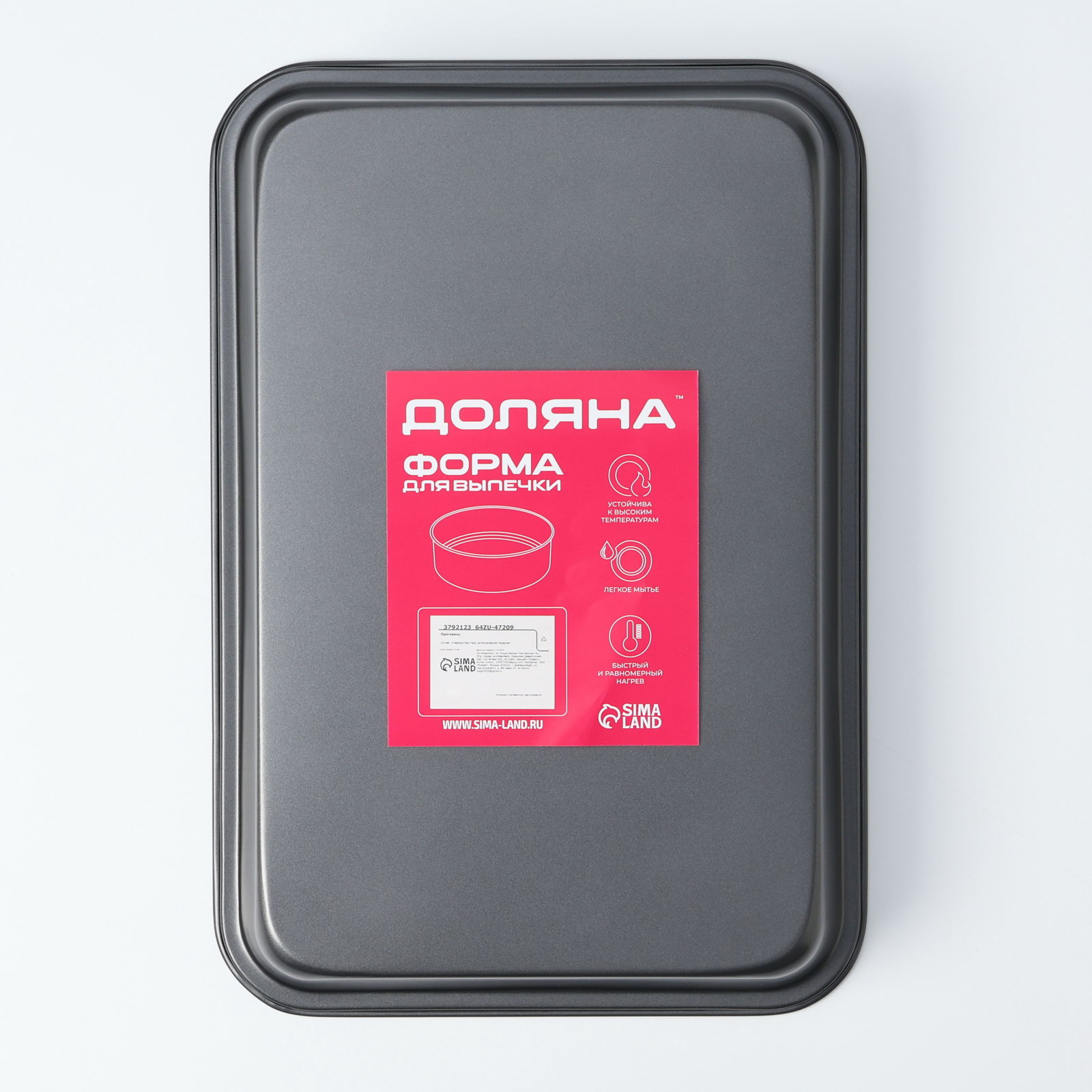 Тип формы: Для коржей, Для пирогов Размер упаковки: 22 x 6 x 32 см. Форма: Прямоугольник tnved: 7323990000 Крышка: Нет Цвет: Чёрный Рисунок: Нет Набор: Нет Тип покрытия: Антипригарное Разъёмная форма: Нет Размер, см: 32 x 22 Можно мыть в посудомоечной машине: Нет Количество ячеек: 1 Форма с антипригарным покрытием пригодится каждому повару, который привык готовить быстро и вкусно. Достоинства противеня: