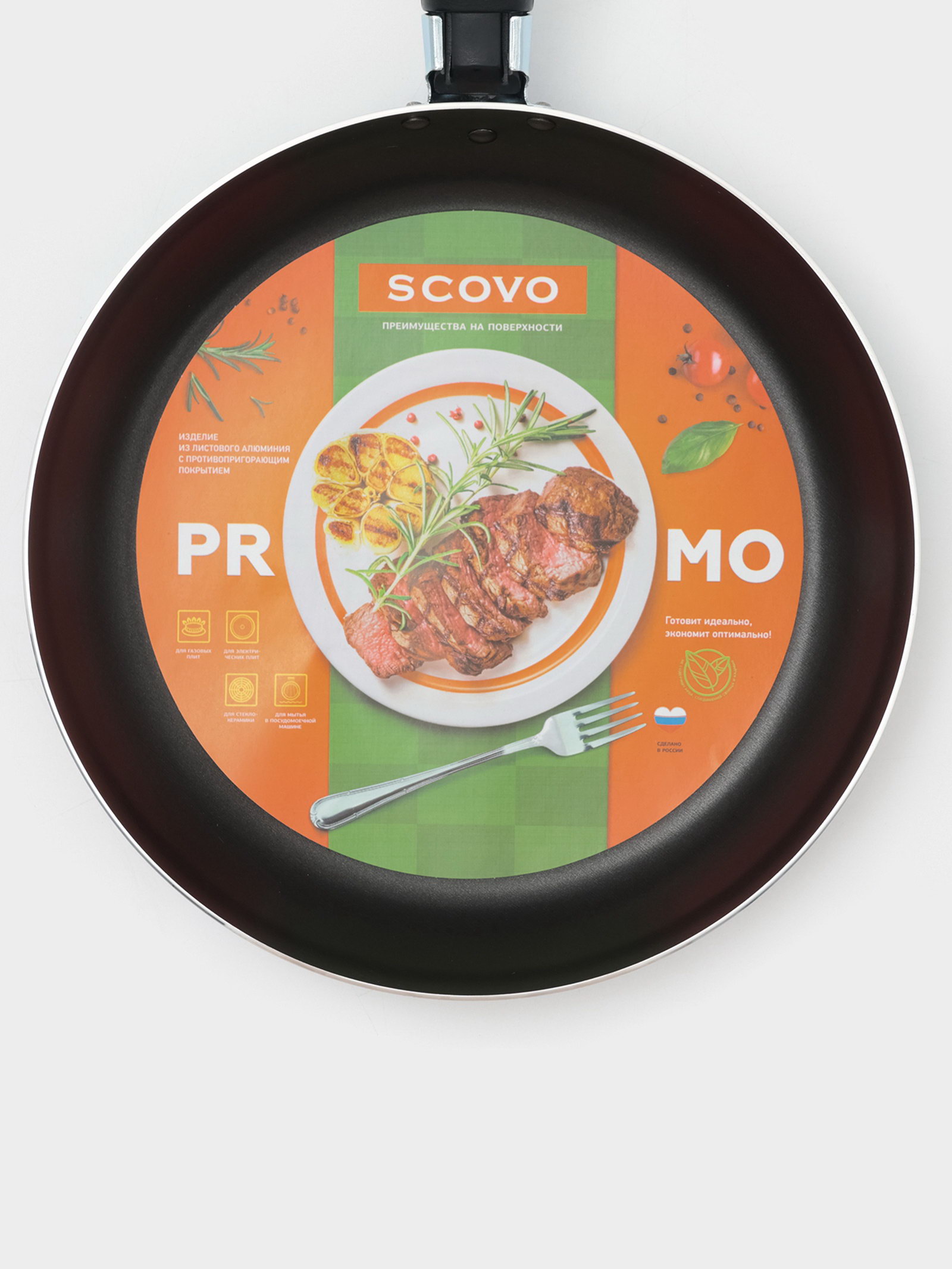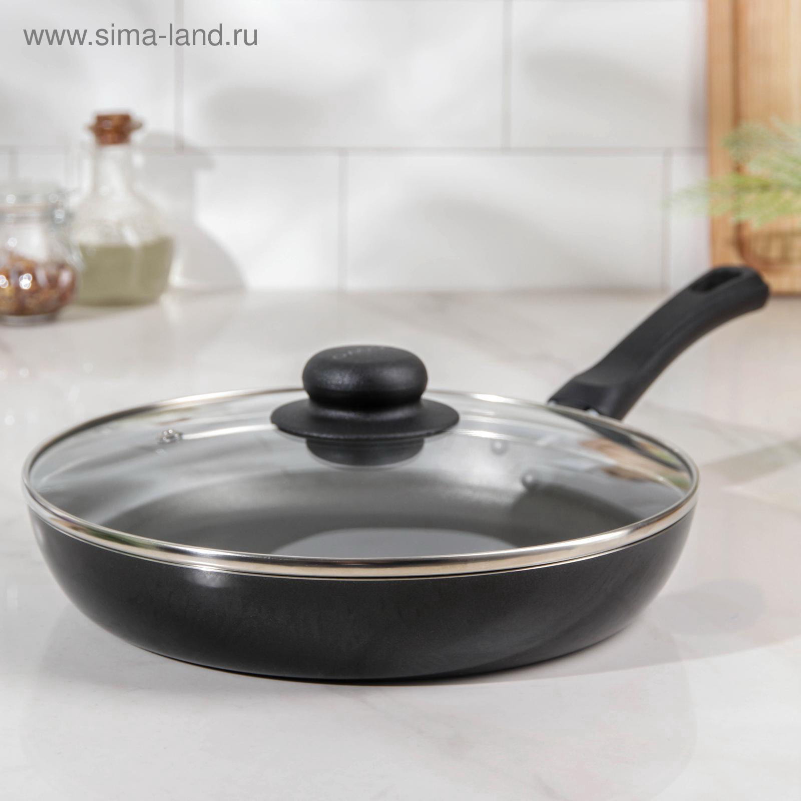 Сковорода Promo, d=24 см, стеклянная крышка, антипригарное покрытие, алюминий, чёрная, 24х24х8.5 см., SCOVO, Россия