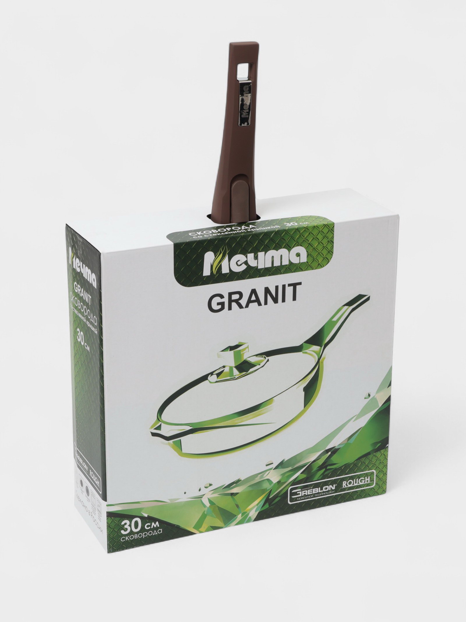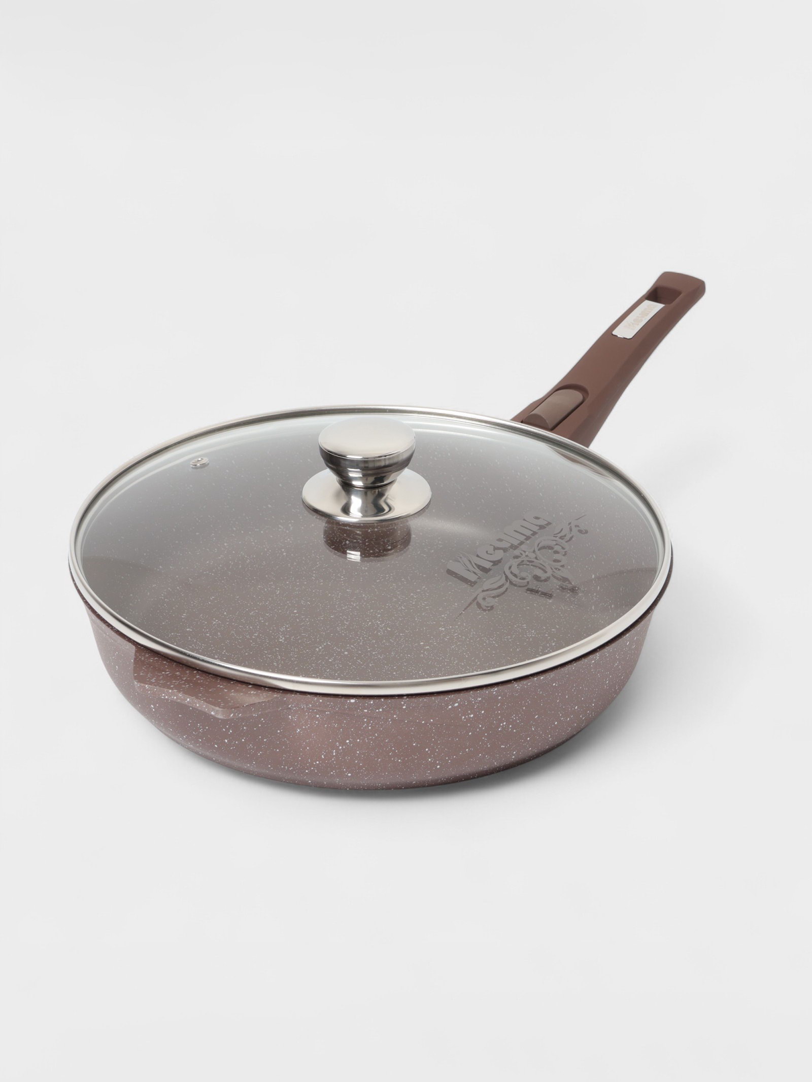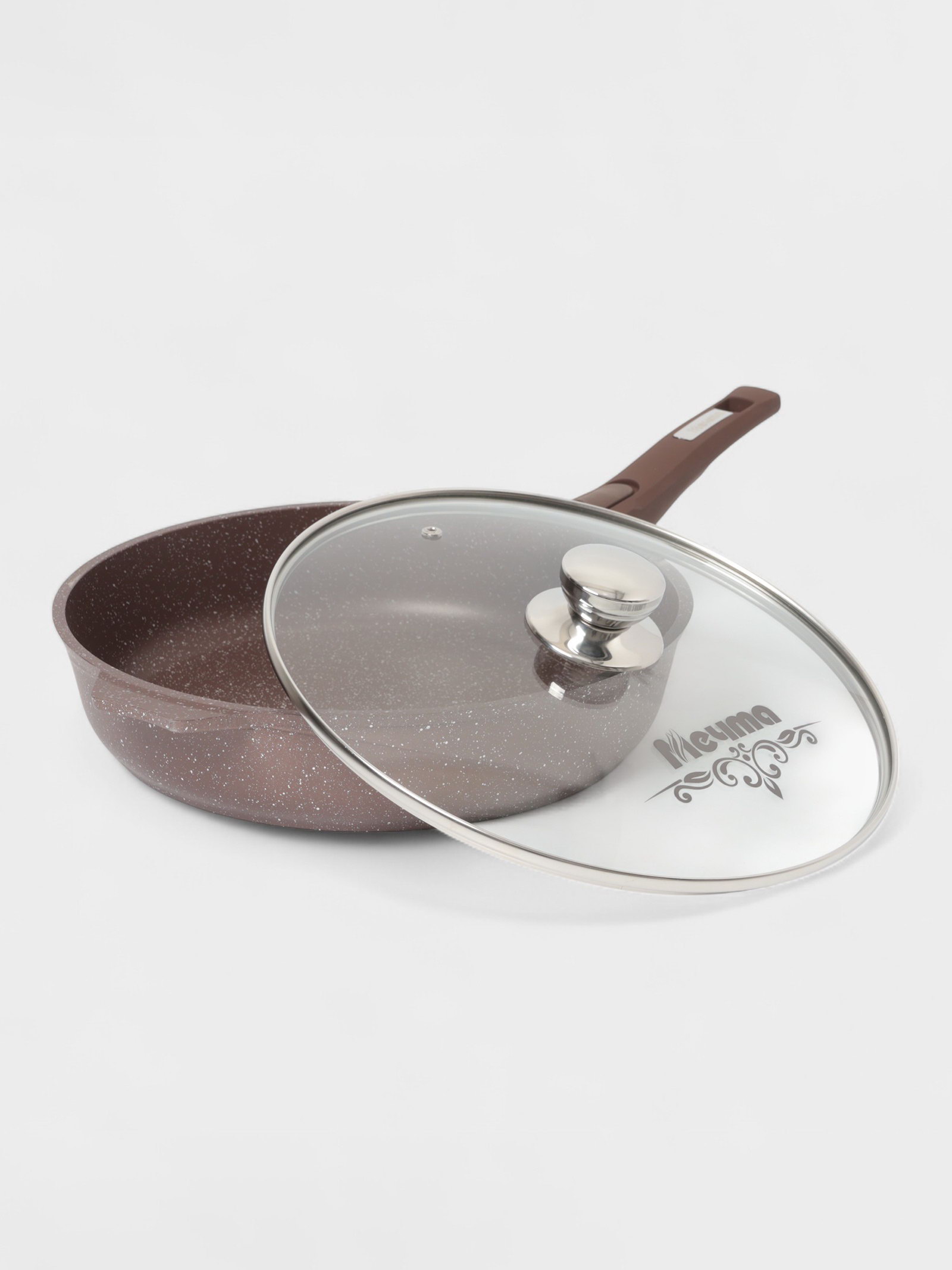 Сковорода "Гранит Brown", d=30 см, съёмная ручка, стеклянная крышка, антипригарное покрытие, литой алюминий, коричневая, 30х30х6 см., Мечта, Россия