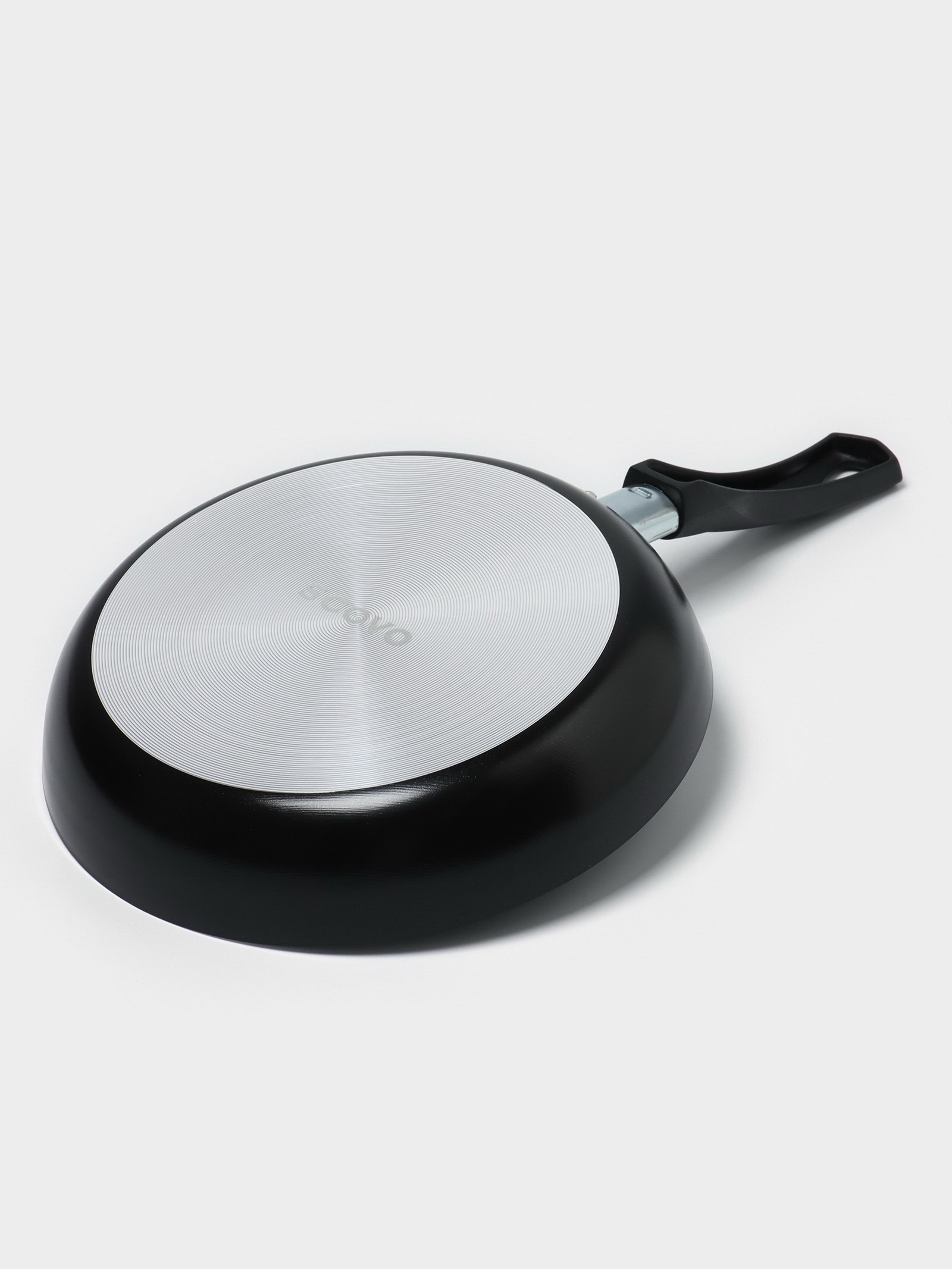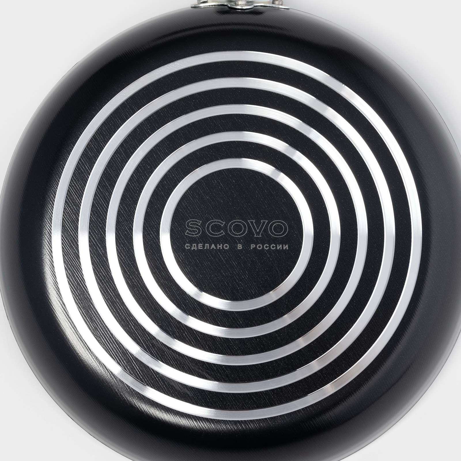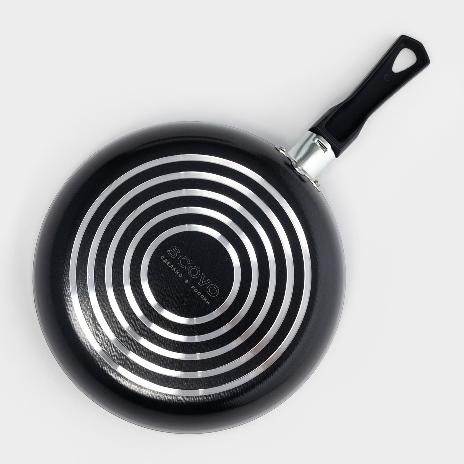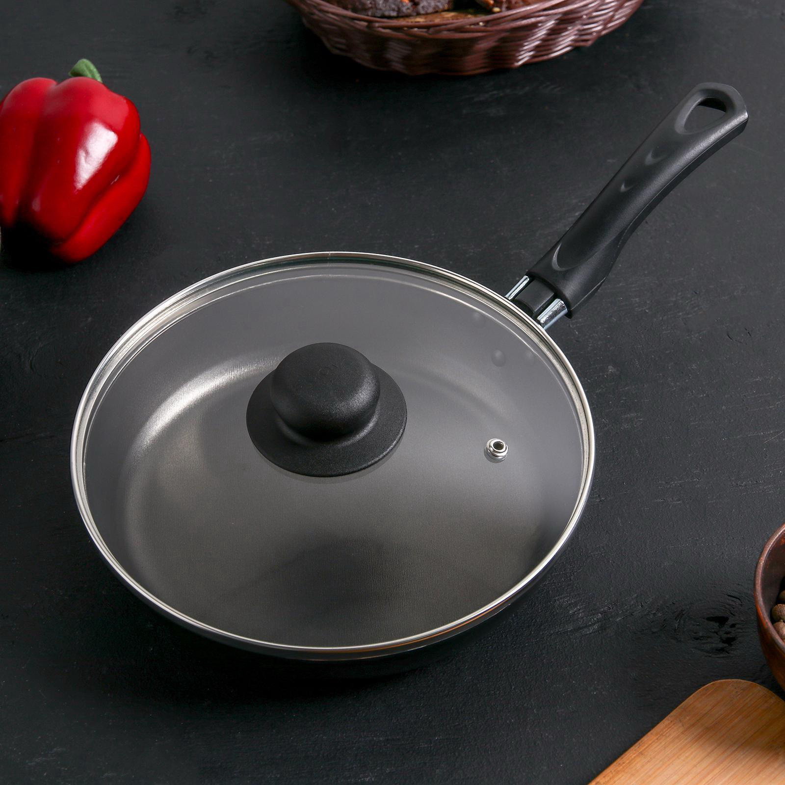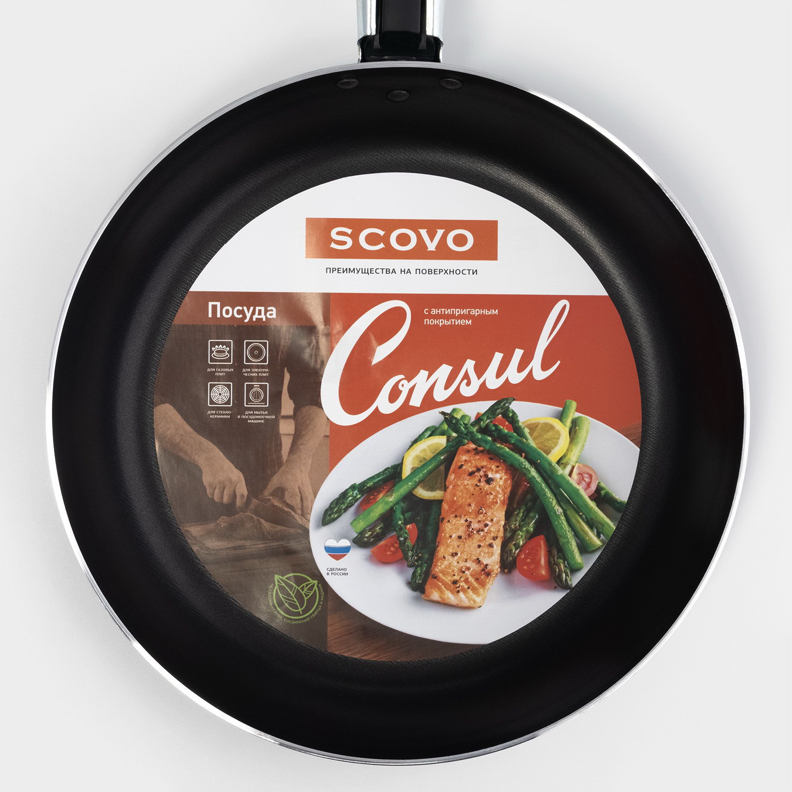 Сковорода Consul, d=22 см, стеклянная крышка, антипригарное покрытие, алюминий, чёрная, 22х22х5 см., SCOVO, Россия