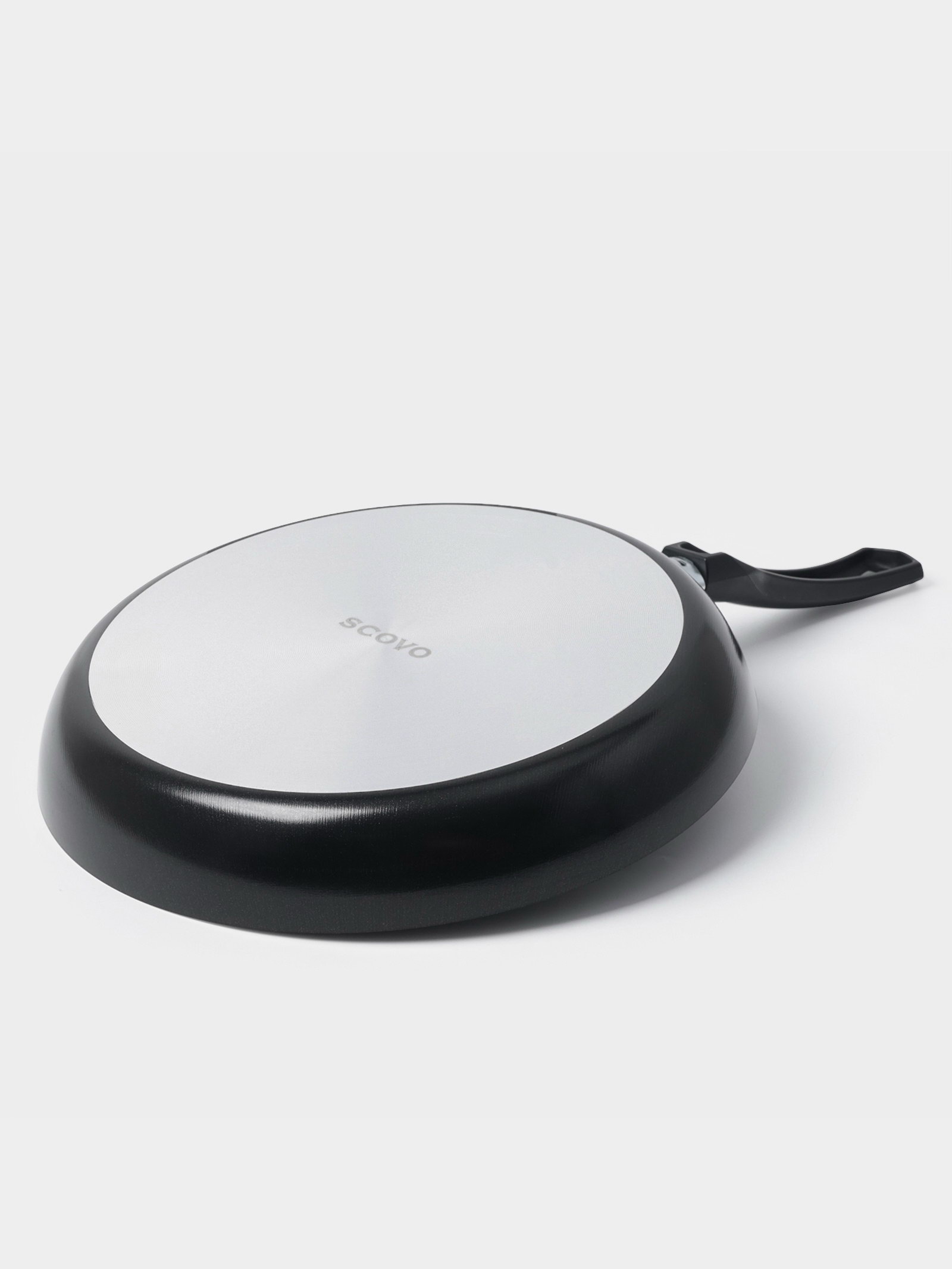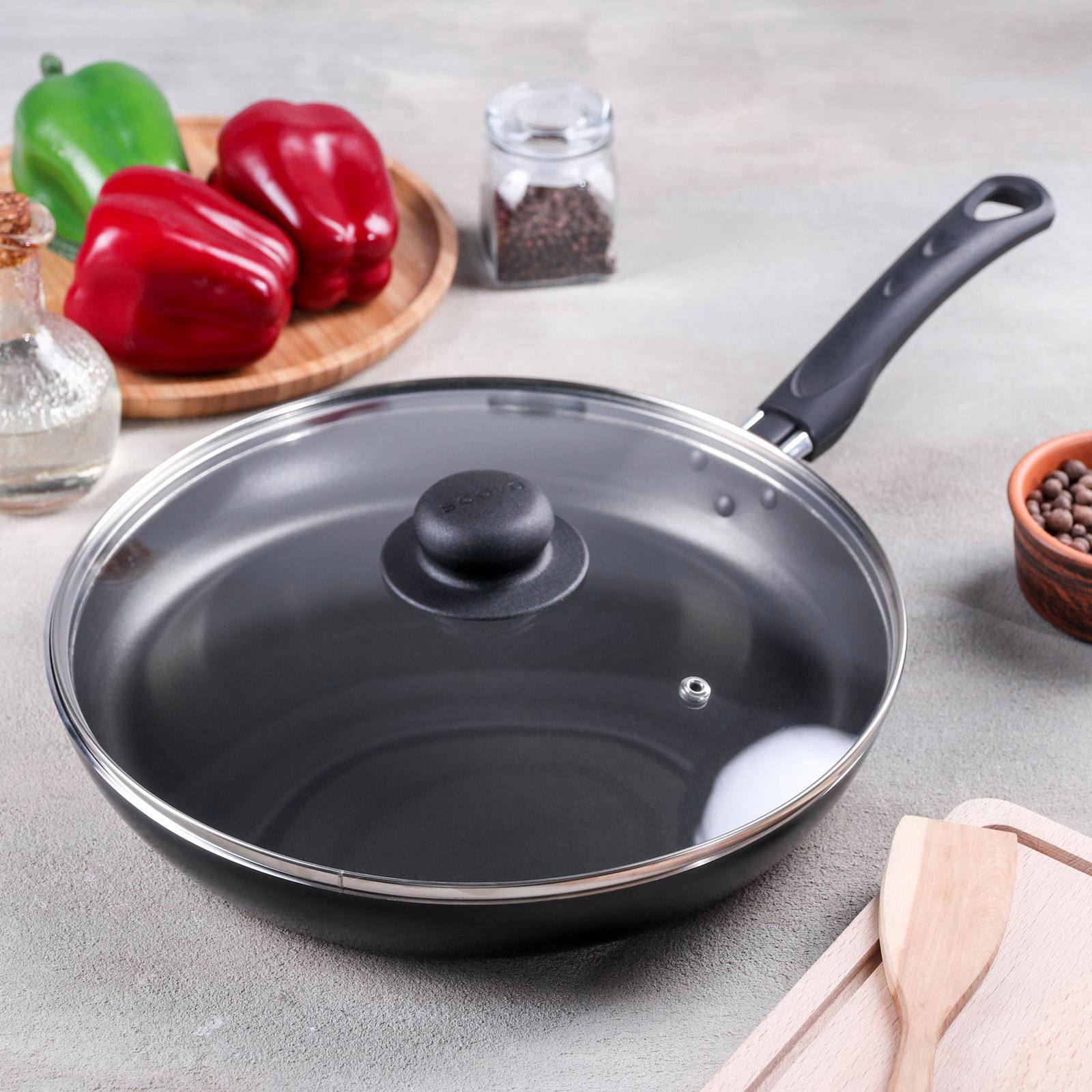 Сковорода Consul, d=28 см, пластиковая ручка, стеклянная крышка, антипригарное покрытие, алюминий, чёрная, 28х28х6 см., SCOVO, Россия