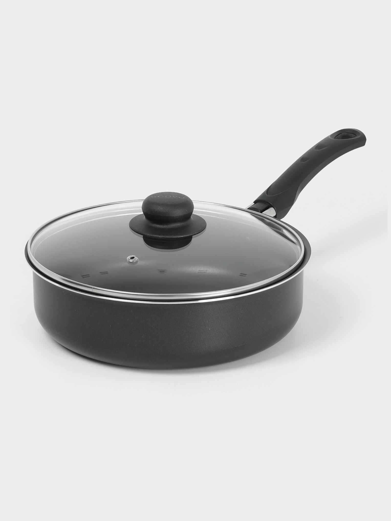 Сотейник Promo, 2.8 л, d=24 см, стеклянная крышка, антипригарное покрытие, алюминий, чёрный, 24х24х12.5 см., SCOVO, Россия