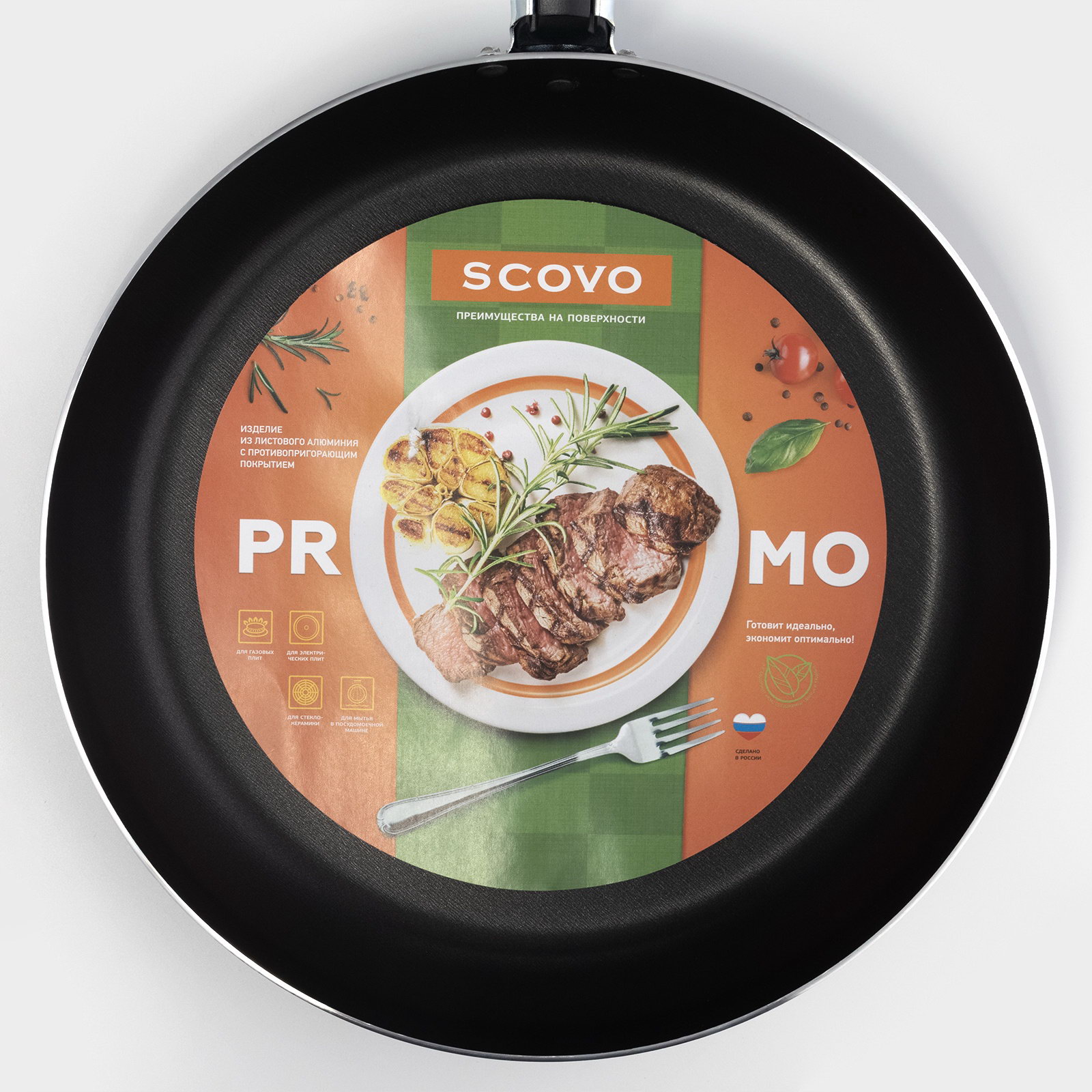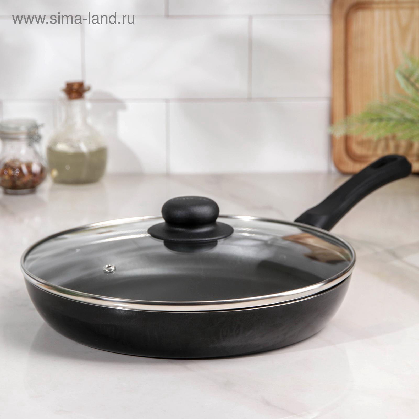 Сковорода Promo, d=26 см, стеклянная крышка, антипригарное покрытие, алюминий, чёрная, 26х26х8 см., SCOVO, Россия